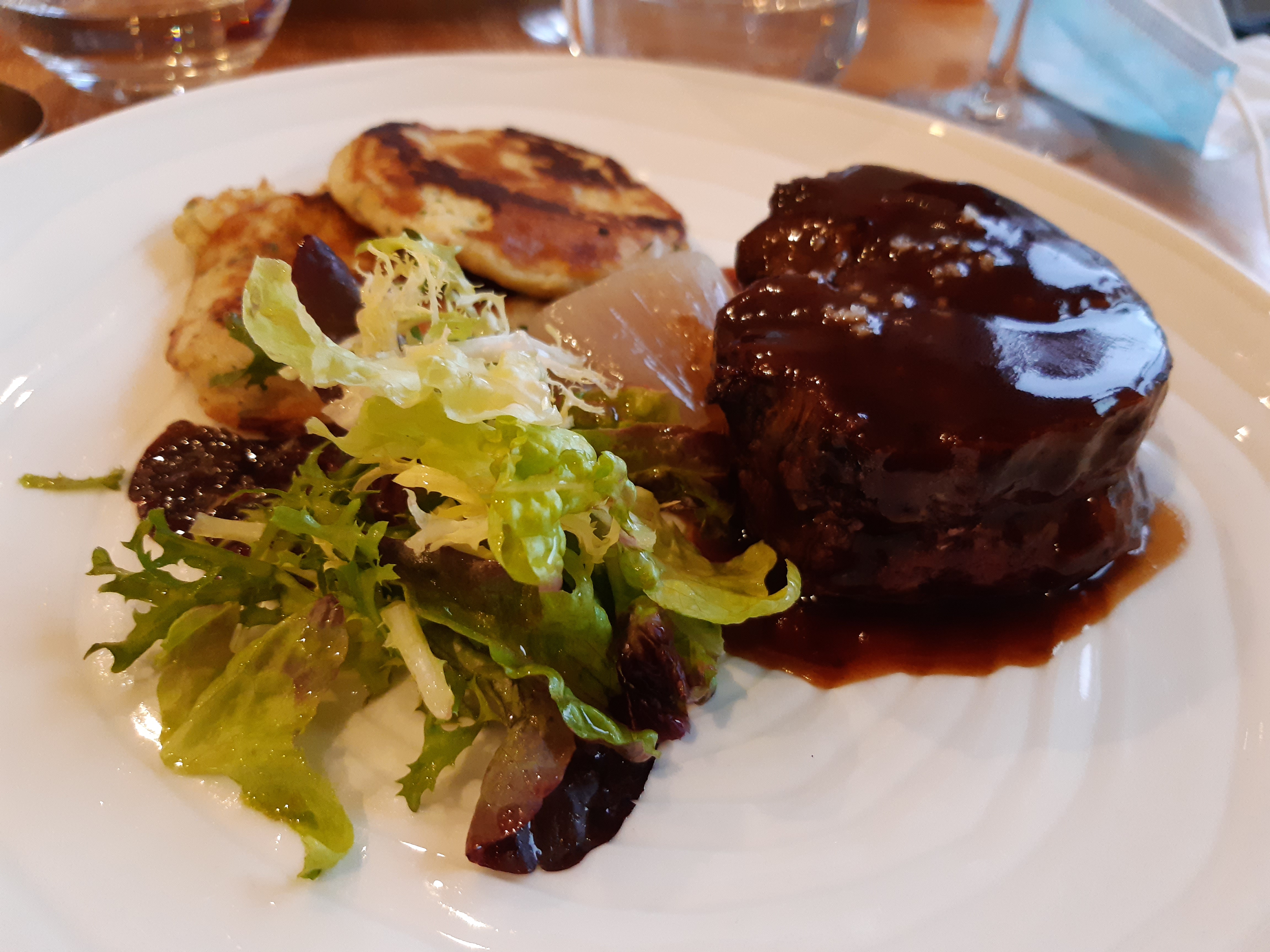 Le gâteau au chocolat en dessert était bcp trop cuit et sans gout. La viande était très bonne c'est vrai, mais le vin hors de prix ce qui au final donne une addition exorbitante au regard du repas servi. Service sympathique mais je n'y retournerai pas.