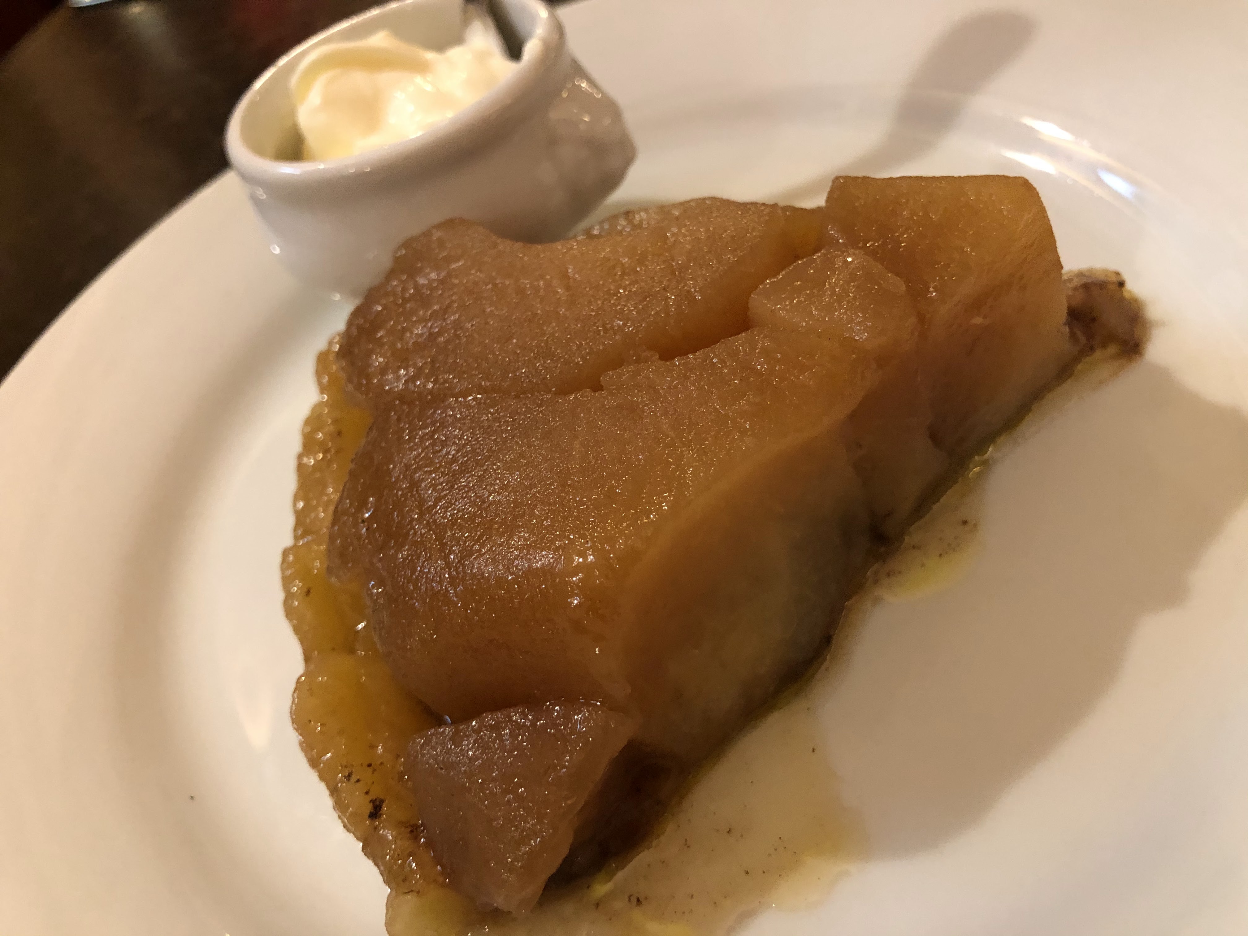 J'ai mangé ici deux fois car c'était le seul endroit où je pouvais trouver quelqu'un prêt à m'aider à commander. Même si ce n'était pas en anglais, le jeu de charades auquel nous avons joué pour comprendre quels étaient les plats du jour entre moi et le serveur était divertissant. L'endroit est pittoresque et j'ai vu des habitants s'embrasser et embrasser le serveur et le chef/propriétaire comme de vieux amis. C'est un vrai restaurant français. J'ai eu plusieurs plats, tous délicieux. Mais le nougat glacé est extraordinaire et la terrine de poireaux au foie gras ne se trouve qu'ici. Essayez-le !