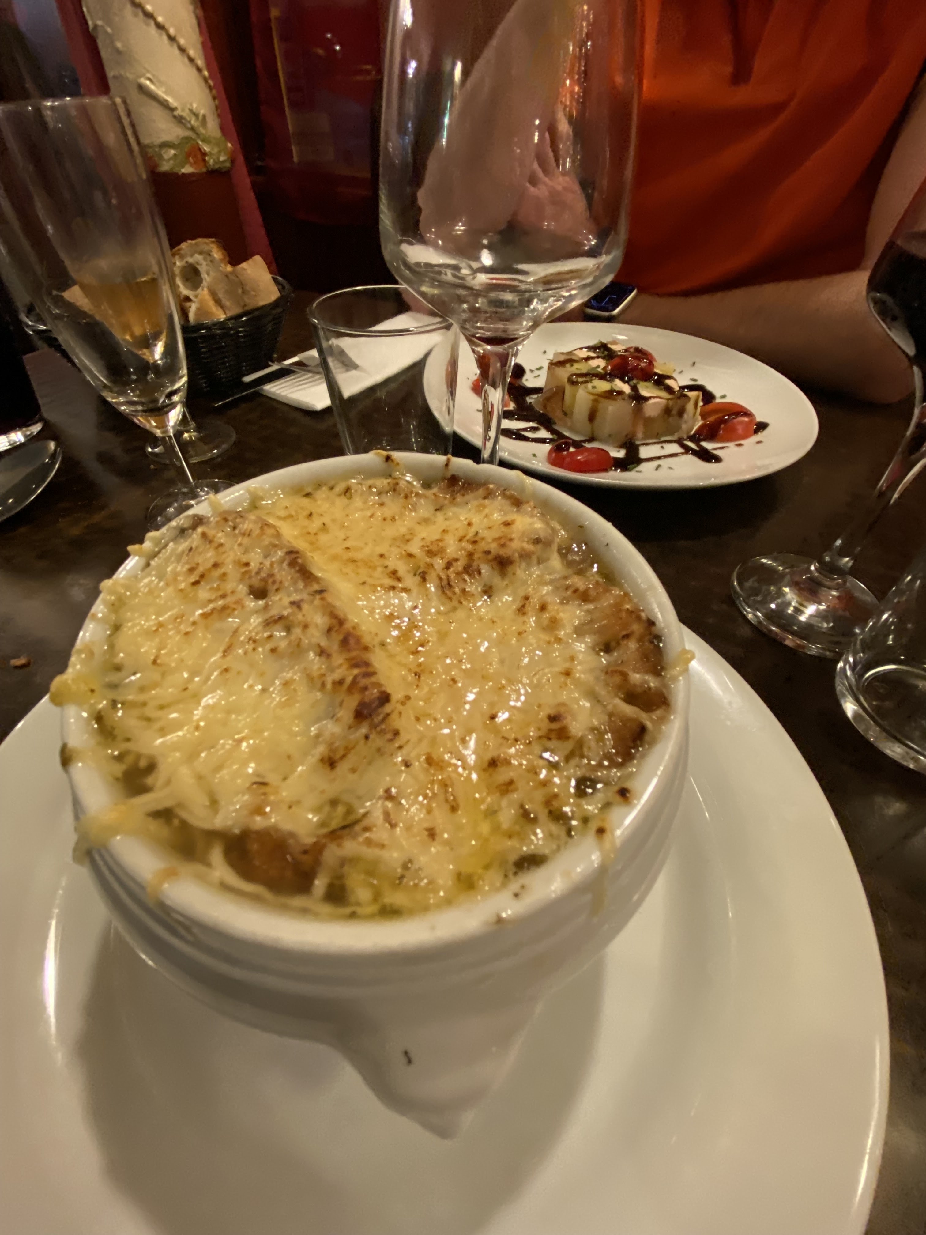 Je suis allé manger des cuisses de grenouilles, de la soupe à l'oignon et du ragoût bourguignon. Les cuisses de grenouilles étaient vraiment bonnes. Il y avait très peu à manger. Il y avait peu d'oignons dans la soupe à l'oignon, le bouillon était insipide et le fromage était en grosses boulettes dans la sopa. Le pain dans le sopa était tout simplement détrempé. Le ragoût bordeaux était complètement insipide. Les pommes de terre étaient crues, la sauce était insipide et les légumes étaient tout simplement copieux. Le service client était sympathique. Le niveau des prix est bon marché, c'est sans doute pour cela que la nourriture était insipide.