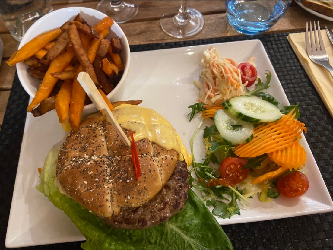 Pas idéalement placées malgré une réservation, (dans un courant d’air) service et accueil toutefois sympathique. J’ai été déçue par la nourriture, Burguer pas terrible a mon goût. Frites maisons et frites de patates douces toutefois très bonnes. J’ai fait simple sur le dessert avec une glace, malheureusement chantilly et sauce chocolat pas maison.. dommage..