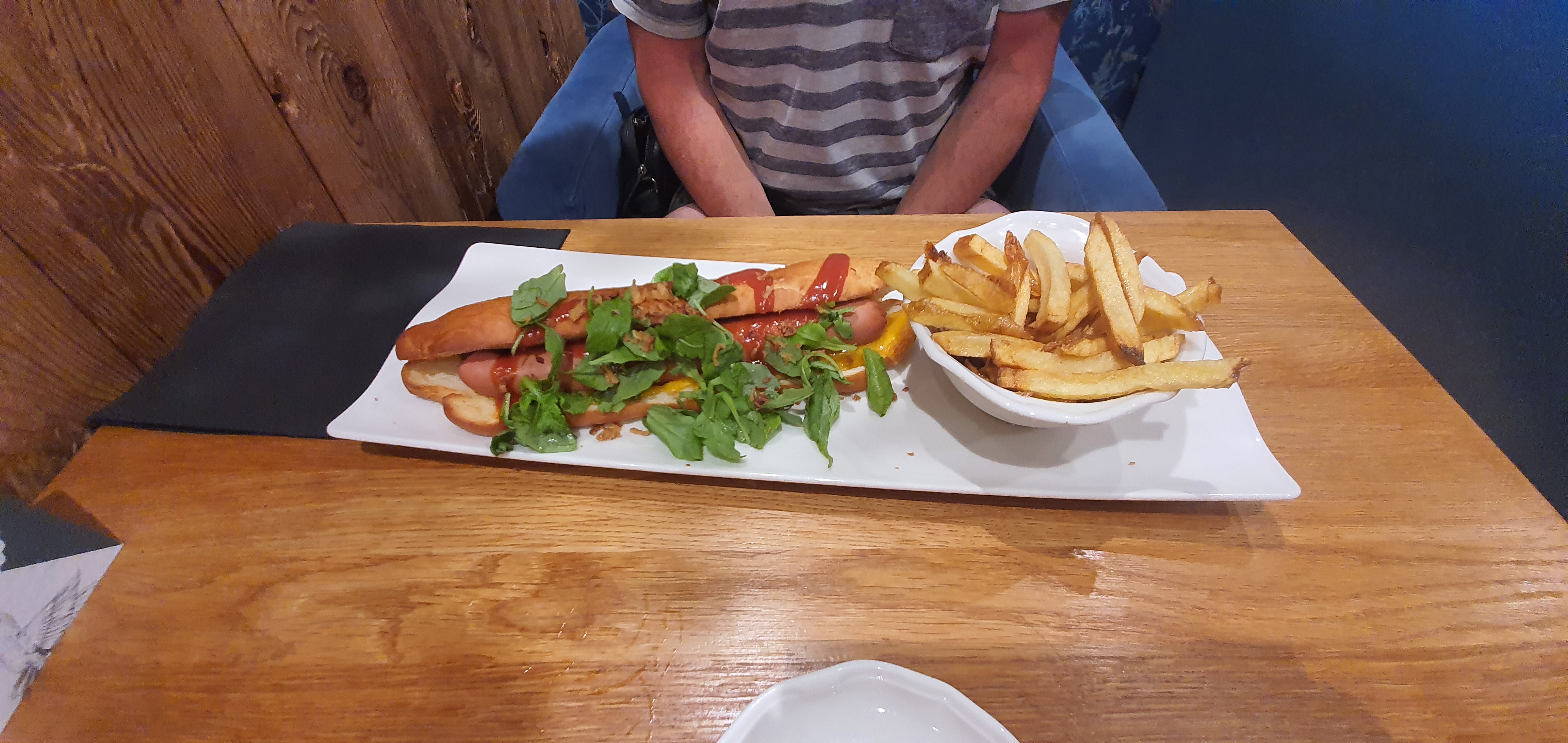 Nous avons adoré le lieu. Un croque monsieur xxl et un hot dog succulent Ne changez rien.