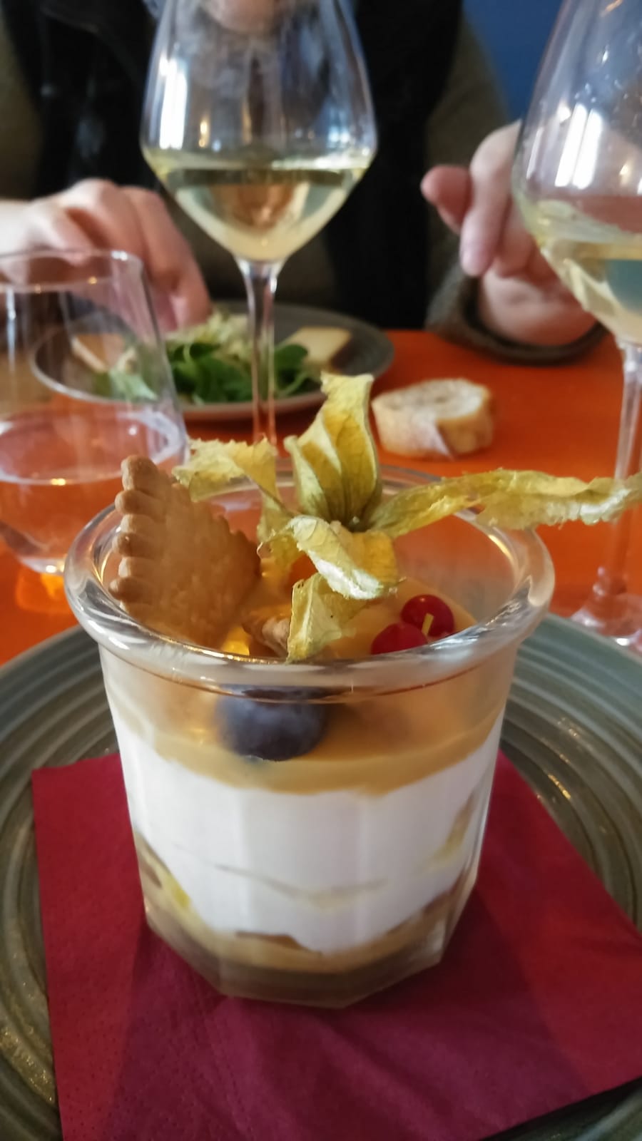 Très belle découverte sur les conseils du café juste à côté ! Délicieux menu pour 18€! De l' entrée jusqu'aux desserts : du fait maison, produits locaux ( une trilogie de fromage de qualité !), une présentation raffinée ; un cadre cosy et une prise de commande très agréable ! Quel plaisir des papilles ! - écrevisses au curry -aiguillettes de canard et pommes de terre grenailles - trilogie de desserts - trilogie de fromages À très bientôt !