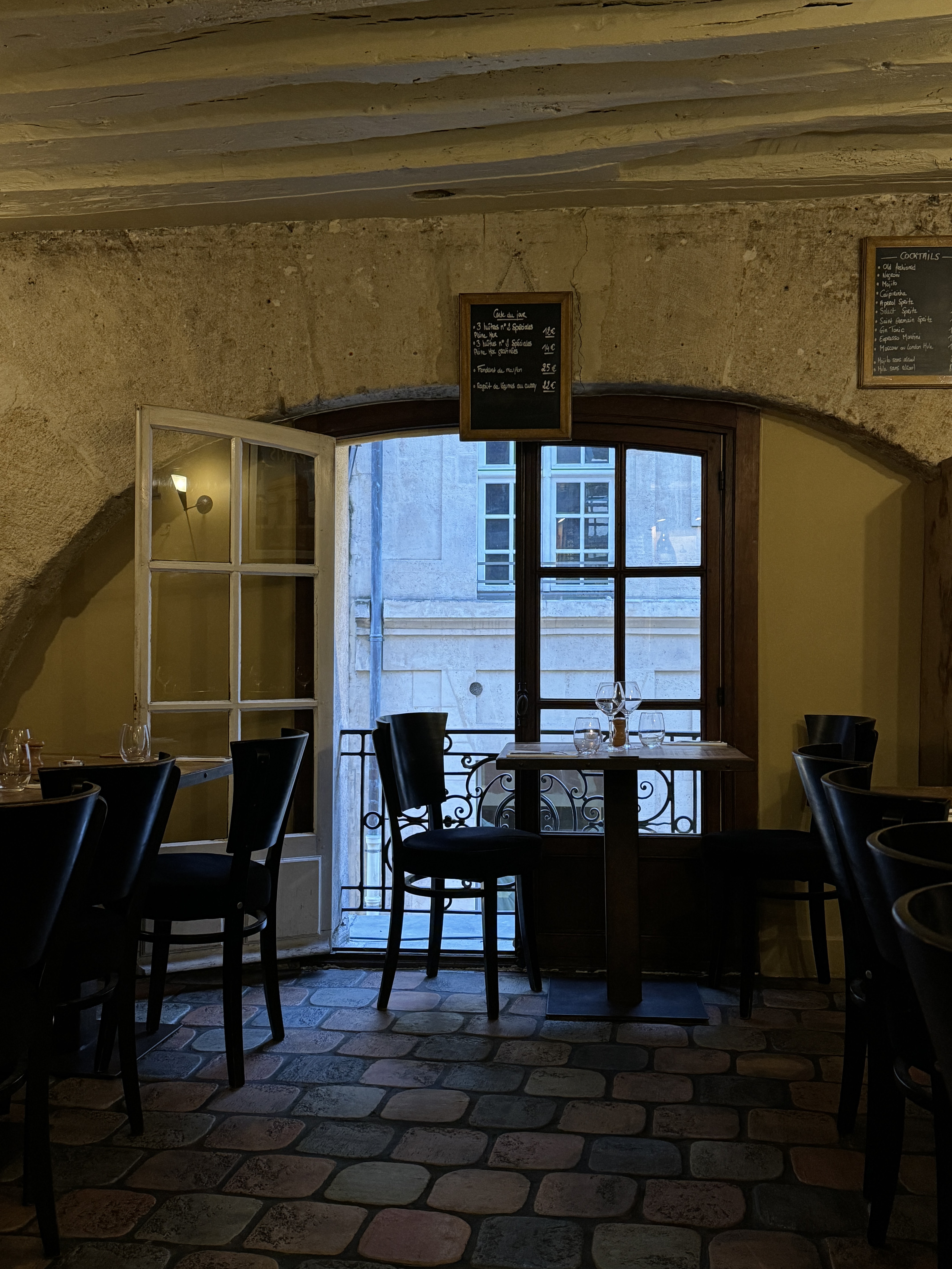 C'est un endroit vraiment sympa pour manger, l'ambiance est bonne et on est servi à l'étage dans une superbe salle avec poutres apparentes. La nourriture est phénoménale, j’aurais aimé trouver cet endroit plus tôt lors de ma visite car c’est sans conteste le meilleur endroit. Faites une réservation - il y a une jolie table près de la fenêtre au deuxième étage qui donne sur la rue en contrebas. Version moderne des spécialités françaises traditionnelles - assurez-vous de vous procurer les « chips d'escargots » dont la coquille est une chips comestible. Toutes les viandes étaient délicieuses et tendres, les serveurs agréables et sympathiques ne tarissent pas d'éloges sur cet endroit !