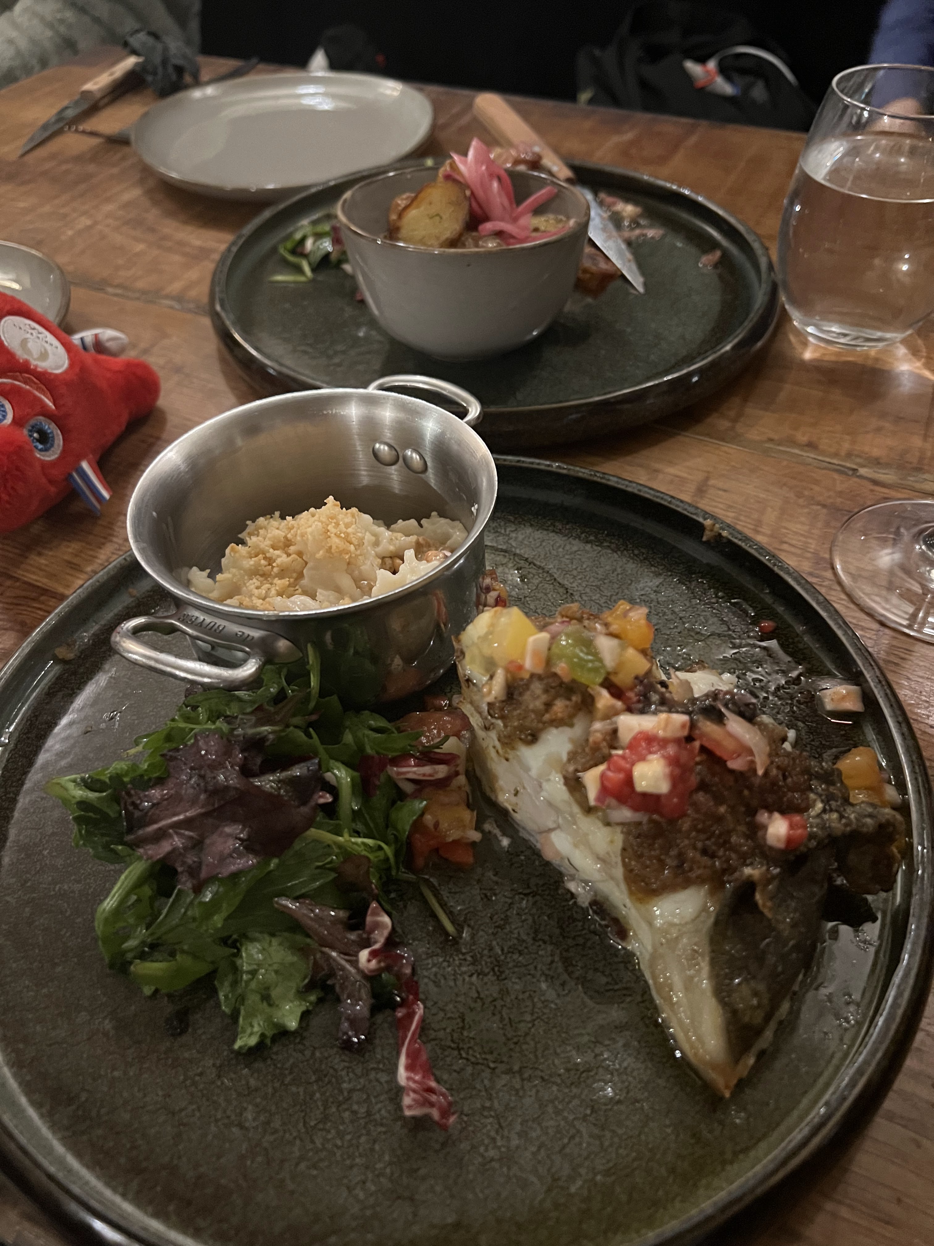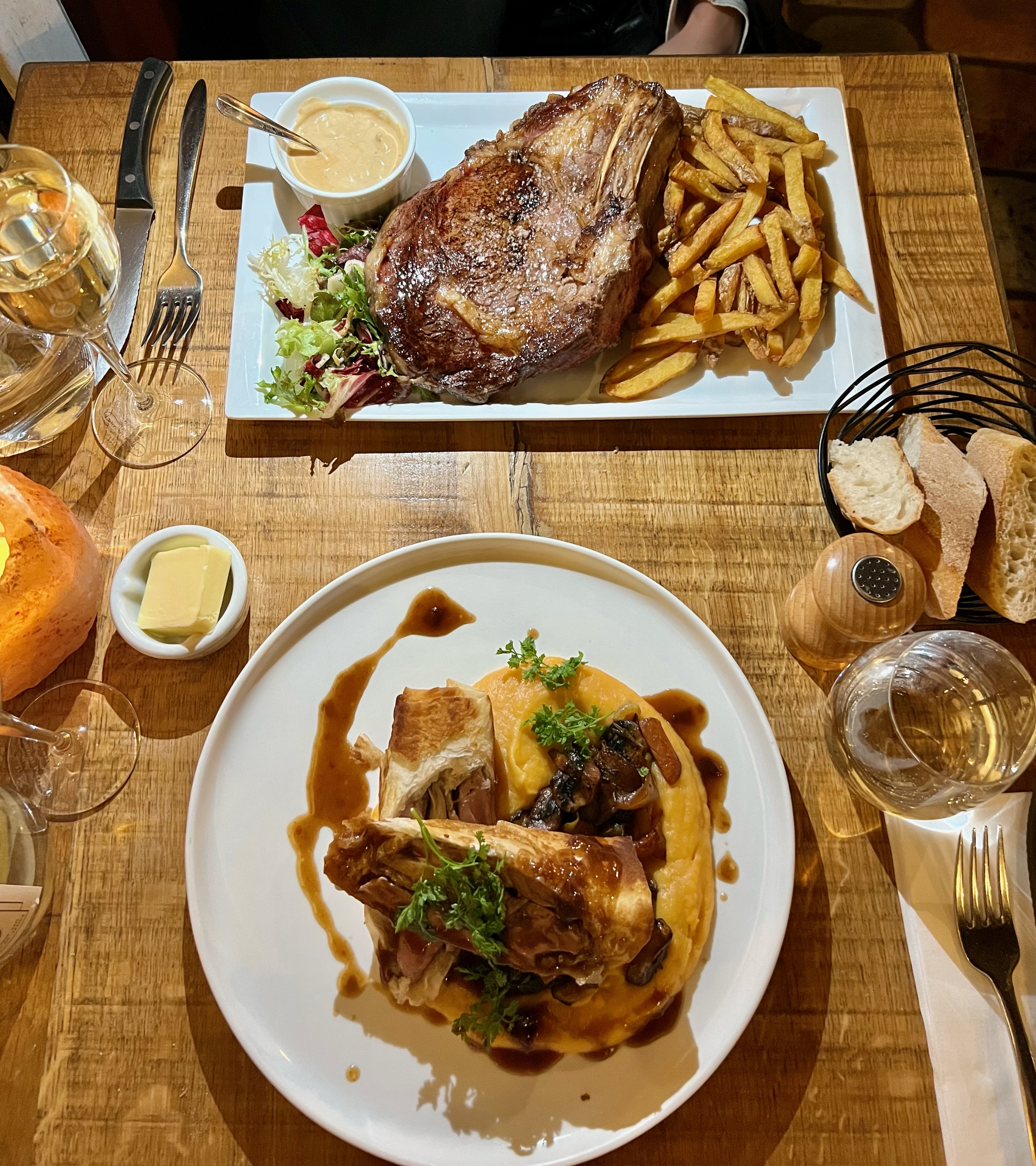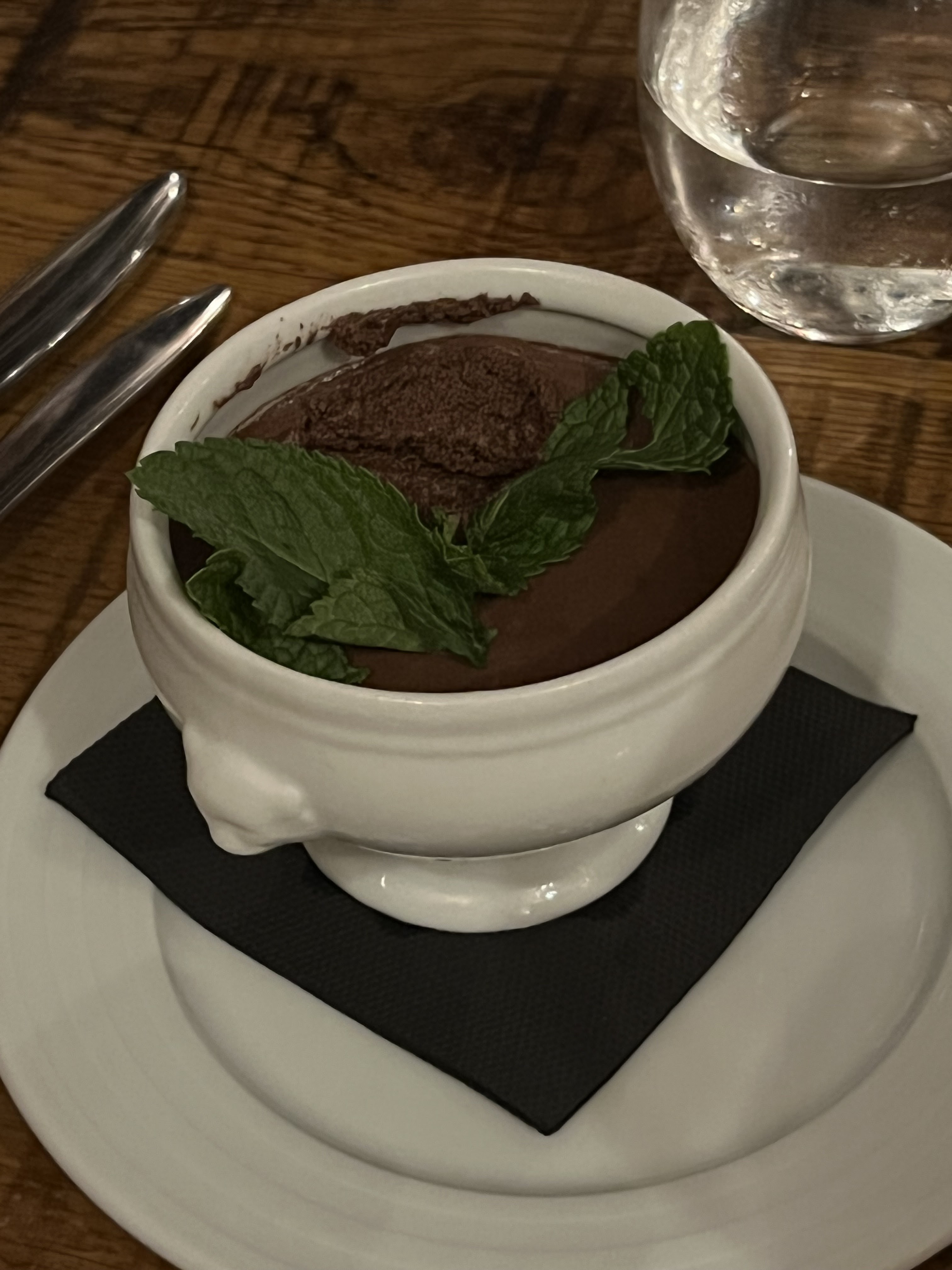 Nous célébrons notre dernière nuit à Paris avec un incroyable dîner français authentique ! Sélections fraîches et innovantes - nous avons dégusté une entrée d'asperges et un apéritif spécial au beurre d'escargot et à l'ail / un lapin farci aux champignons et au steak frites accompagné d'un délicieux rouge bordeaux / terminé par un pot de chocolat digne de la bave avec du caramel chaud salé et de la glace à la vanille fraîche… Ambiance rustique et chaleureuse détendue/ RECOMMANDE FORTEMENT ❤️