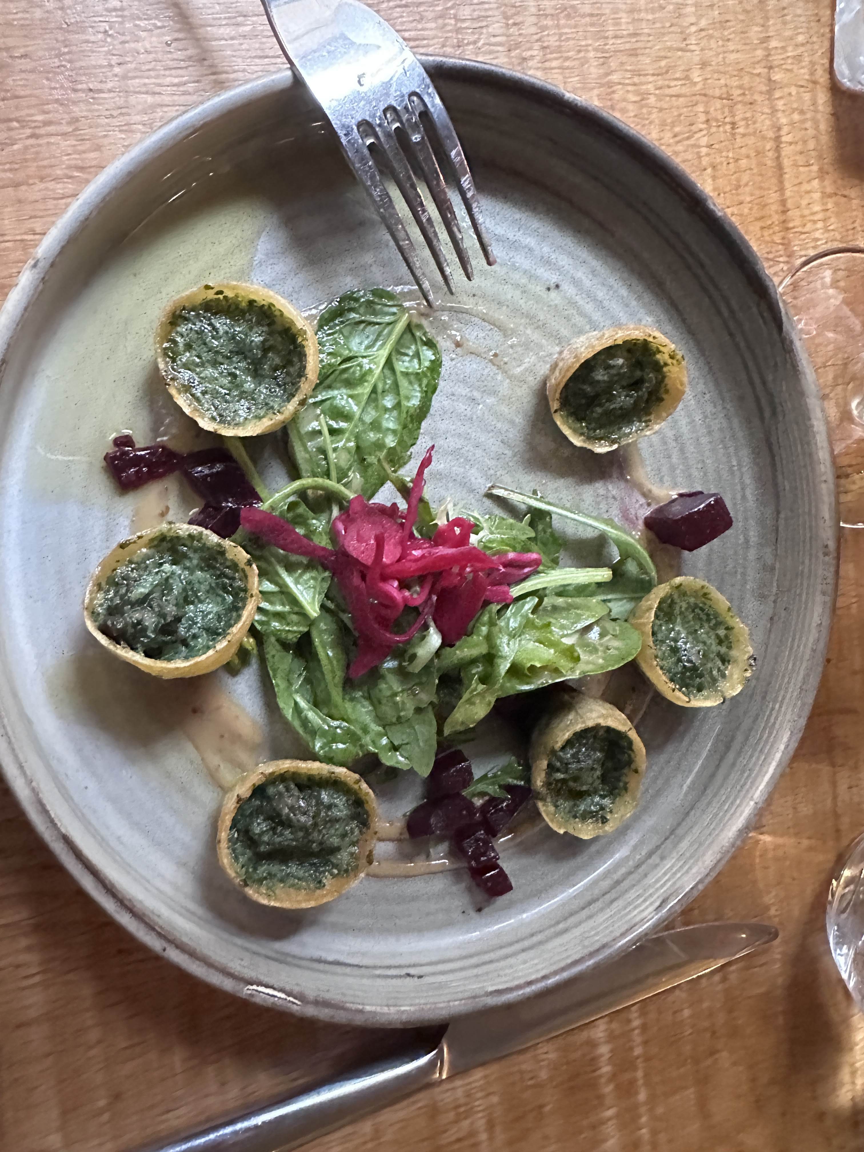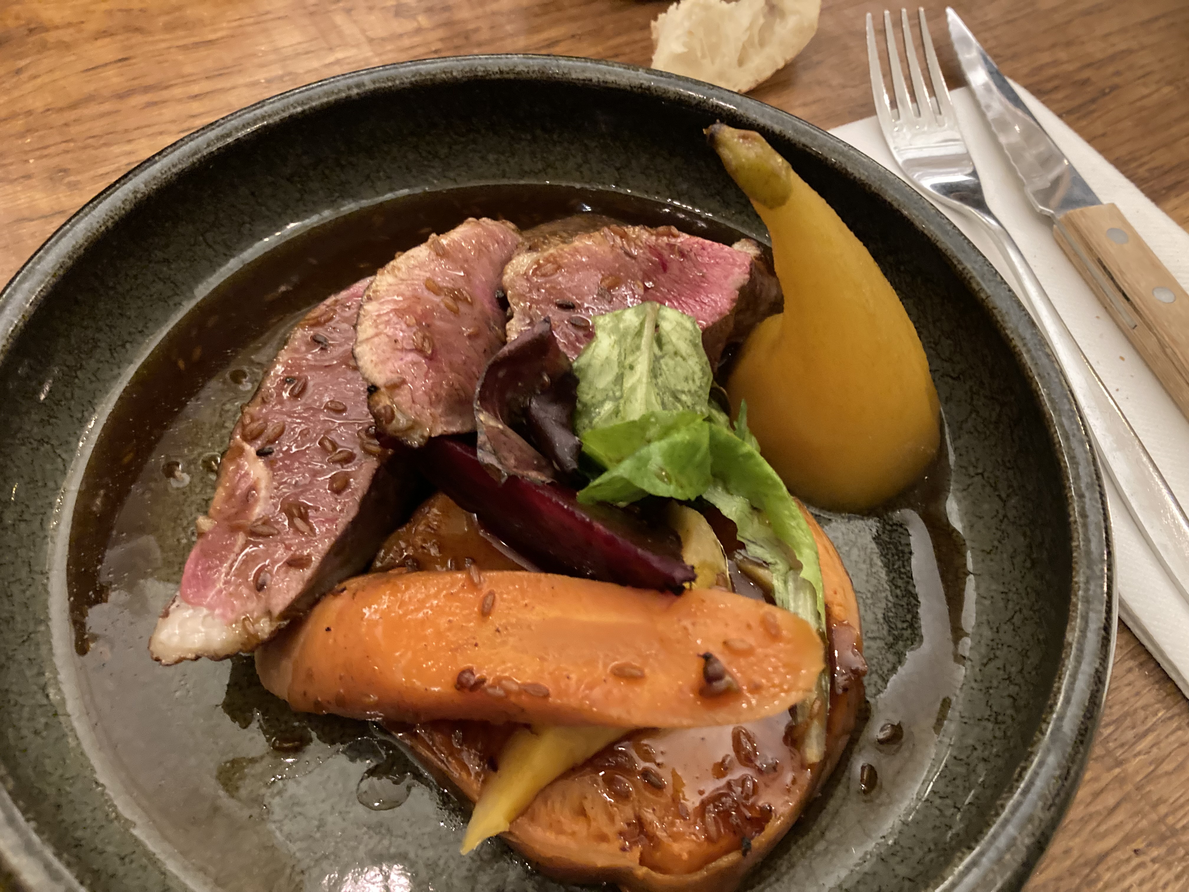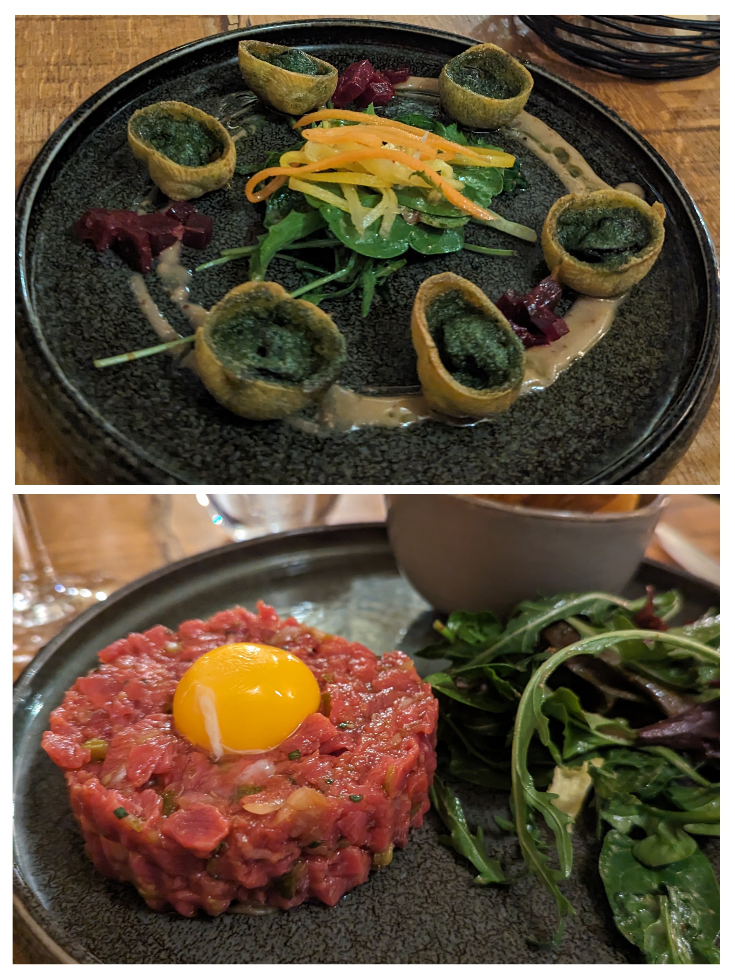 Aussi merveilleux, encore plus merveilleux, que ce dont je me souvenais lors de notre première visite il y a 8 ans. Un tartare de bœuf à tomber par terre et un gaspacho de betterave de rêve.