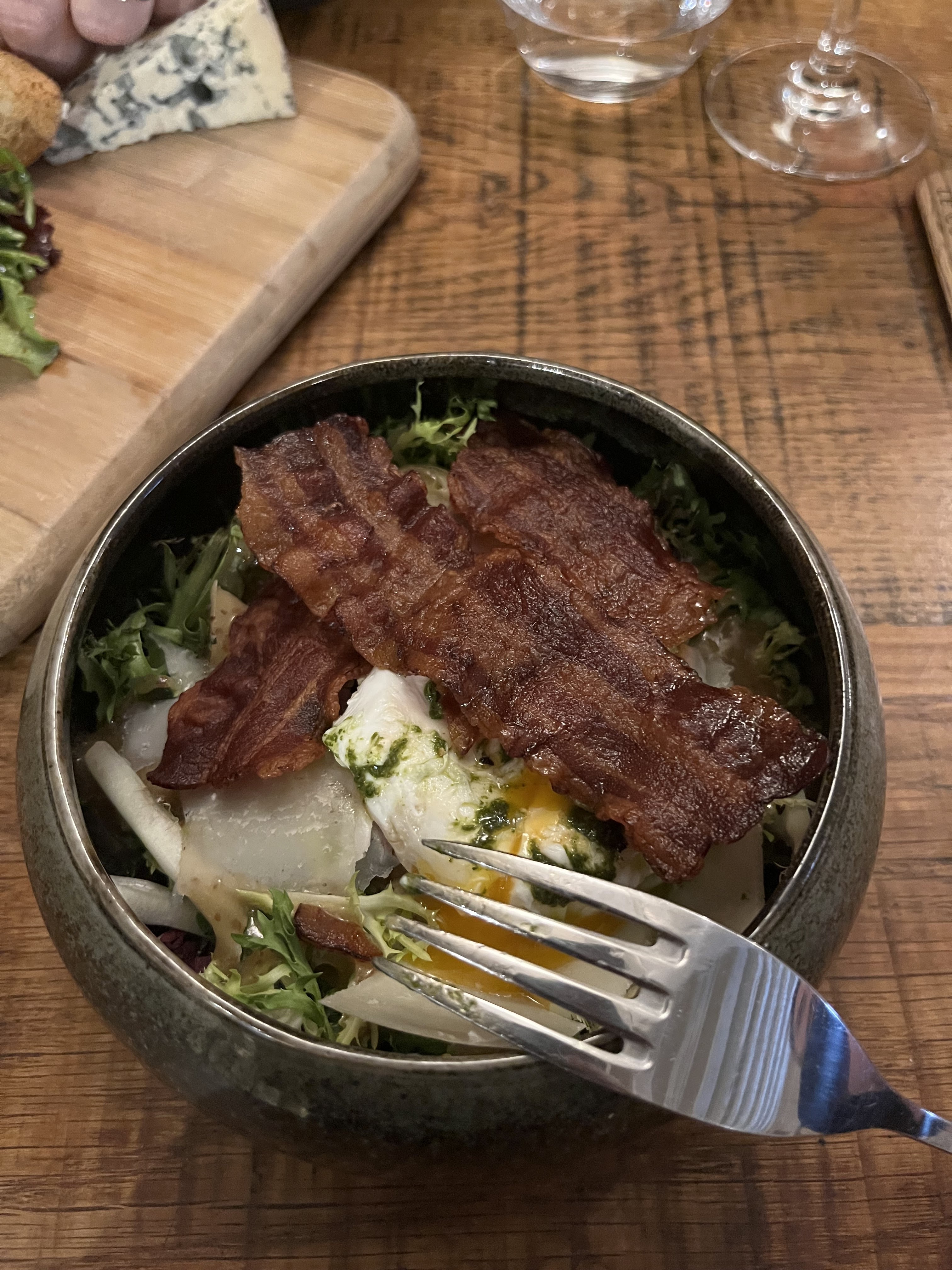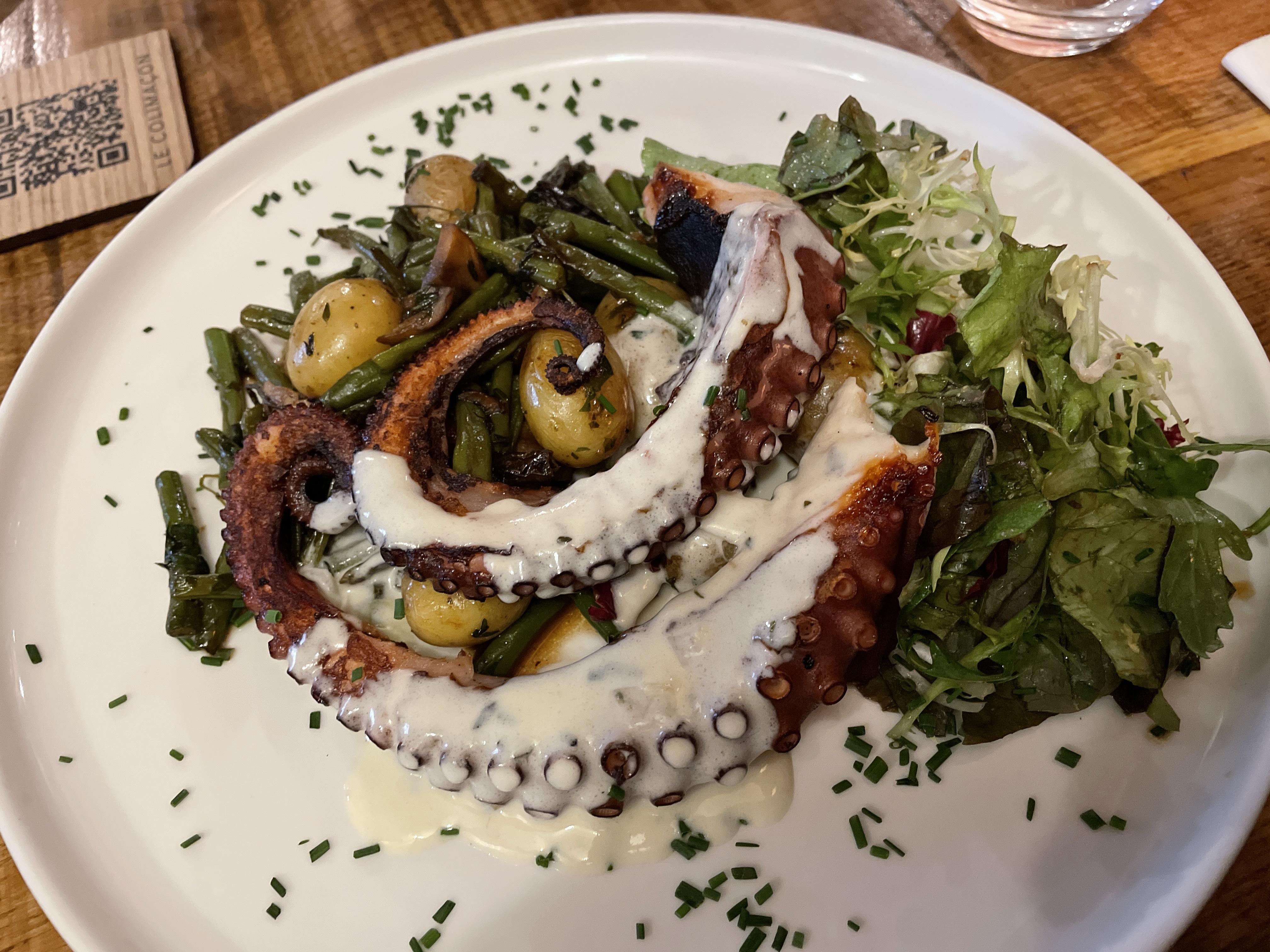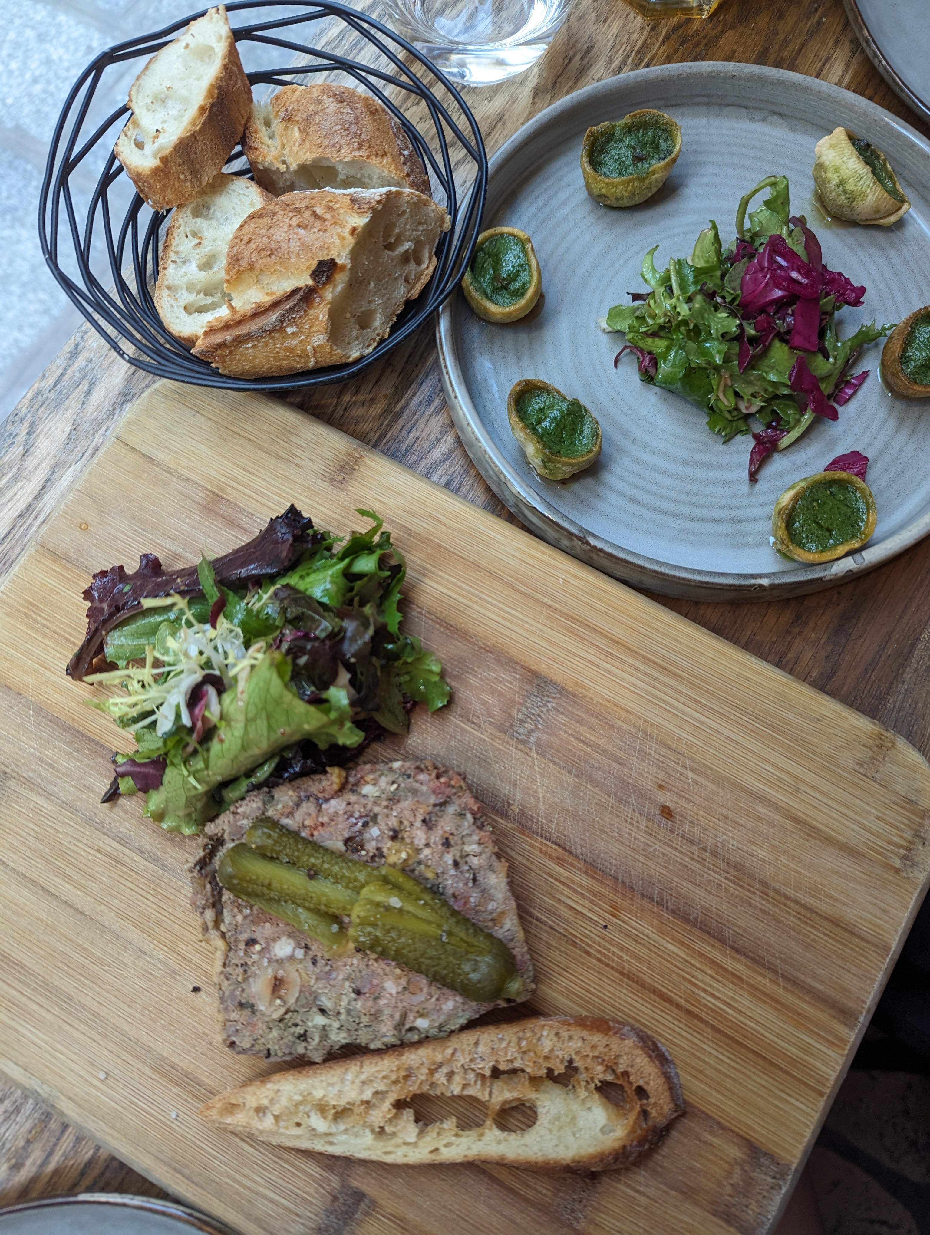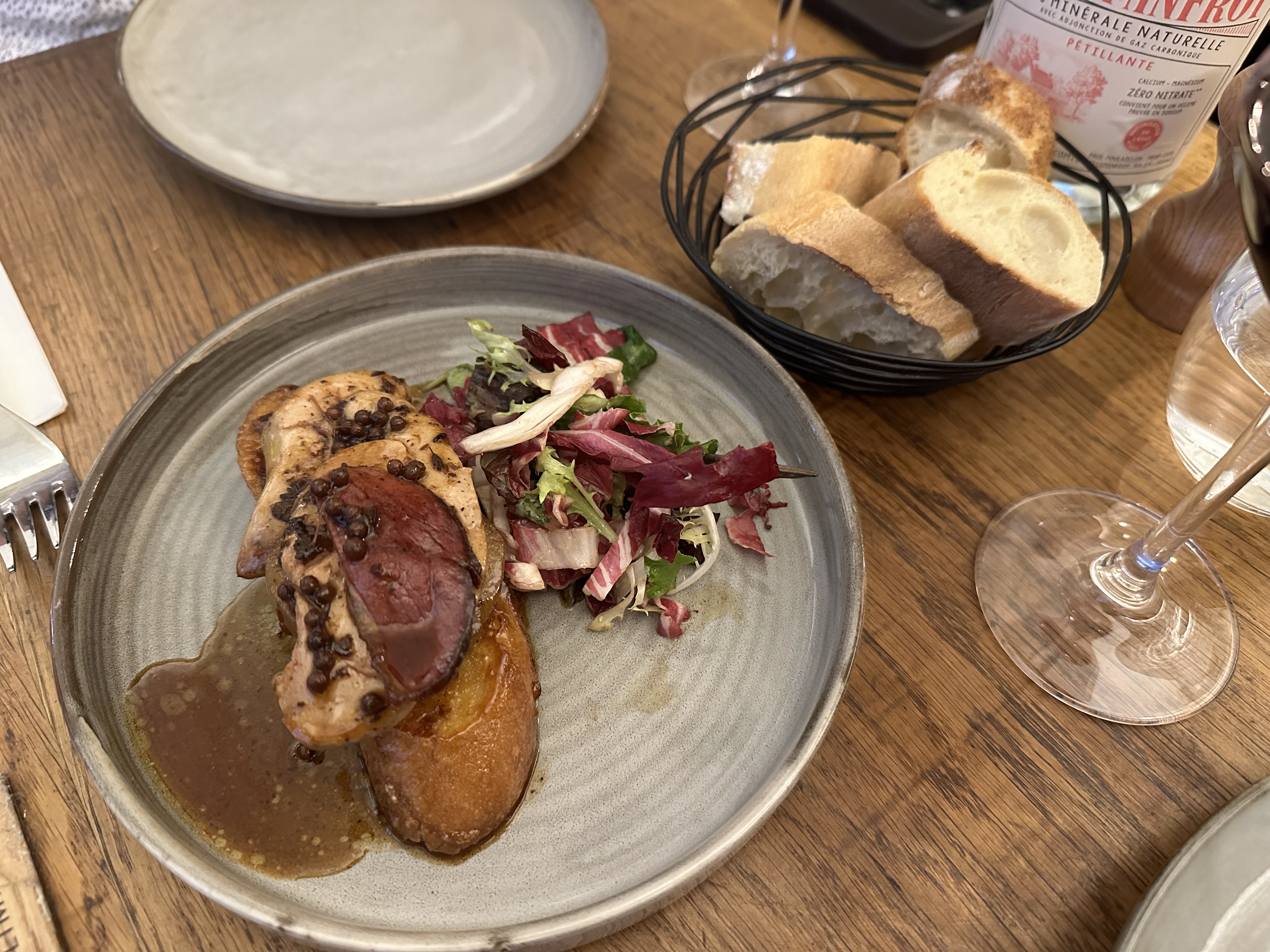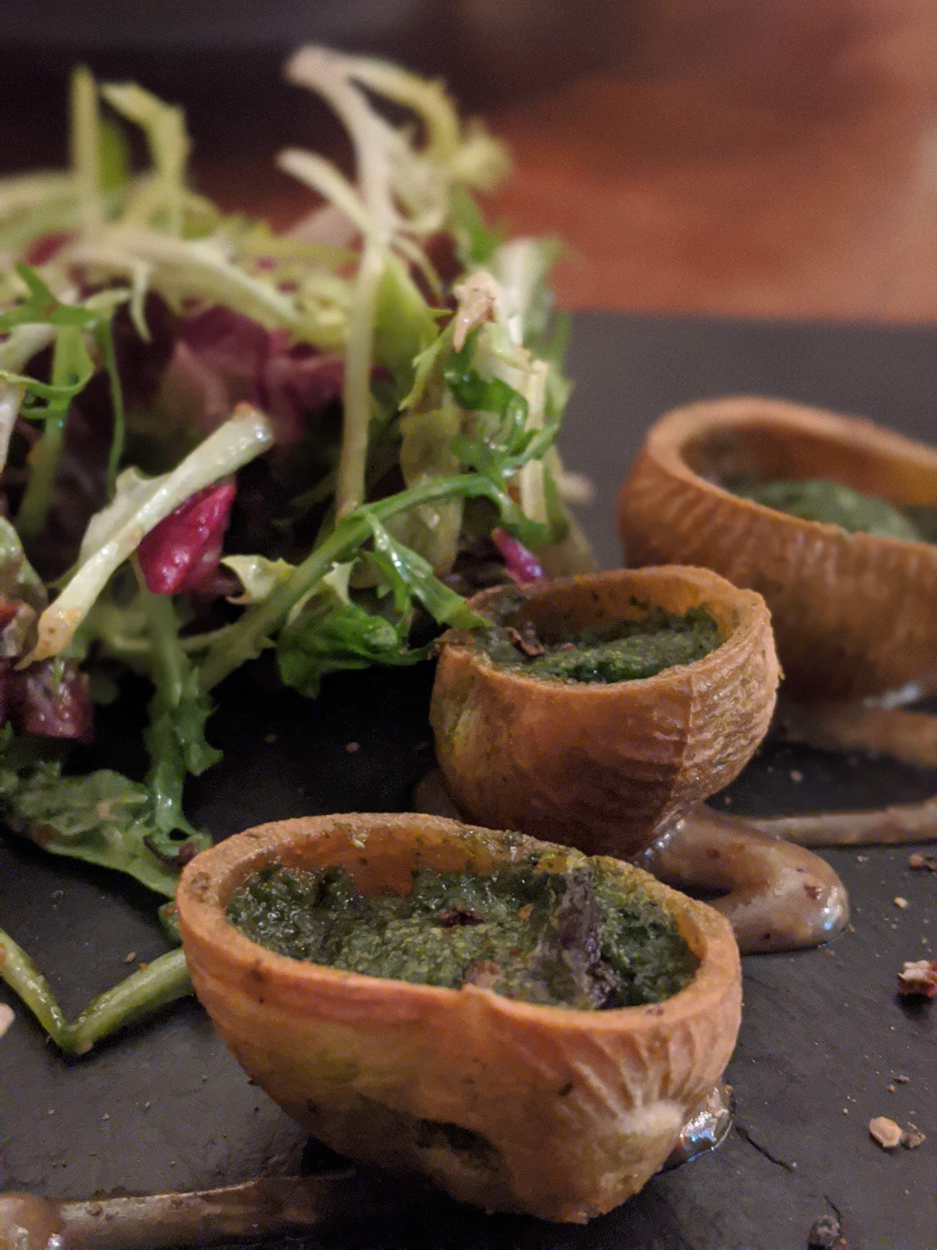 Le meilleur repas que nous avons eu en France ! Procurez-vous les « chips » d’escargot. Le canard était aussi fantastique. Nous avons également adoré flâner dans les rues autour du restaurant.