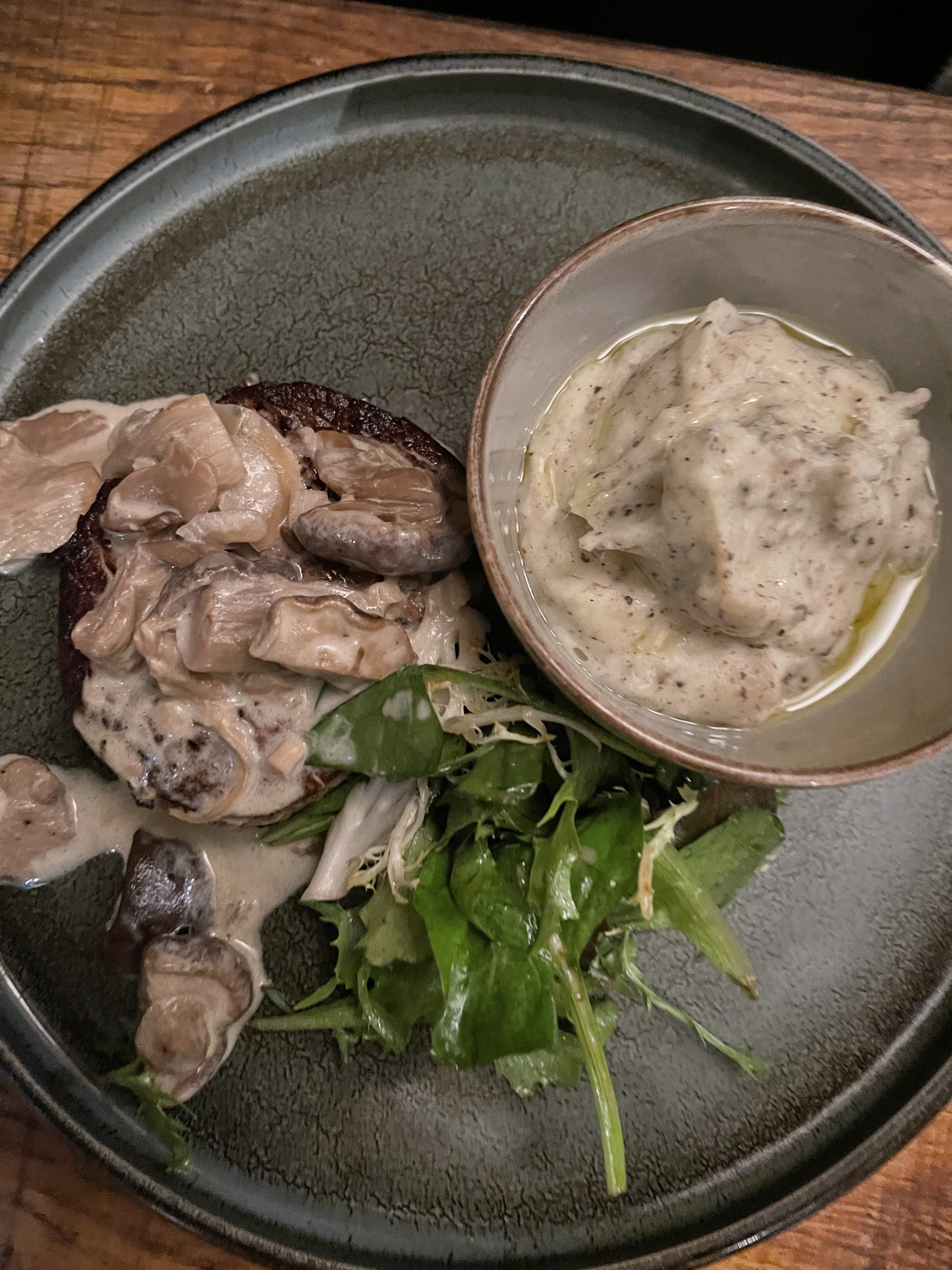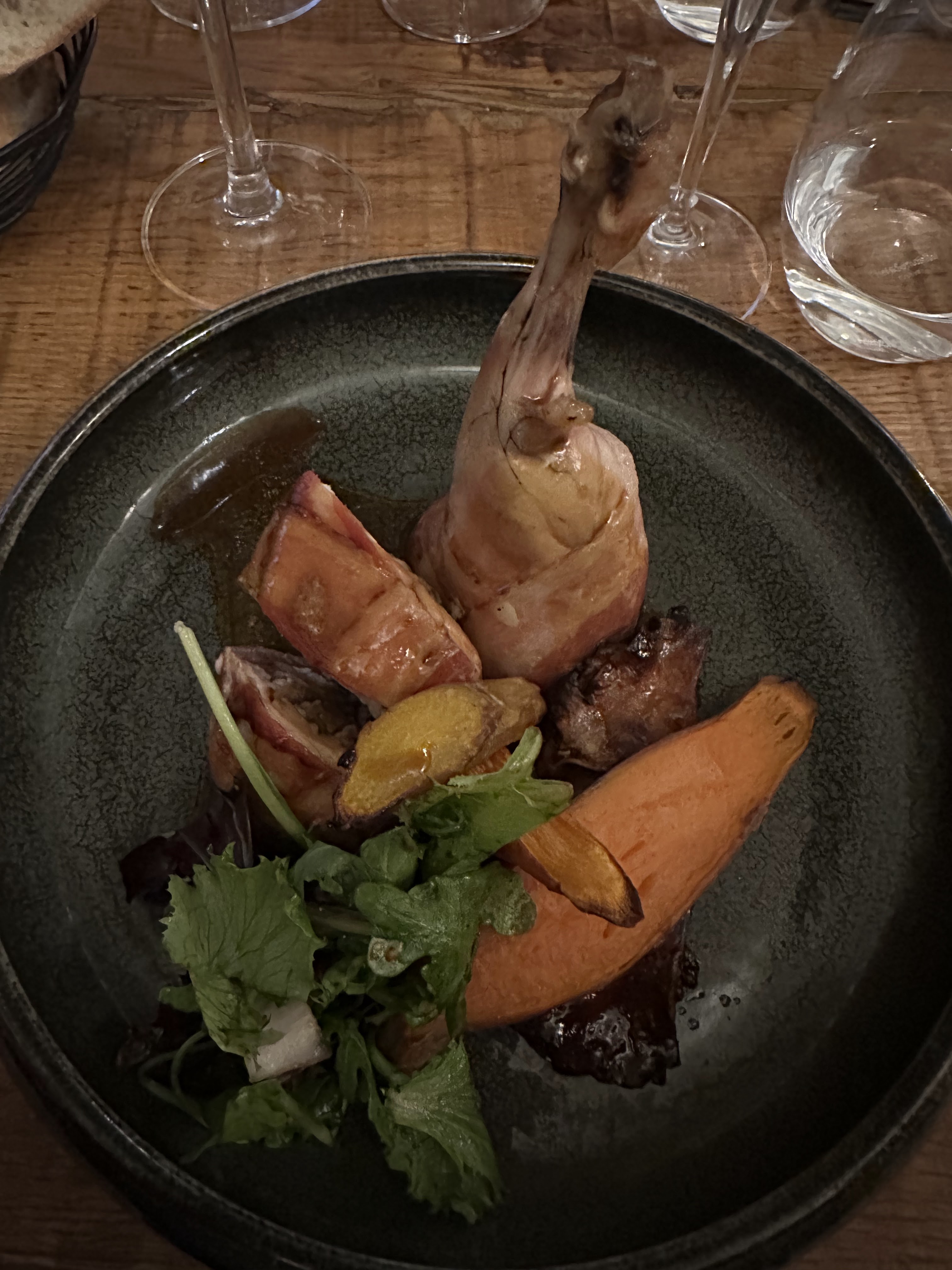 Nourriture phénoménale; rustique et délicieux. La nourriture était excellente dès le début. J'ai commandé le foie gras poêlé et la soupe de butternut en entrée. Le pain sous le foie gras s'imprégnait de tout le bon goût et le plat était bien équilibré. La soupe à la butternut était crémeuse mais légère. Le tartare de bœuf était assaisonné à la perfection mais la star de la soirée était le lapin !