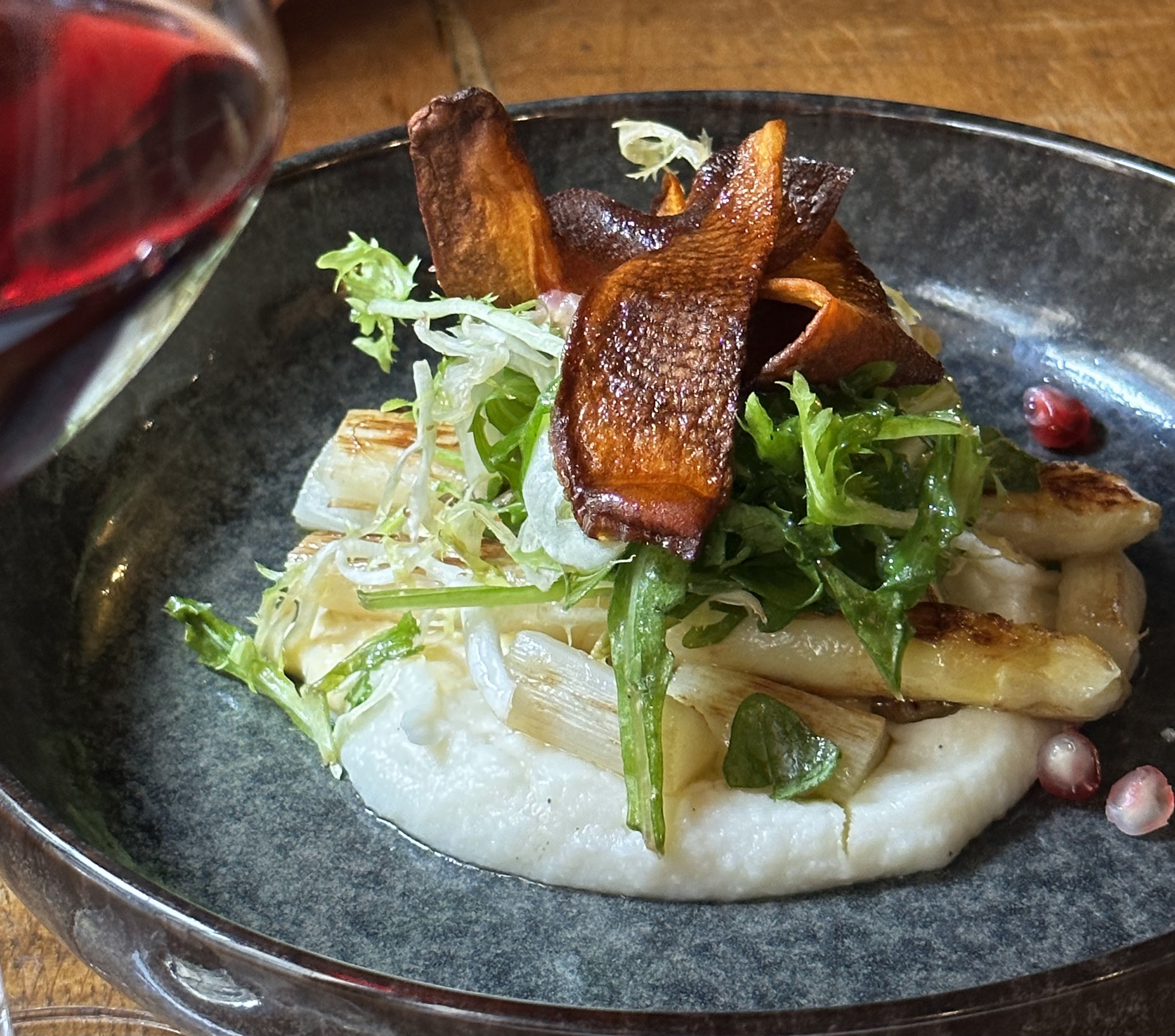 Quel incroyable dernier repas à Paris. Nous avons apprécié l'application aux asperges et l'application aux chips d'escargots, le bar et la côtelette de porc ainsi que les cocktails et le vin. La présentation était magnifique et la nourriture était incroyablement savoureuse - sans sel ! De retour à la maison demain…