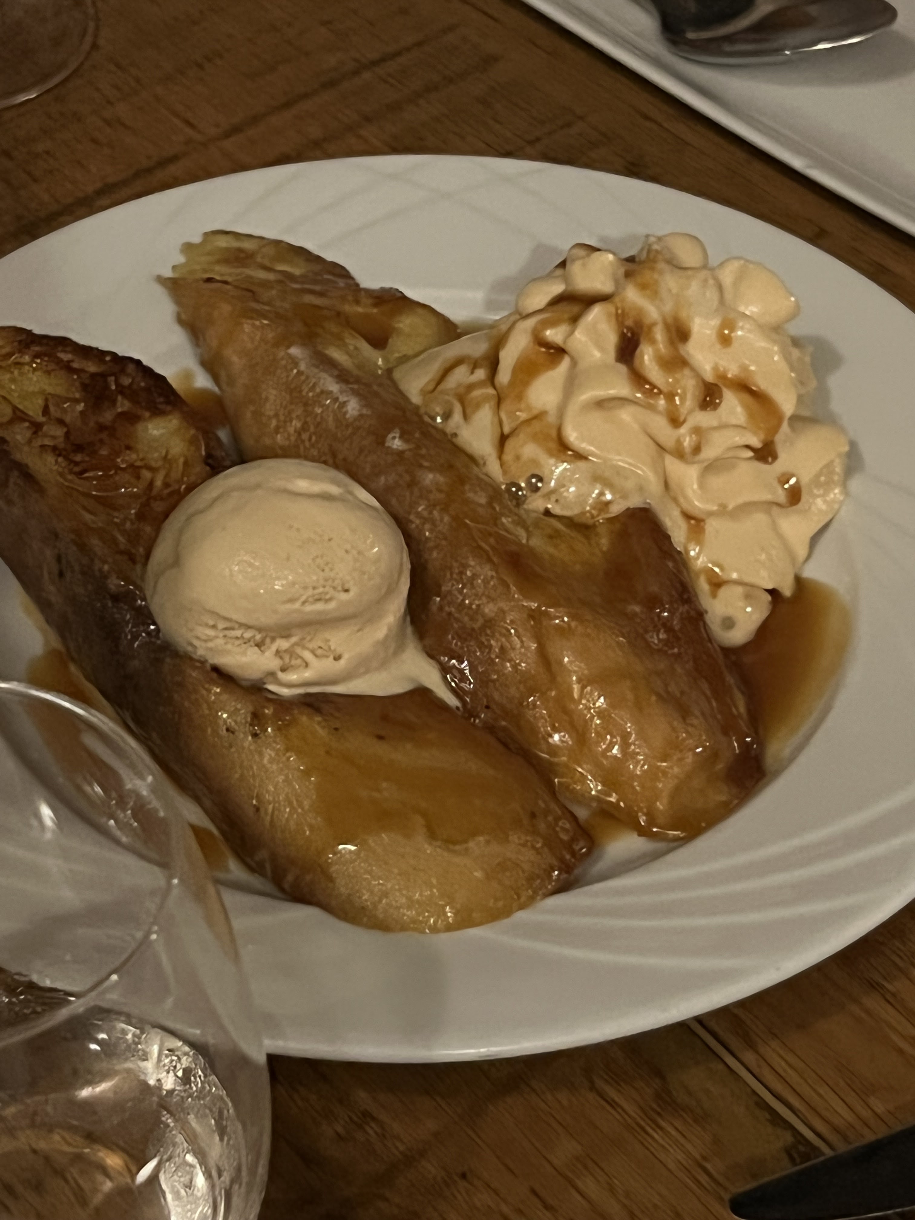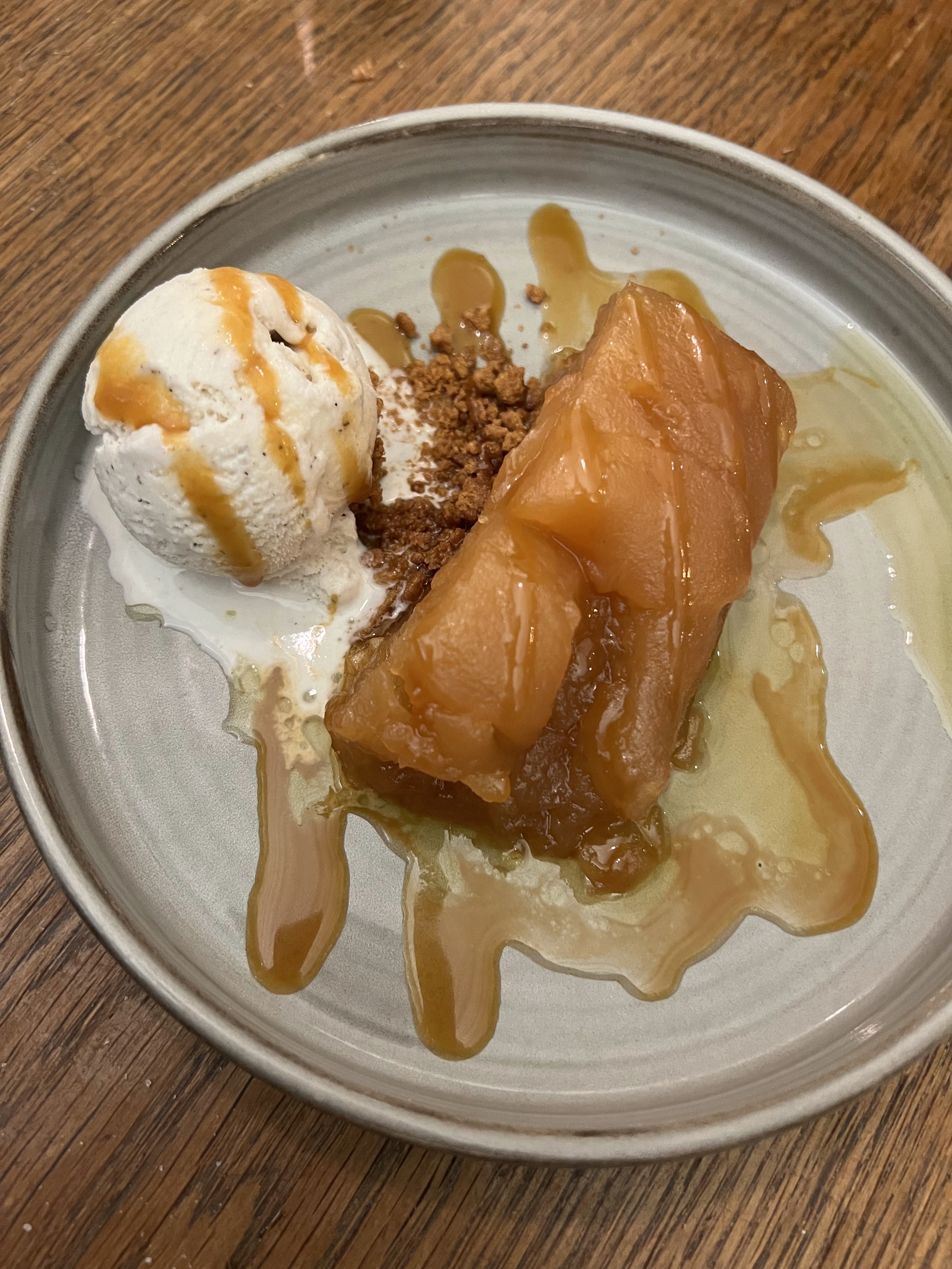 Nourriture et service délicieux! Le plat de canard est divin. La soupe à la courge musquée était délicieuse et le désert de glace au caramel avec brownie était délicieux. Nous y sommes allés en février et ma seule suggestion est de vous assurer que vous êtes assis aussi loin de la porte d'entrée. La brise était glaciale mais la serveuse faisait de son mieux pour s'assurer que le rideau soit tiré sur la porte. Beaucoup de gens ont essayé de venir ici, alors assurez-vous de réserver à l'avance !