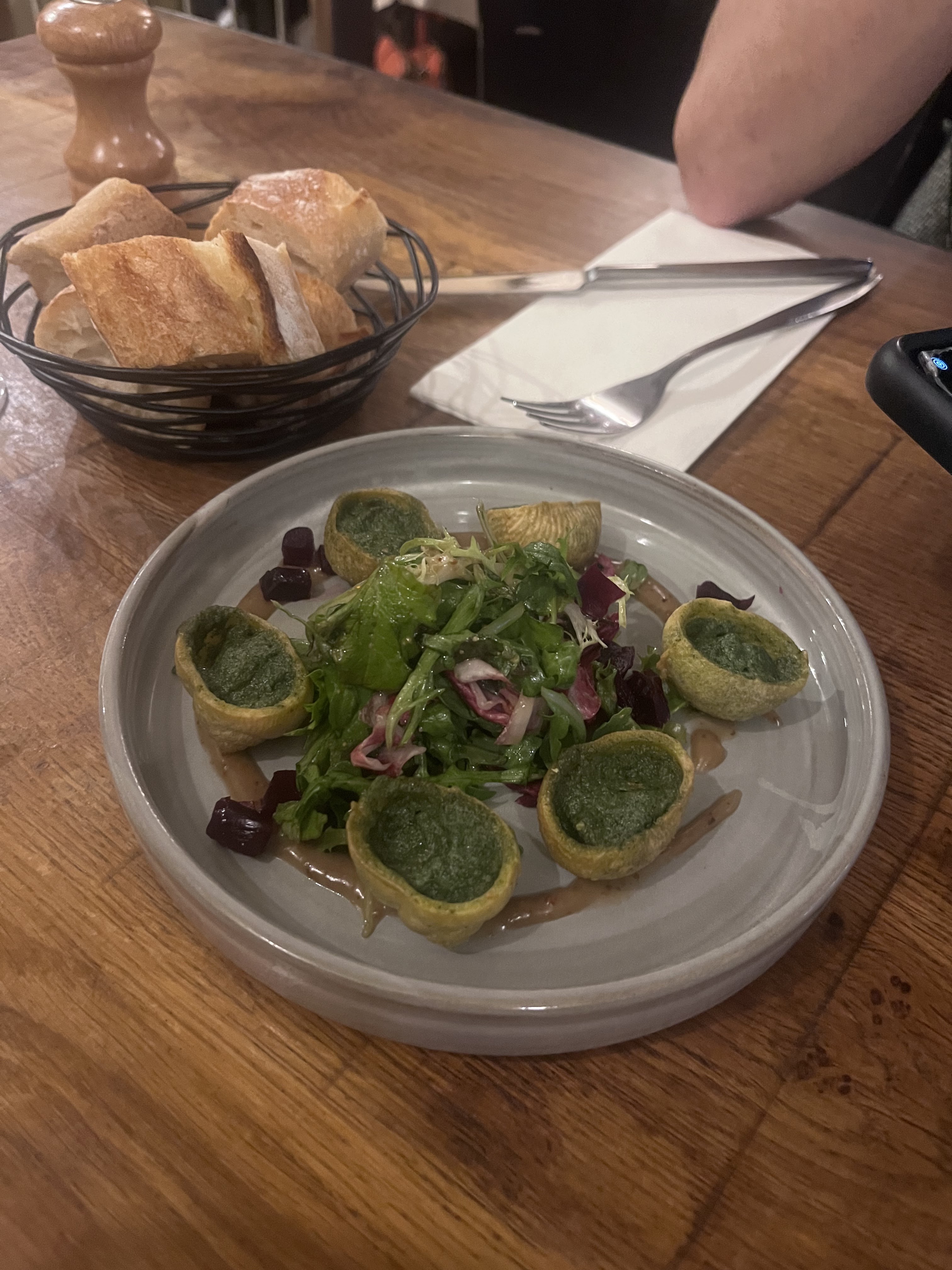 Cuisine magnifique, absolument délicieuse ! Les chips d’escargots étaient incroyables et certainement les meilleurs escargots que j’ai eu. Un si beau bâtiment ancien avec une bonne ambiance et un service amical !