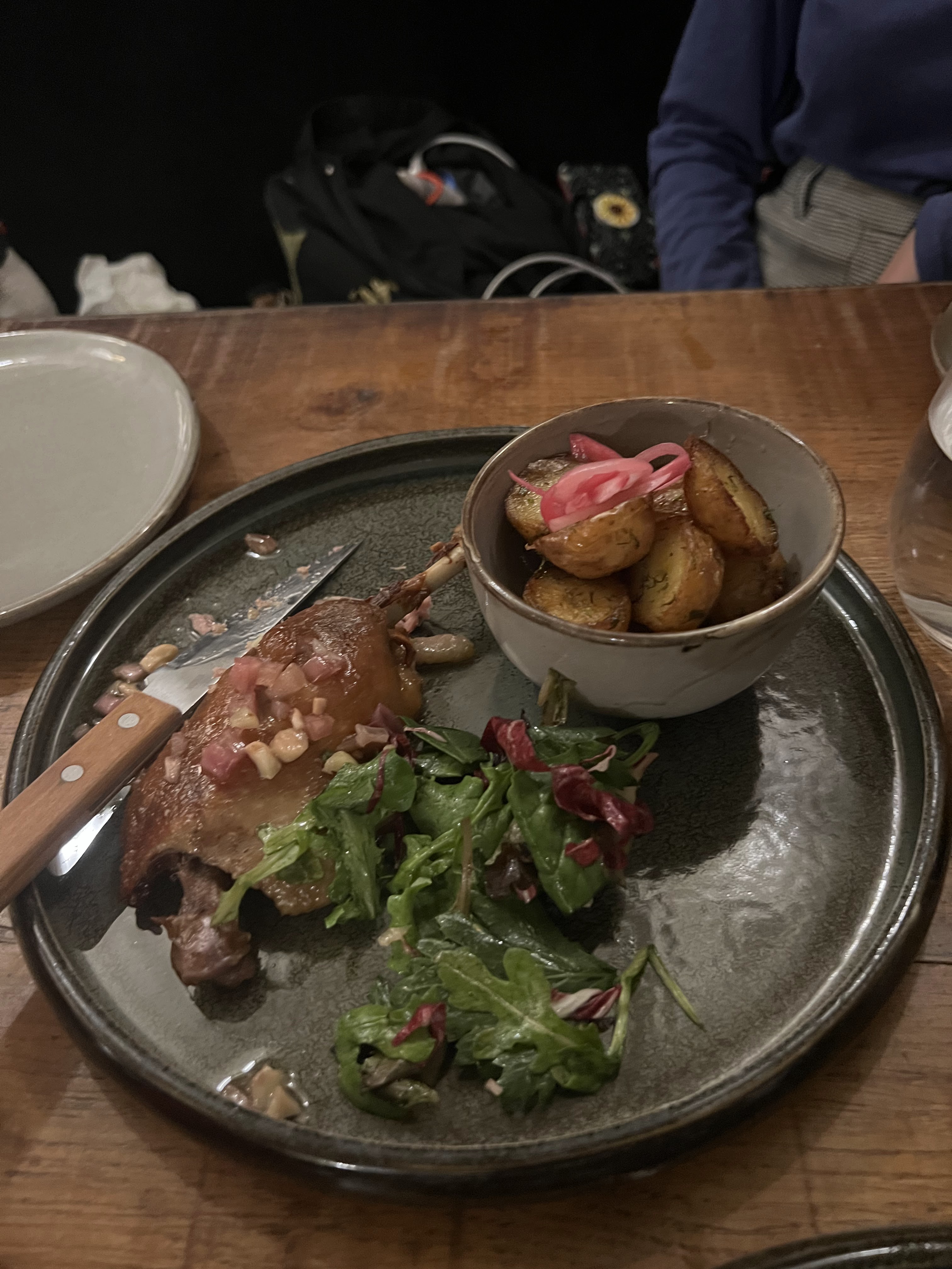très bien! Je n'ai pas pu obtenir de réservation mais je suis arrivé à 19 heures (heure du dîner américain) et je suis entré directement. La salade frisée et le canard confit étaient si bons