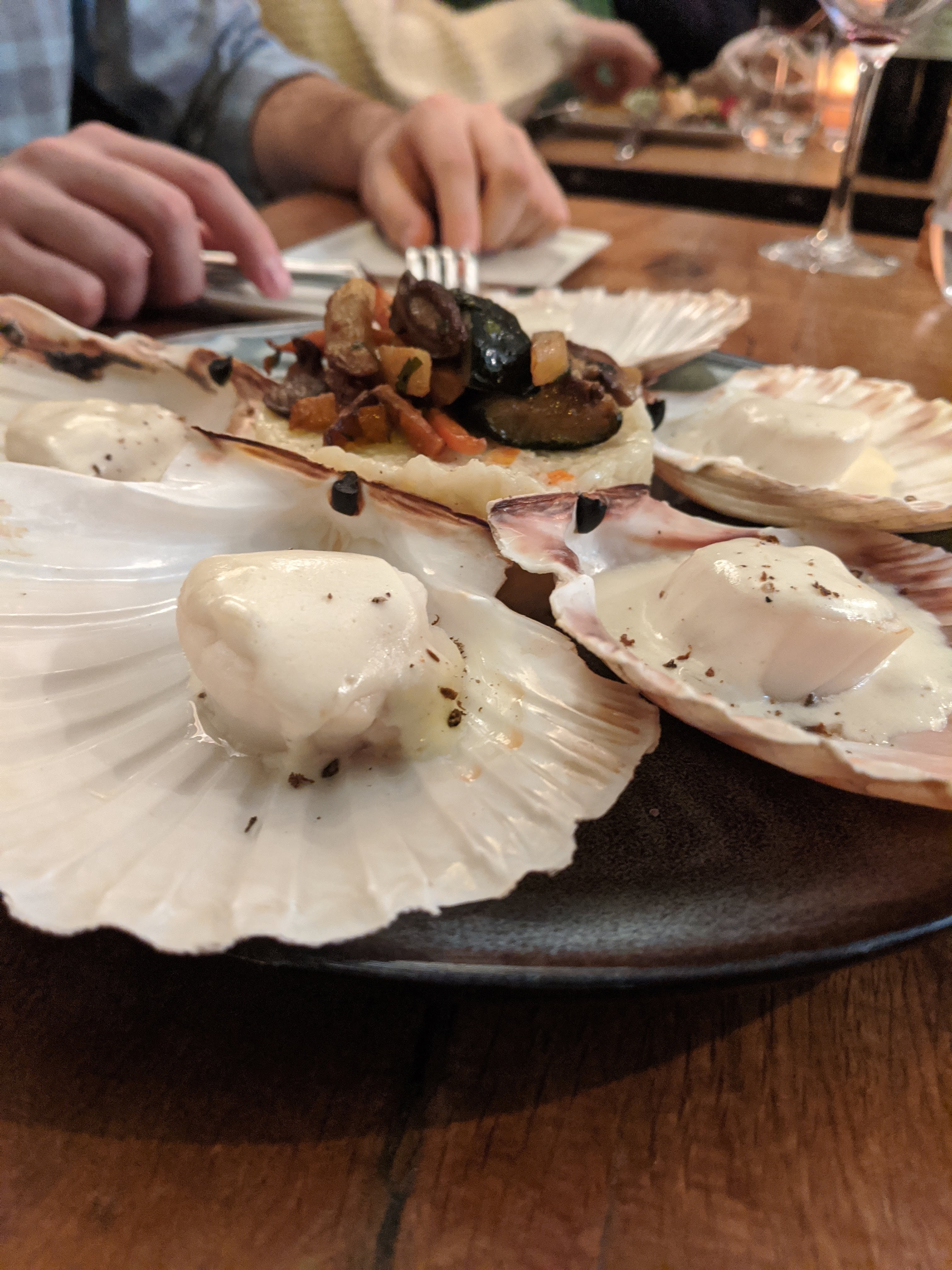 Notre nourriture était délicieuse - nous avons commandé du porc ibérique, des pétoncles au chorizo et du faisan. Tout est délicieux. Notre serveur était Tom et il était fantastique