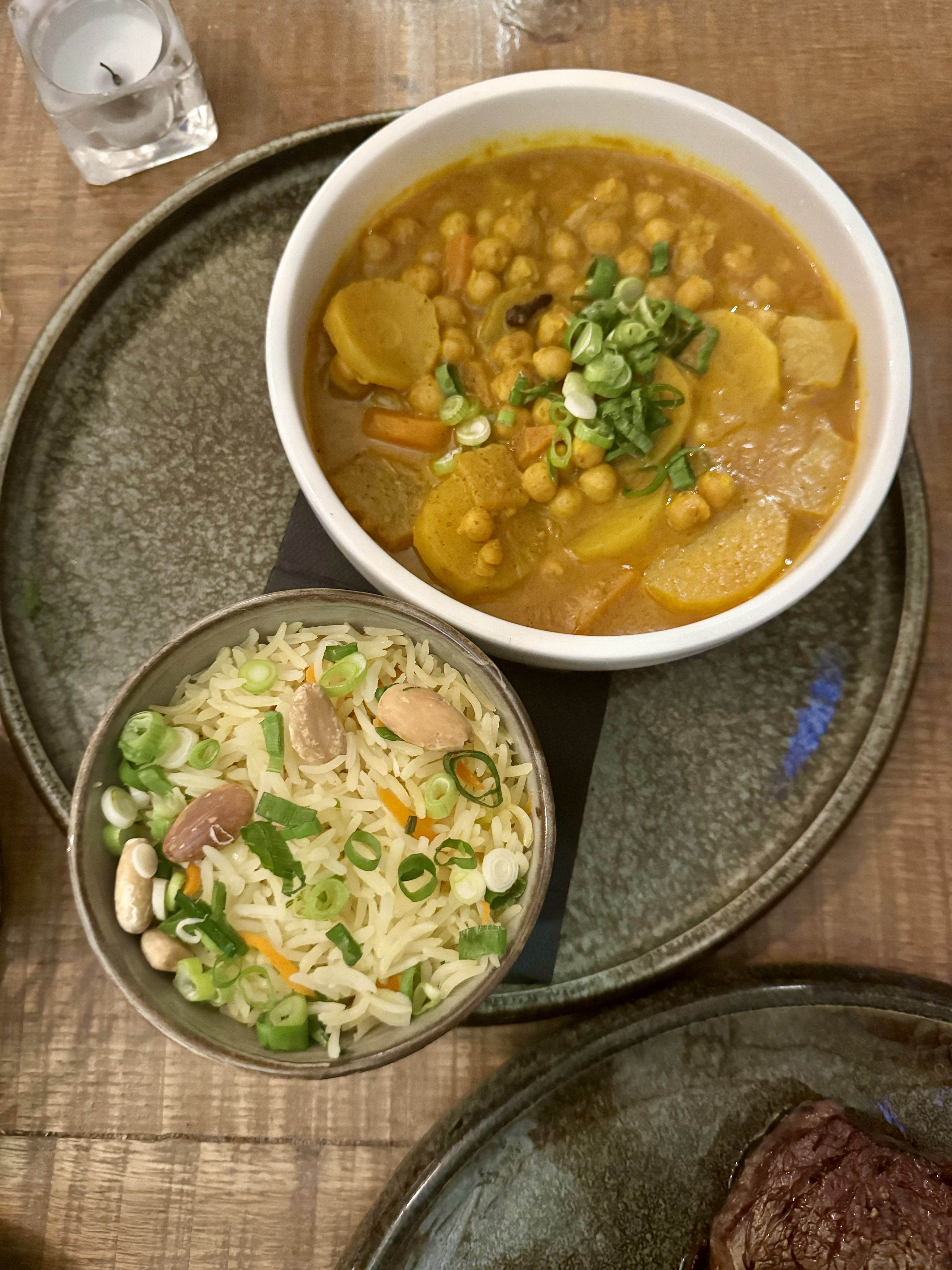 Petit endroit charmant et cosy avec des plats merveilleusement lumineux, colorés et absolument délicieux. Nous avions un mélange d'assiettes de viande et de légumes et toutes étaient belles et débordantes de saveurs. Le personnel était sympathique et efficace et le service était rapide, mais pas trop. Nous ne nous sommes jamais sentis pressés. Cet endroit est un petit bijou.