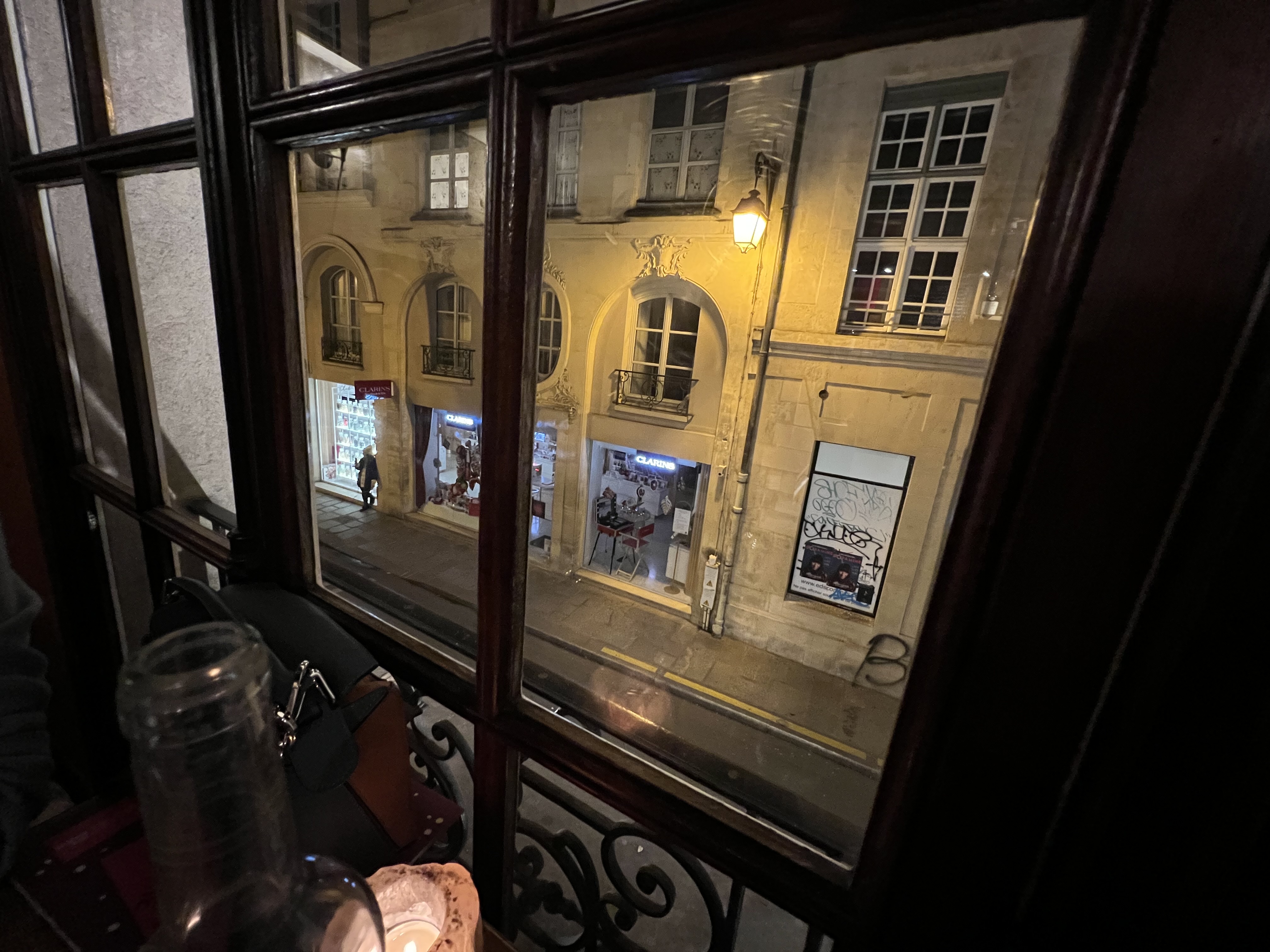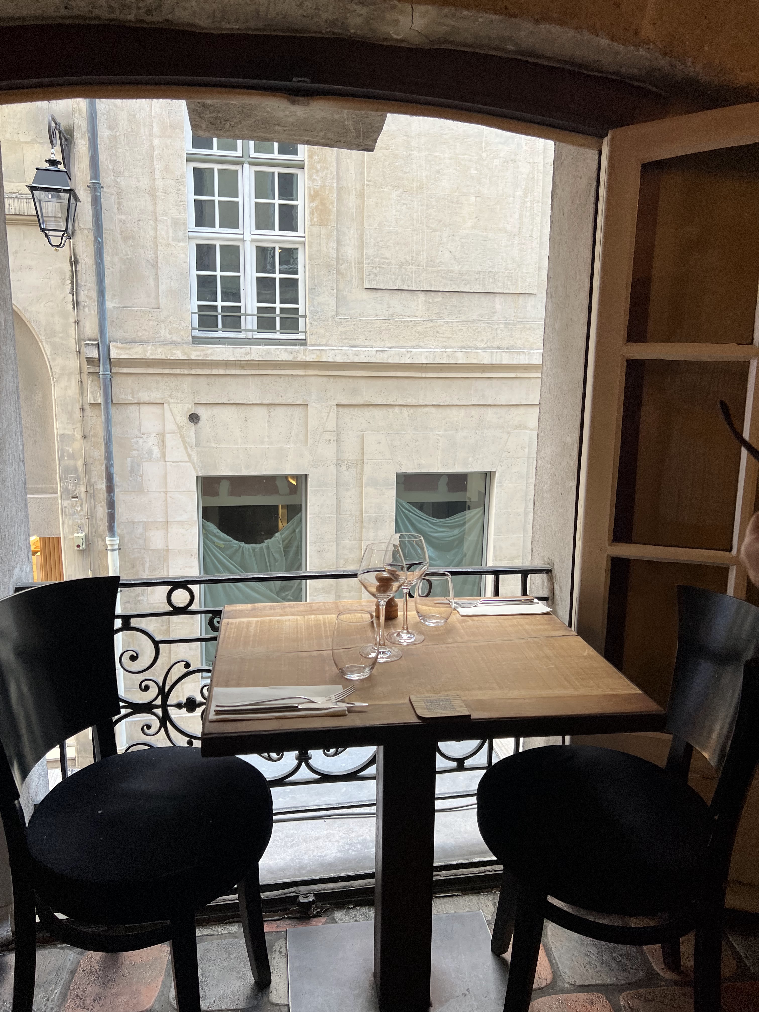 J'ai l'adorable siège près de la fenêtre à l'étage. La nourriture était joyeusement savoureuse, les recommandations de vins étaient amicales et à notre goût et le service était charmant. Je ne saurais trop recommander cet endroit. Une vraie bonne cuisine française dans un cadre incroyable !