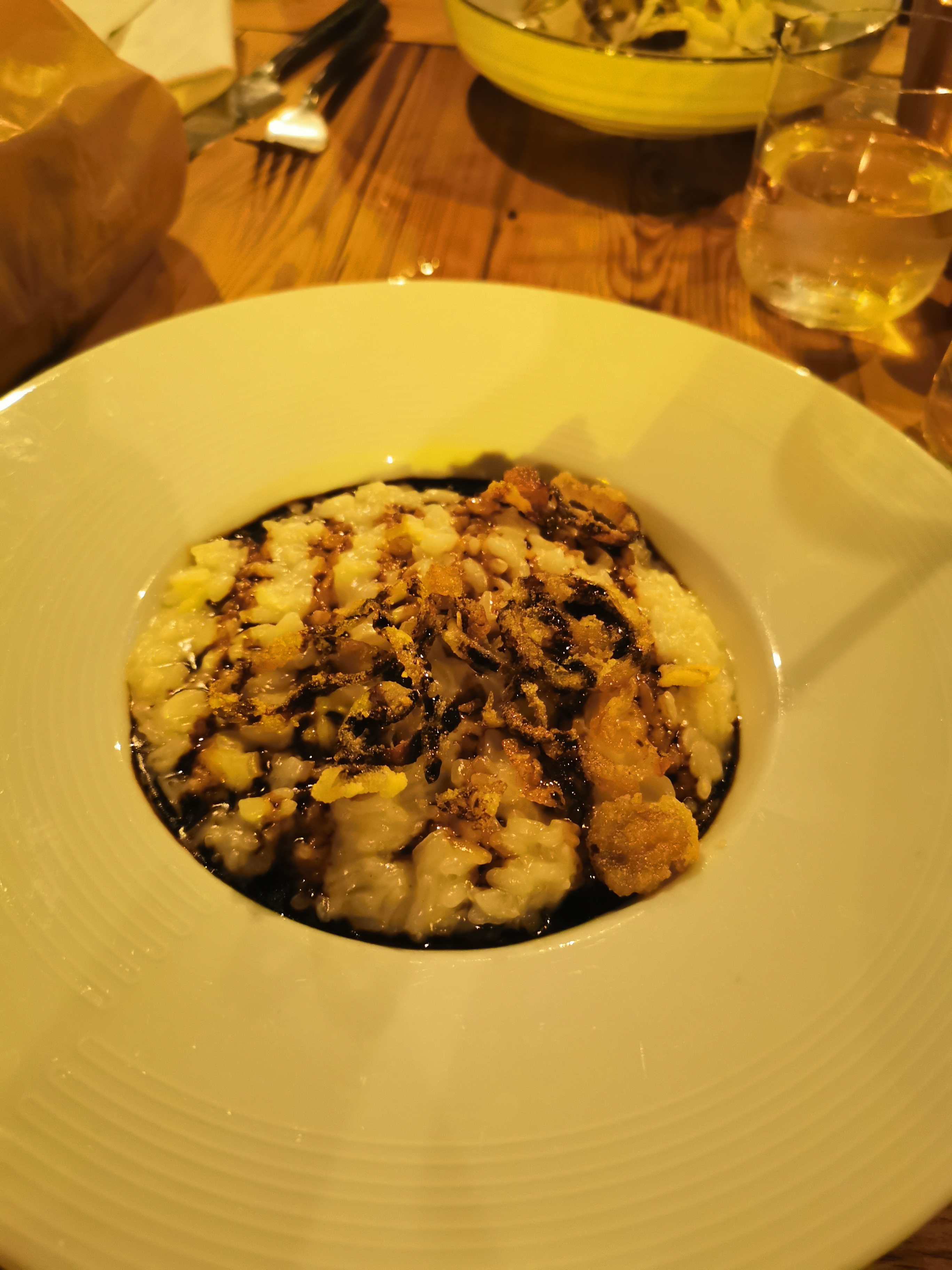 Saint Jacques crues dans le risotto. De l’huile partout dans le risotto. Beaucoup beaucoup trop cher pour ce que c’est.