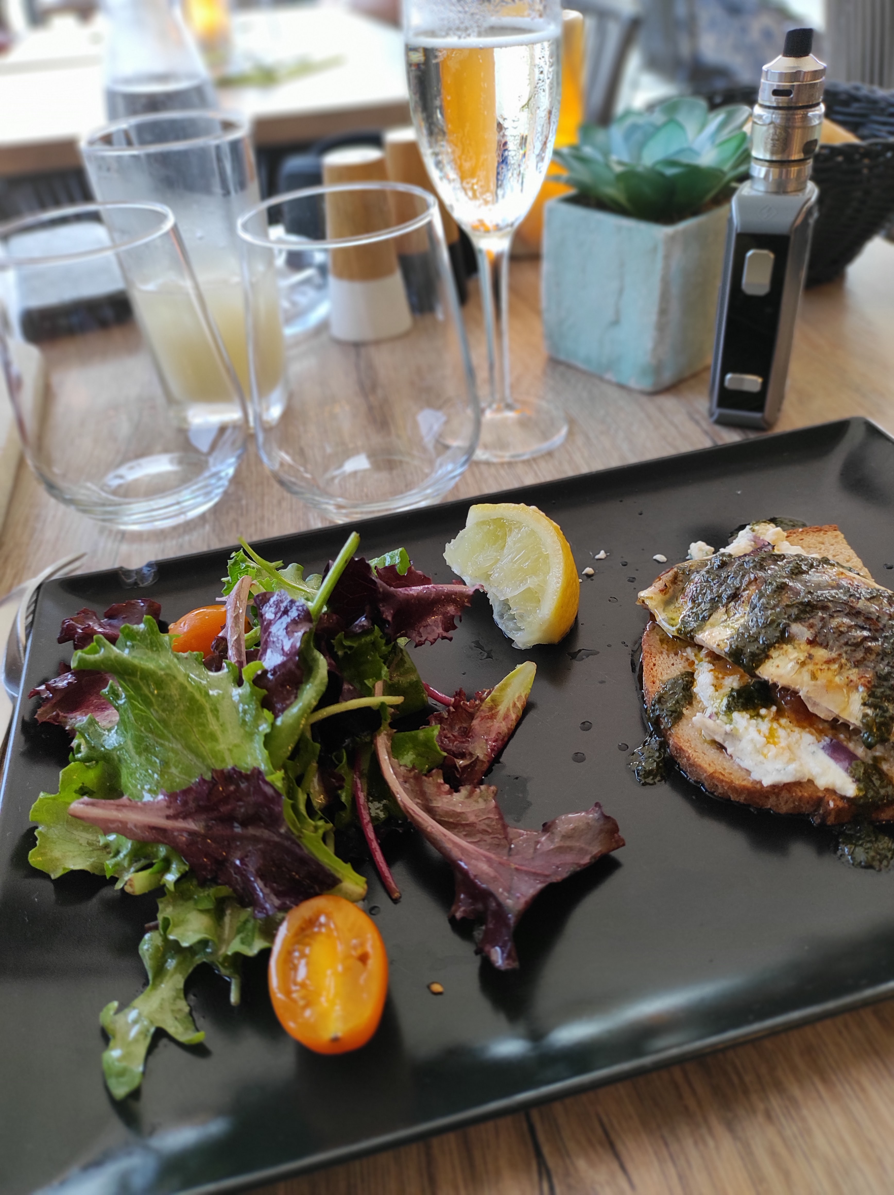 Super restaurant en bord de port la serveuse est au top les salades et desserts également