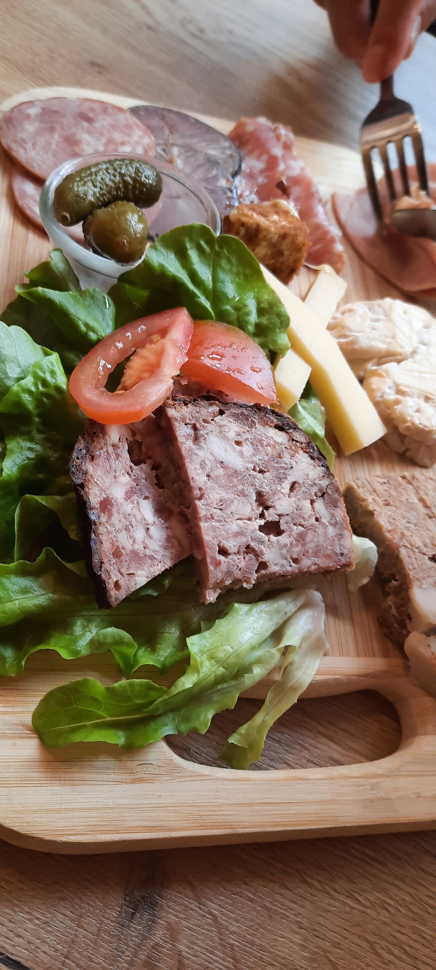 Lieu très chaleur (une cheminée est utilisée pour faire fumer les aliments) Décoration rustique et accueillante, on a l'impression d'être chez des amis ! Les entrées buffet sont bonnes et les plats tout autant !! C'est bien servi et très bon ! Je recommande si vous passez par la Haye du puit