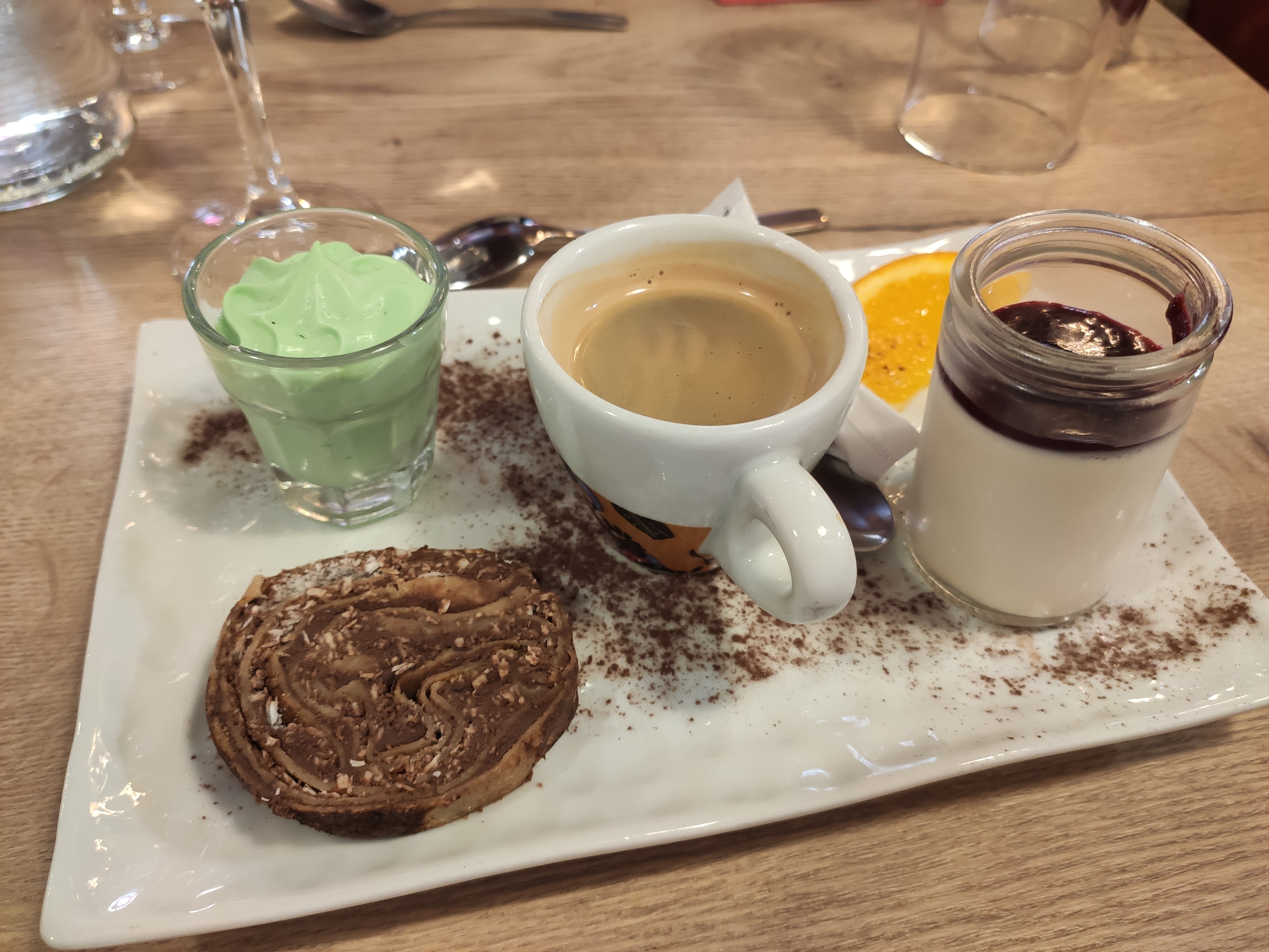 Seulement 4 étoiles nous nous sommes régalés de l’entrée au dessert tout était délicieux Mais malheureusement la convivialité n’y était pas du tout !!! Un ptit sourire un ptit mot gentil et tout serait parfait