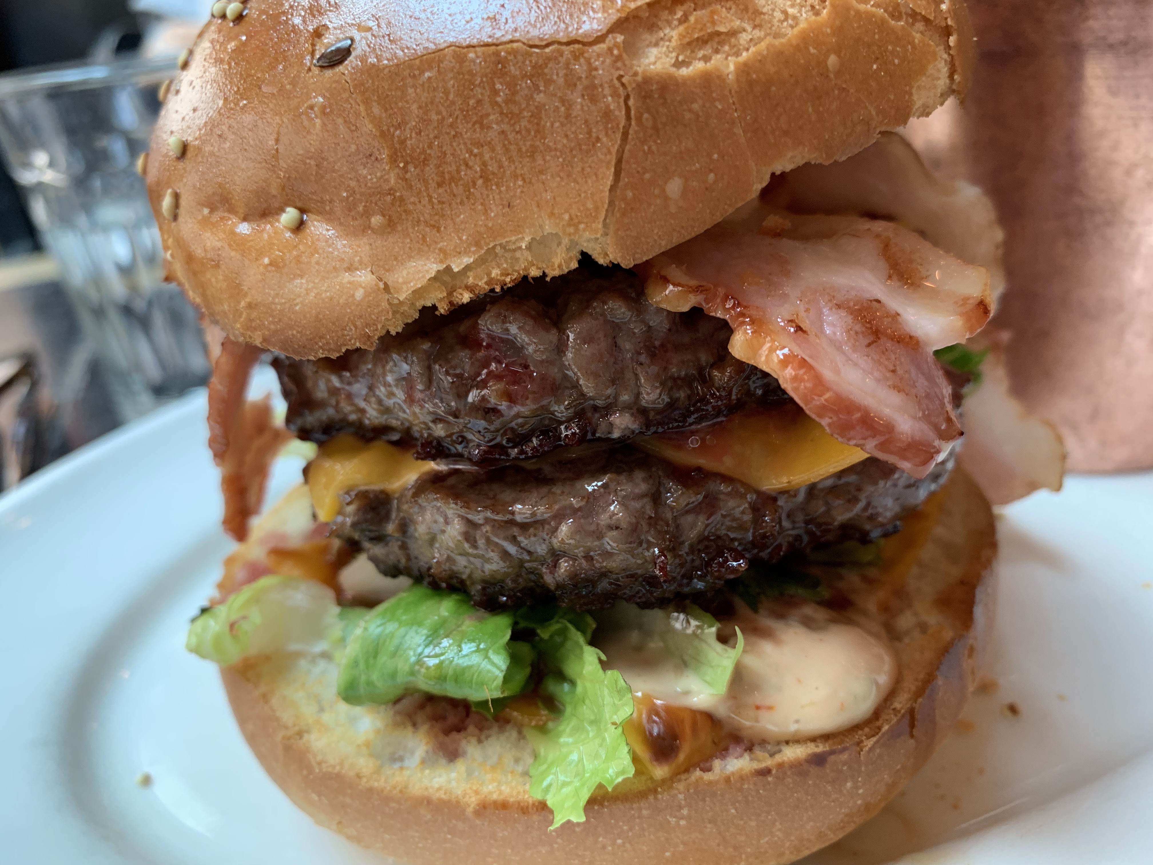 Nous avons atterri dans cette brasserie bien sympa car les cuisines des restaurants alentours ferment toutes vers 14h15. Des l’entrée nous avons été bien accueillis, avec le choix terrasse ou salle. Une fois installé par notre serveur super cool et pro, nous avons commandé double burger bacon et bavette. Viandes correcte, burger bien monté avec un pain assez gourmand. Le bacon mériterait d’être un peu plus grillé mais sans cela rien à redire. La cuisson de la bavette était parfaite et les frites maison étaient vraiment maison. Simple et bon. On a demandé une crêpe Nutella avec beaucoup de Nutella, et c’était effectivement généreux. Gros point pour le serveur moustachu à lunettes super adorable.