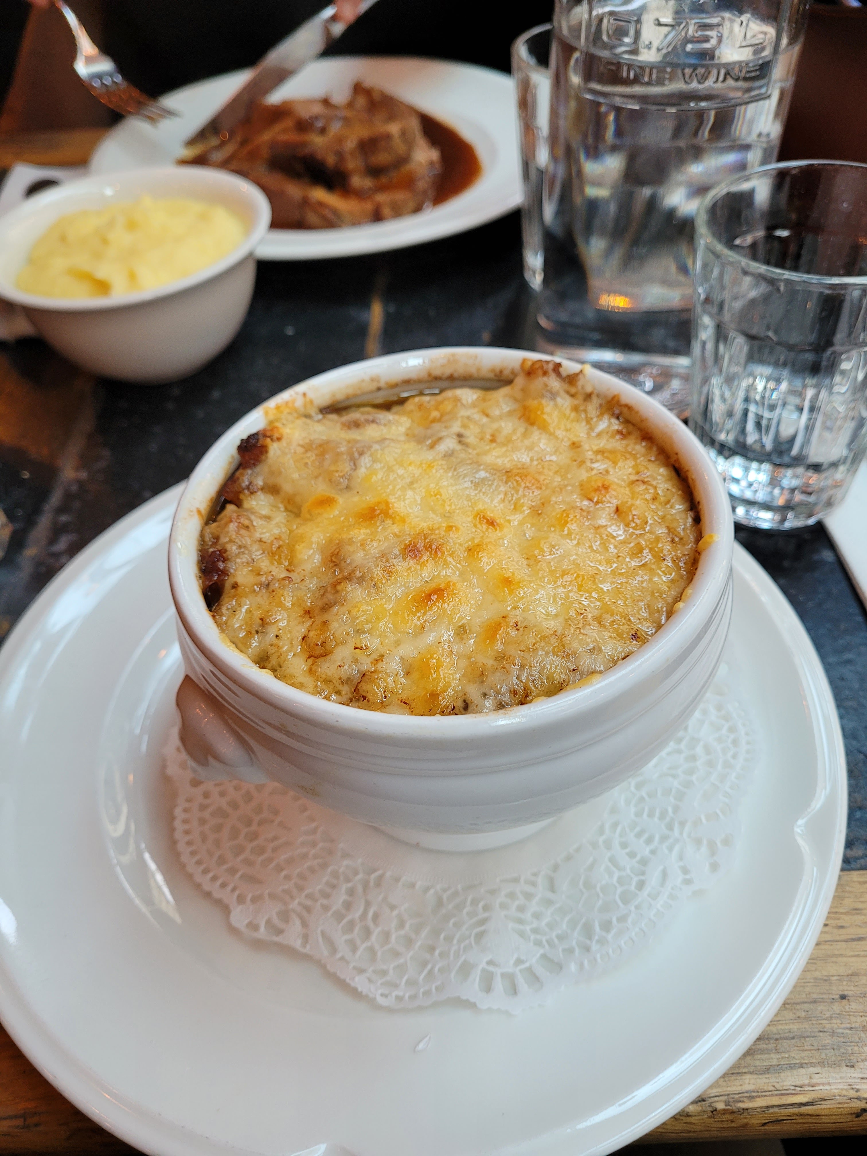 Service rapide sans être précipité, une très bonne brasserie parisienne dans une de mes rue préférées. Soupe à l'oignon bien gratinée, bavette saignante et tendre comme demandée.