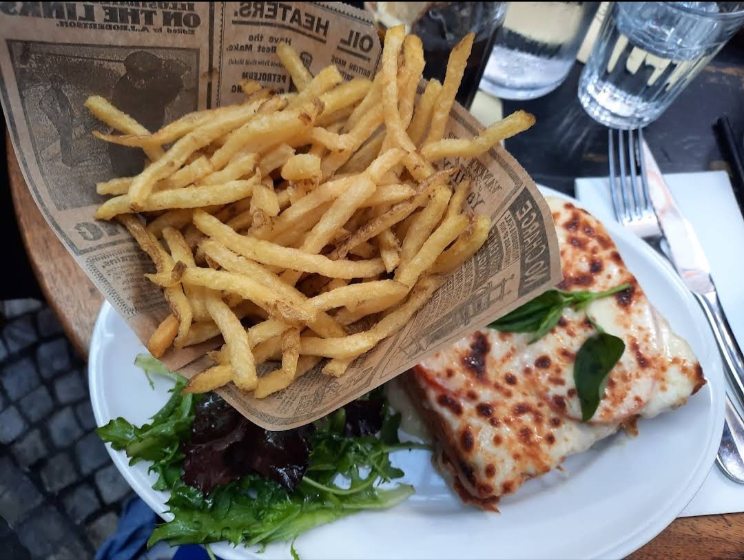 Belle terrasse et service pro Les croques sont très bons , Moins bien sur le cheeseburger mais acceptable Vue imprenable sur le belle rue Montorgueil et service par une équipe de beaux-gosses !