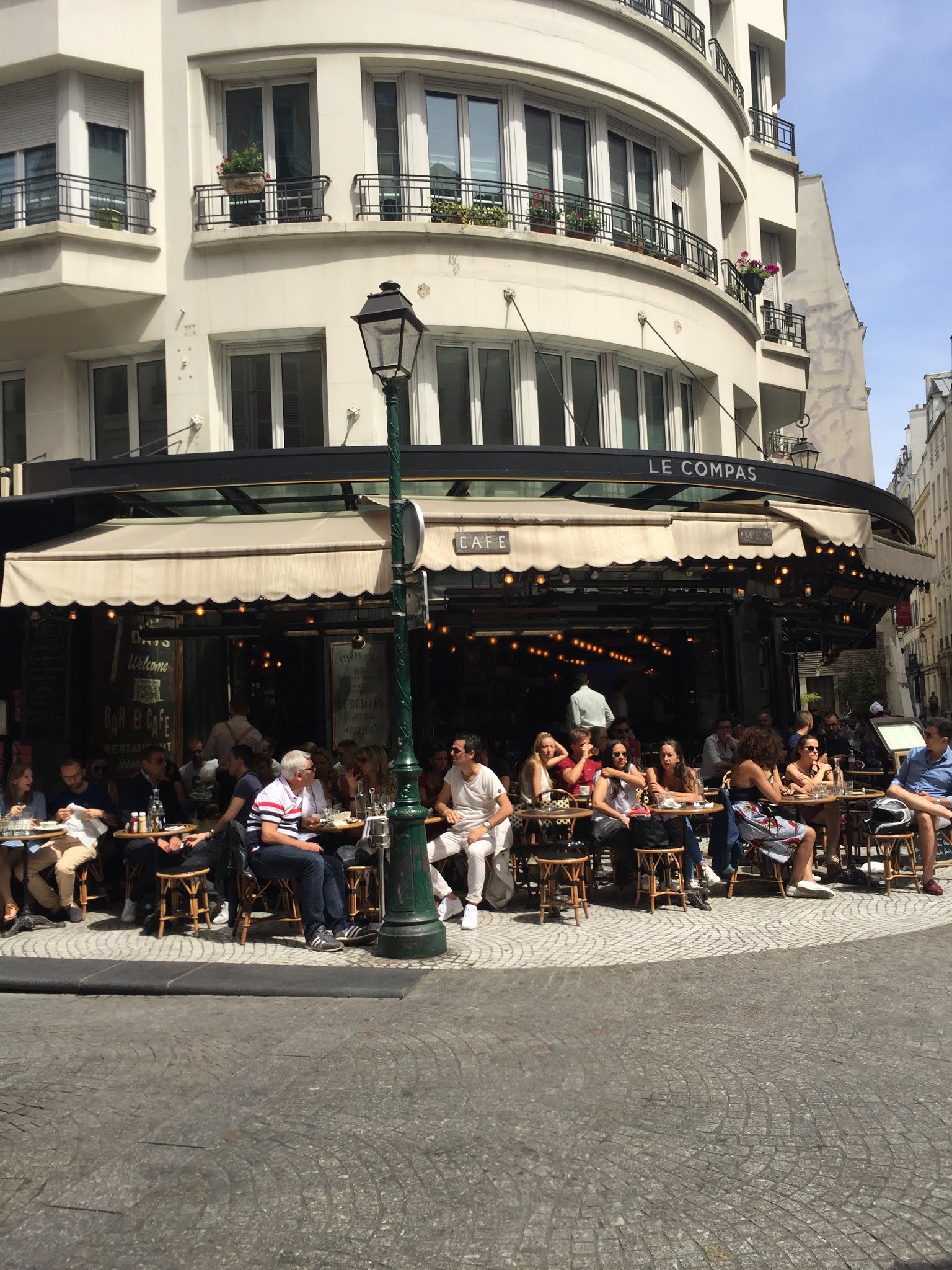 Expérience mitigée, car notre serveur a été exécrable, j’avais rarement vu ça. Le compas est idéalement situé dans montorgueil, on arrive dans un bistro typique parisien avec un menu brunch (le dimanche) à 28€, avec boisson chaude et froide comprises, viennoiseries, puis une assiette généreuse et un assortiment de 3 bons desserts. Tout était très bon et le prix vaut vraiment le coup. Notre serveur nous a cependant engueulé car nous étions trop longs à son goût pour prendre la commande, nous jetait presque les assiettes et couverts sur la table & nous a tout retiré, boissons non terminées y compris puis nous apporte l’addition alors que nous n’avions pas eu nos desserts. Un pardon à demi-mots du bout des lèvres, mais nous avons finalement eu nos desserts… les autres serveurs semblaient très sympathiques, mais lui nous a presque gâché un bon moment entre amis.