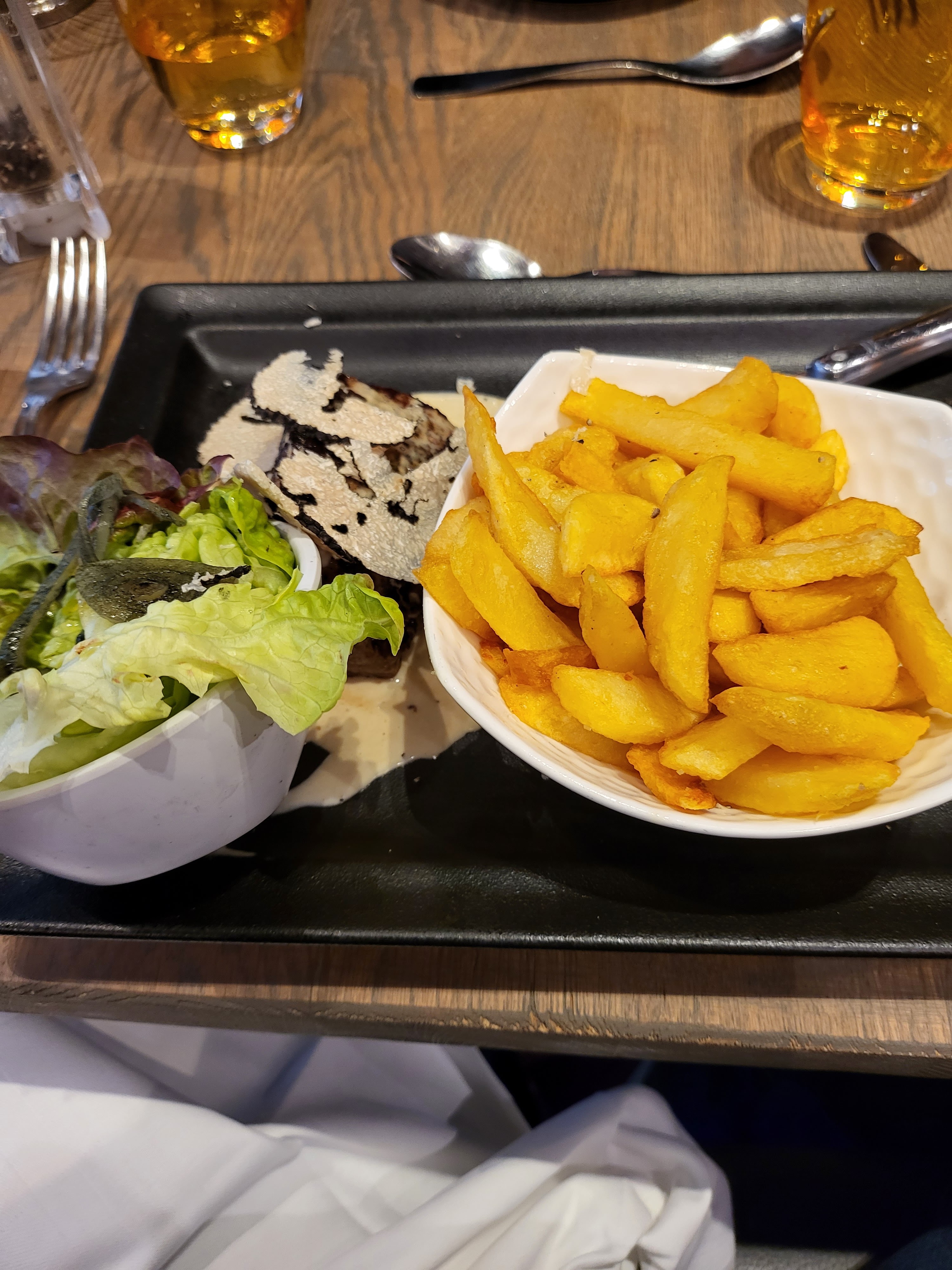 Restaurant Bien situé, bon accueil, nous avons très bien mangé, entrecôte délicieuse ainsi que l'accompagnement, par contre il serait bien de proposer une carte avec les légumes de saison.
