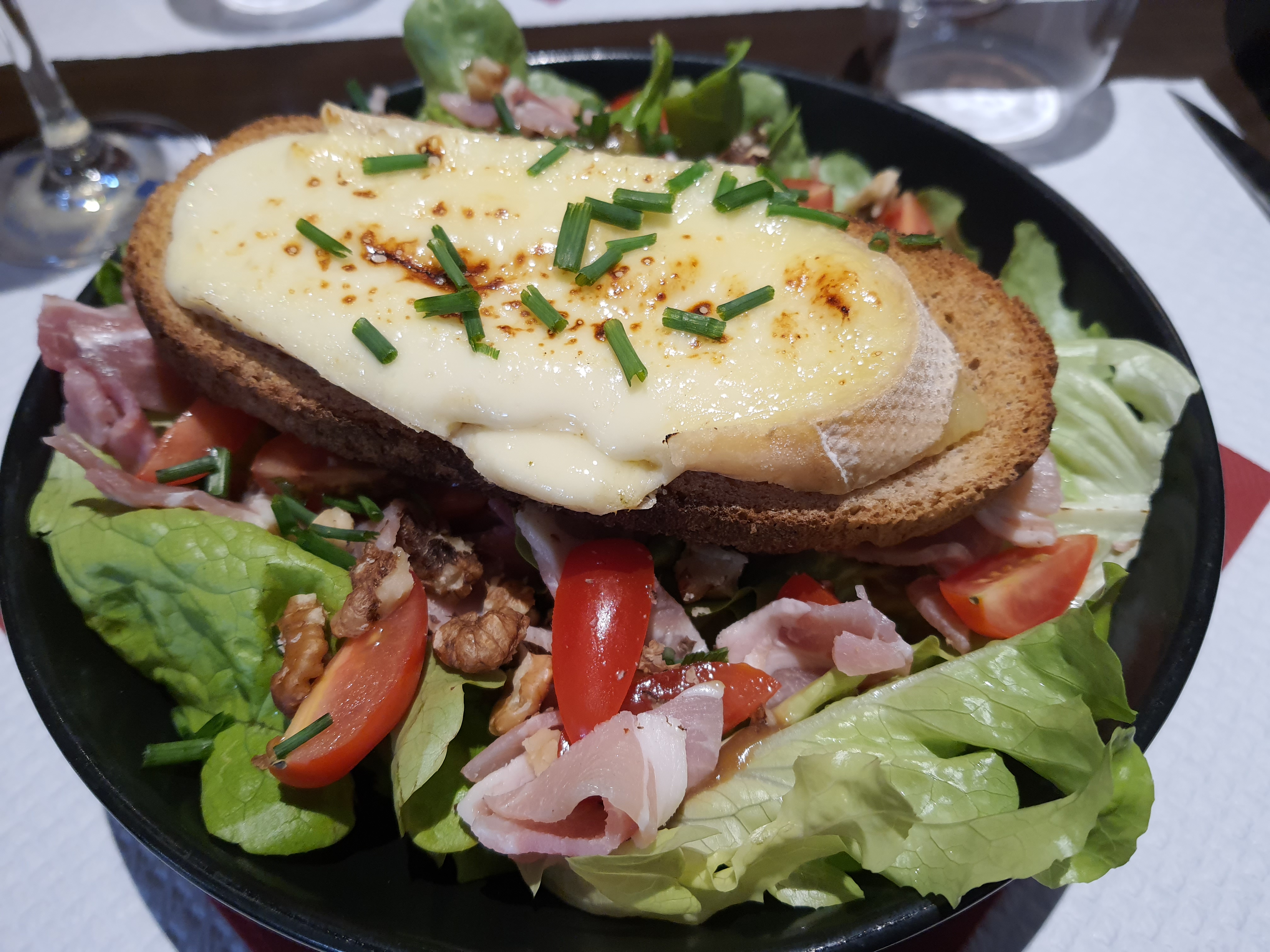 J'ai pris une salade de chèvre chaud 16€ 🙄 Je m'attendais à beaucoup mieux pour ce prix là!!! Une demi laitue, 3 petites tomates cerise et 4 bout de chèvre dans de la feuille de brick. Non mais sérieux un peu d'effort !!! Quant au service, ce qui m'a le plus achevé c'est quand la serveuse nous a donné le pain de la table d'à côté....INADMISSIBLE !!!!!