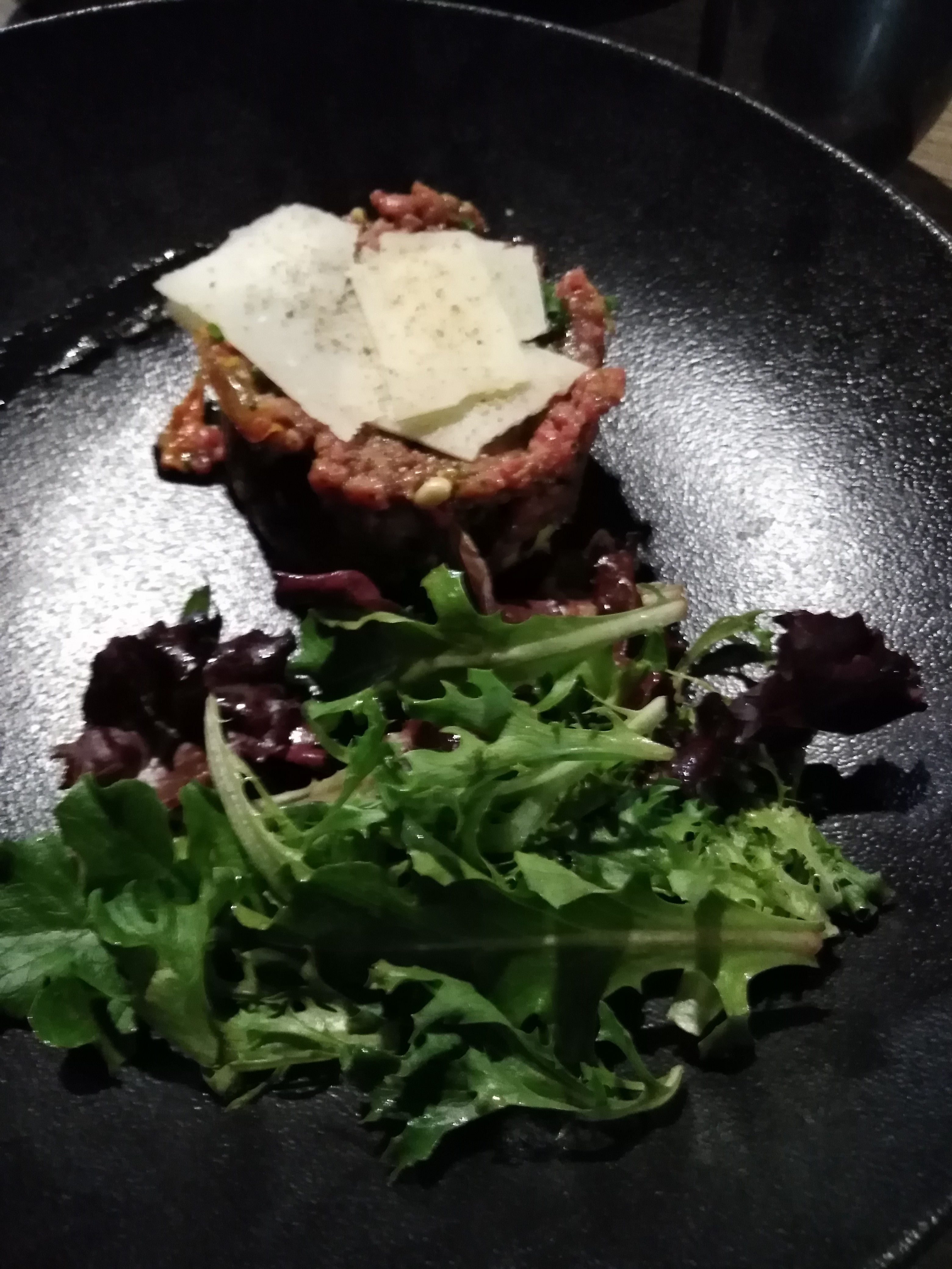 Tartare italien très bon, cependant petite déception car celui ci est normalement accompagné de frites et de salade, j’ai demandé uniquement de la salade et la portion était identique à celle servit avec les frites ... Puis tarif un peu élevé 22€ le tartare .. Point positif : la terrasse au soleil ..