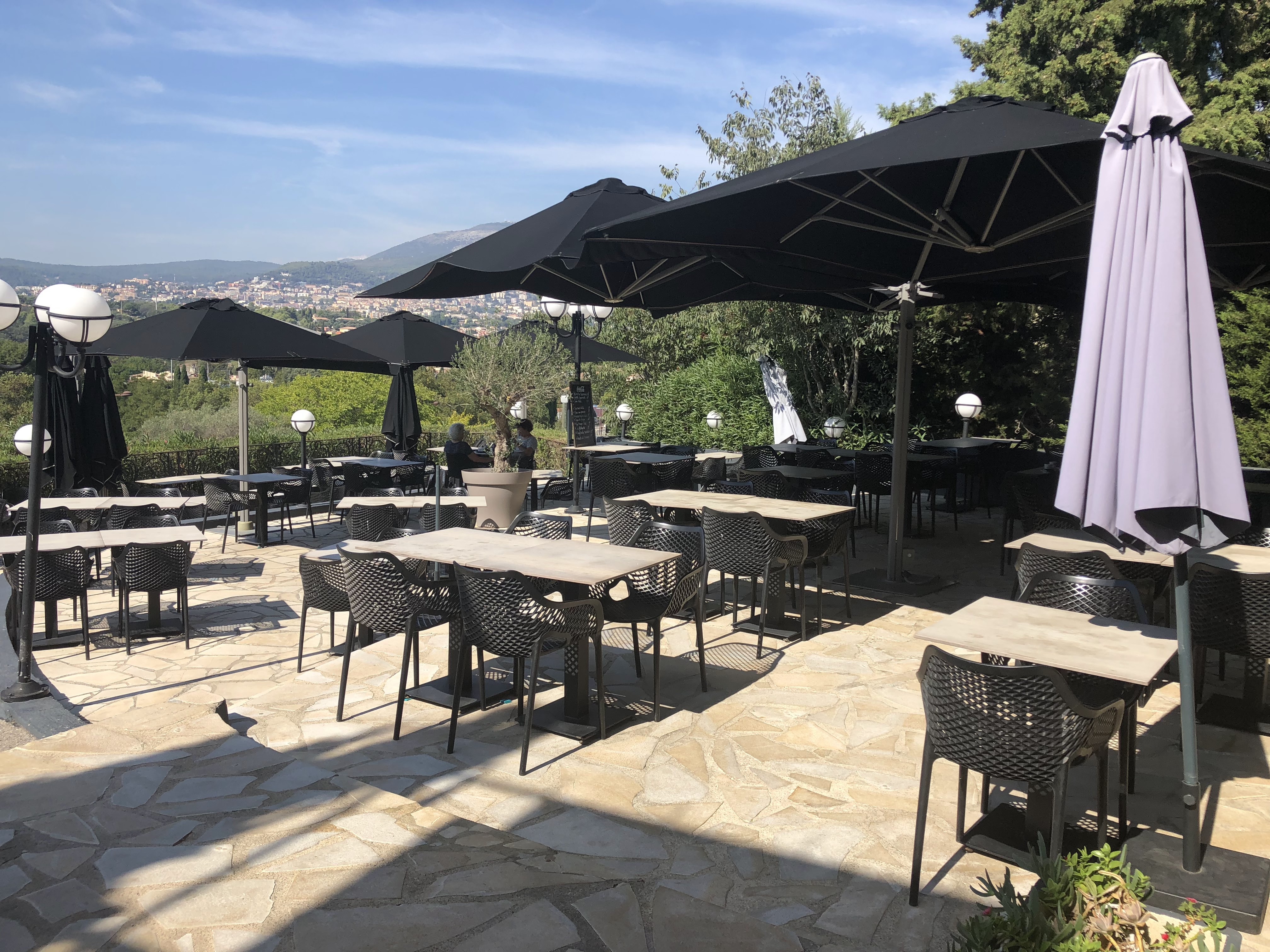 Belle terrasse avec vue imprenable sur les collines, bien accueilli. Notre seule déception fut l'oubli du parmesan sur la salade César. Après l'avoir signalé, il nous fut servi dans un ramequin et là !!!!ce n'était pas du Parmigiano, même s'il nous fut prouvé son appellation AOP sur l'emballage,cela restait un fromage de TRÈS bas de gamme. Pour le client ce n'est une preuve ni un gage de qualité du produit.Le fromage proposé était lisse,brillant et totalement INSIPIDE, alors que le Parmigiano Reggiano est mât avec un aspect granuleux et très fort en goût. Dommage!!!!!!La salade César aurait mérité une très bonne note, le poulet était juste fondant et délicieux, l'oeuf mollet cuit à perfection, mais l'ensemble restait fade par le manque de ce fromage qui réhausse les saveurs de ce plat qui devrait être validé par le chef. Une salade César à 19,50 euros mérite un Parmigiano Reggiano de TRÈS BONNE qualité.