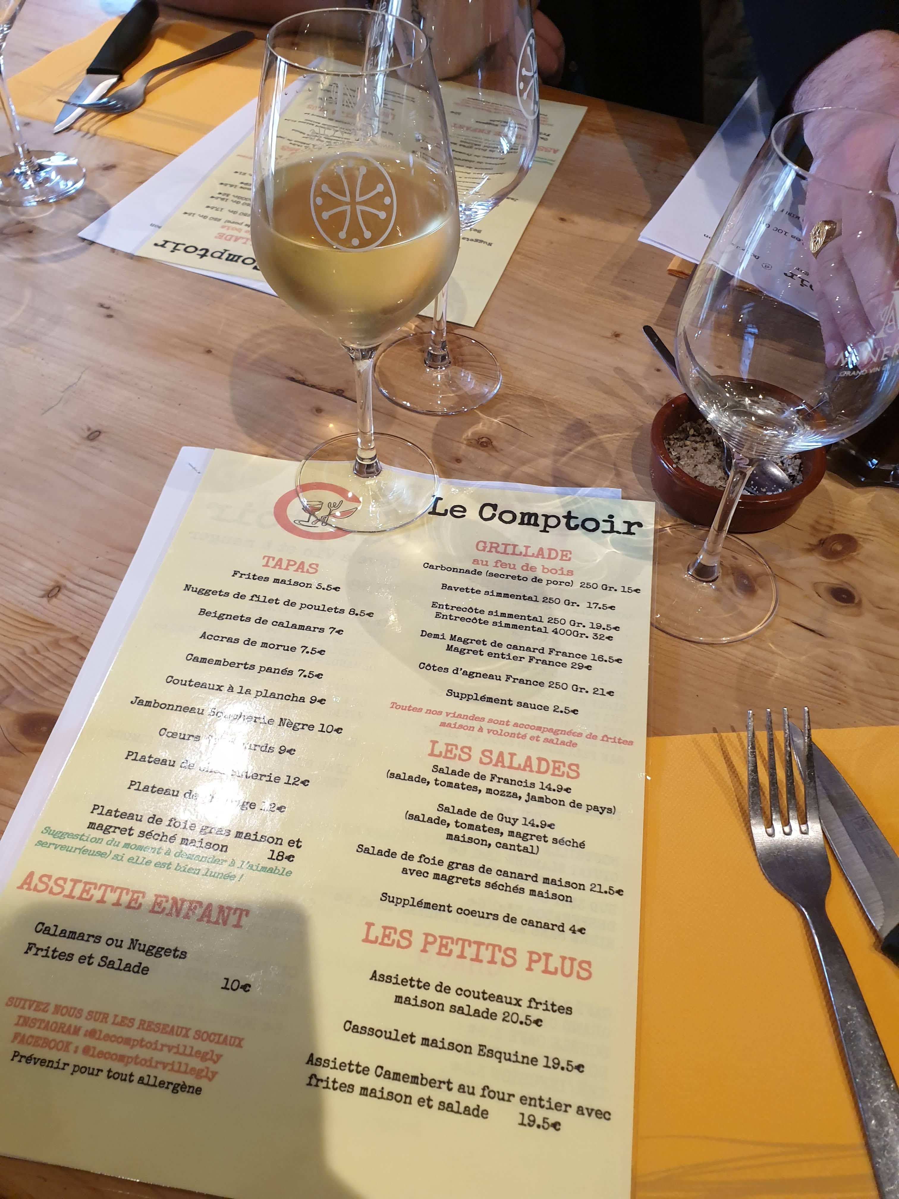 Le comptoir est un lieu symphatique et conviviale de bon tapas a deguster aussi de bonne bouteille a deguster avec moderation bien sûr De bon petit plat frite maison On a passé un agréable moment a refaire avec plaisirs