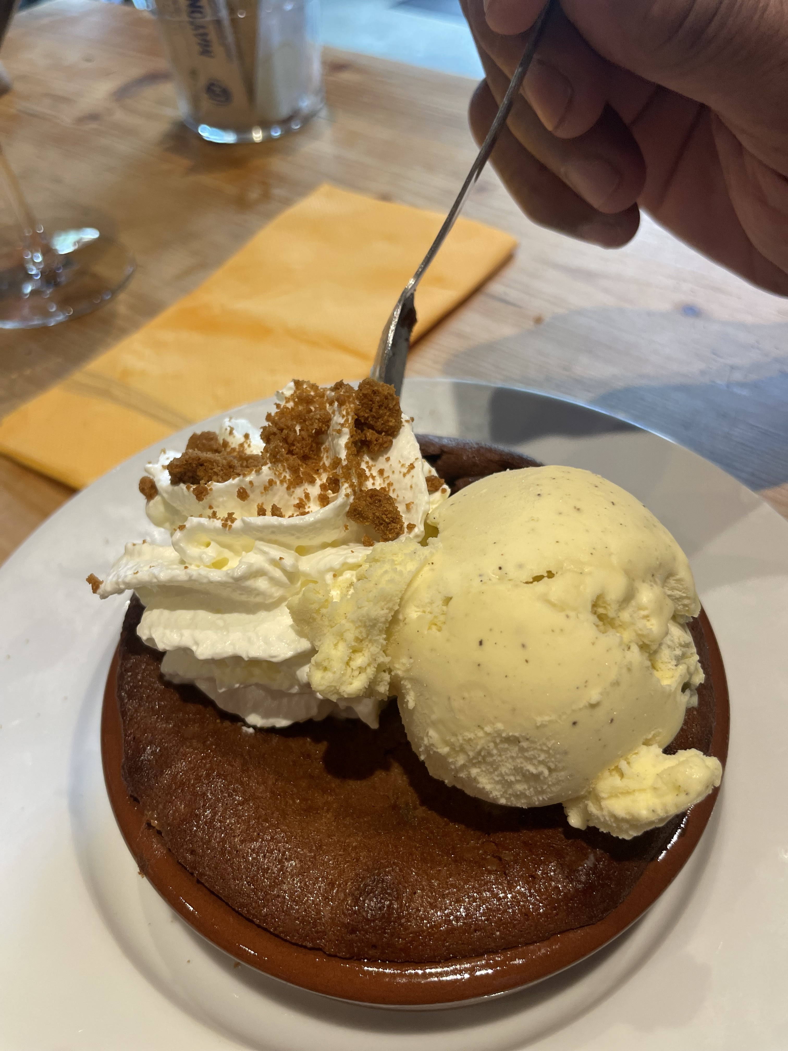 Bon .ambiance chaleureuse.déco très sympathique. Mais endroit beaucoup trop bruyant et trop chaud. nous étions obligés de parler nous aussi fort pour se comprendre. Personnel agréable .