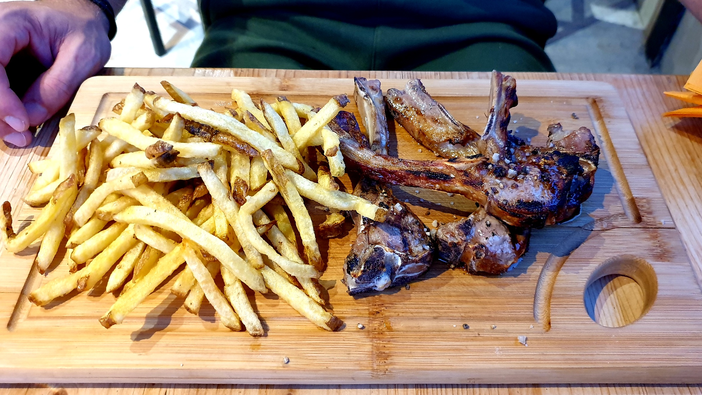 Cadre TB. C est un barre à vin et bière. Tapas TB et diverses et bon prix. Côtes d agneau cuisson TB goût TB mais la moitié de gras.
