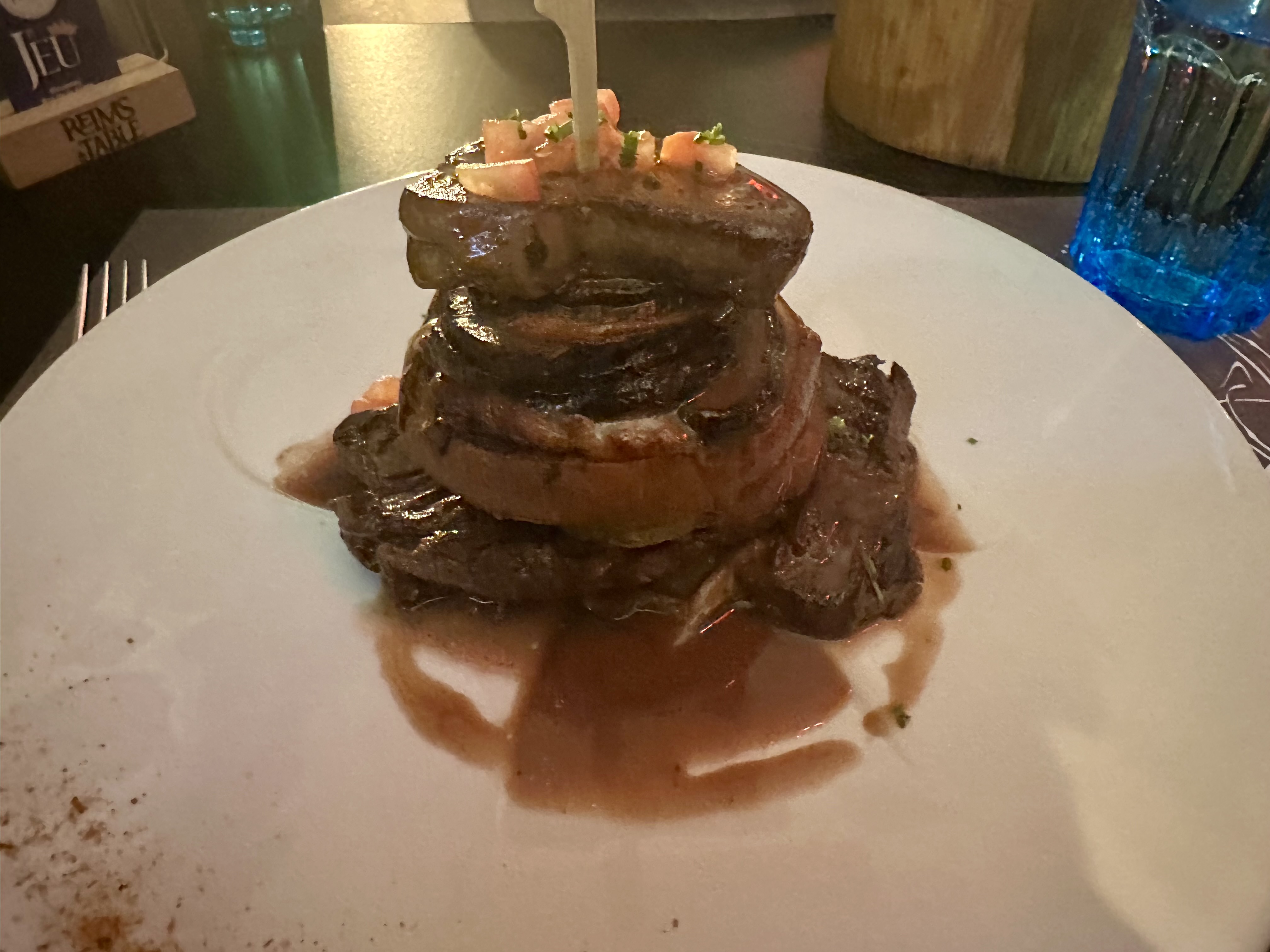 WOWWWW! la nourriture, l'ambiance et les hôtes sympathiques et serviables étaient tous vraiment géniaux ! Une expérience culinaire française vraiment étonnante, les entrées de foie gras étaient excellentes et une autre version poêlée et empilée avec des crevettes fraîches grillées et une brioche à la sauce aux champignons ! Miam! Les plats principaux étaient incroyables, en particulier le plat de pétoncles et le hamburger inversé d'onglet au chou et aux champignons. Le dessert était super spécial avec le champagne et le sorbet avec une herbe trempée à l'intérieur et des bulles de poire, et le gâteau au chocolat était aussi divin !! Restaurant hautement recommandé!