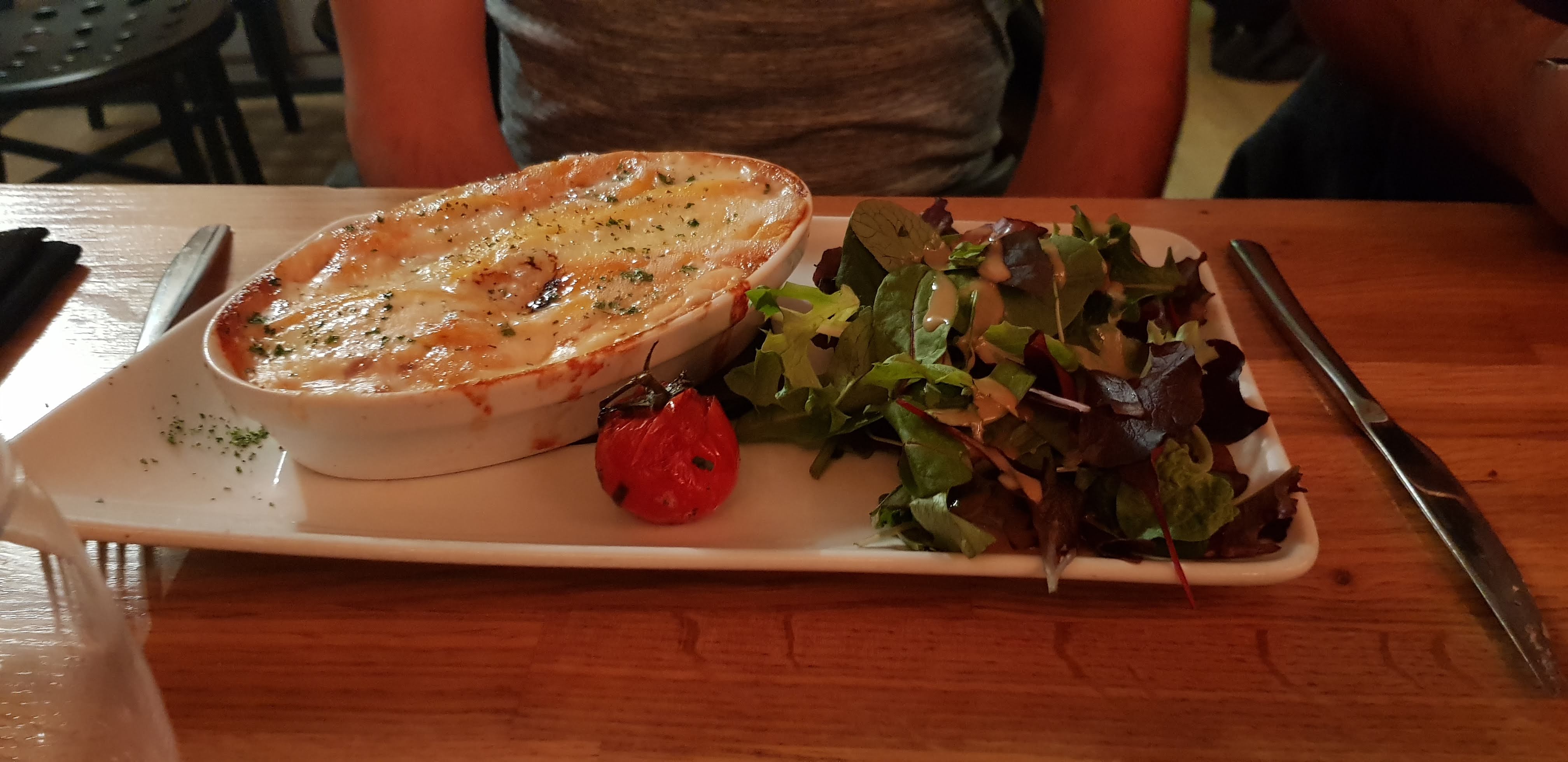La cuisine est bonne, tatin d'endives au bleu excellente. La viande du parmentier était juste parfaite, par contre nous n'avons pas compris l'absence de purée. La serveuse n'a pas su nous expliquer, elle est allée se renseigner en cuisine et n'est pas revenue. Elle n'a pas été capable non plus de nous répondre au sujet de l'entrée. Vraiment très dommage.