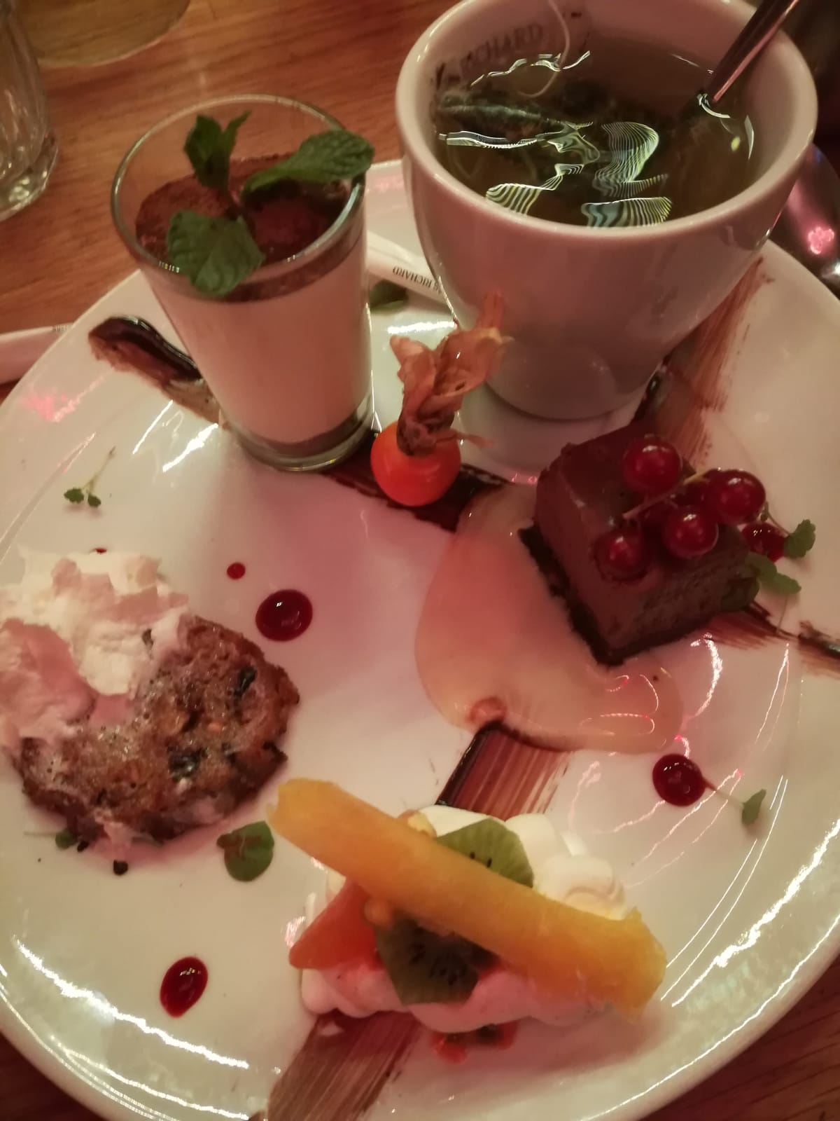 Excellent repas, un vrai sans faute. La planche charcuterie / fromage contenait des produits de qualité. Les plats étaient succulents et très bien présentés. Seul problème : devoir choisir un dessert dans une liste qui laisse rêveur... Rien à dire sur le service très professionnel et sympathique.