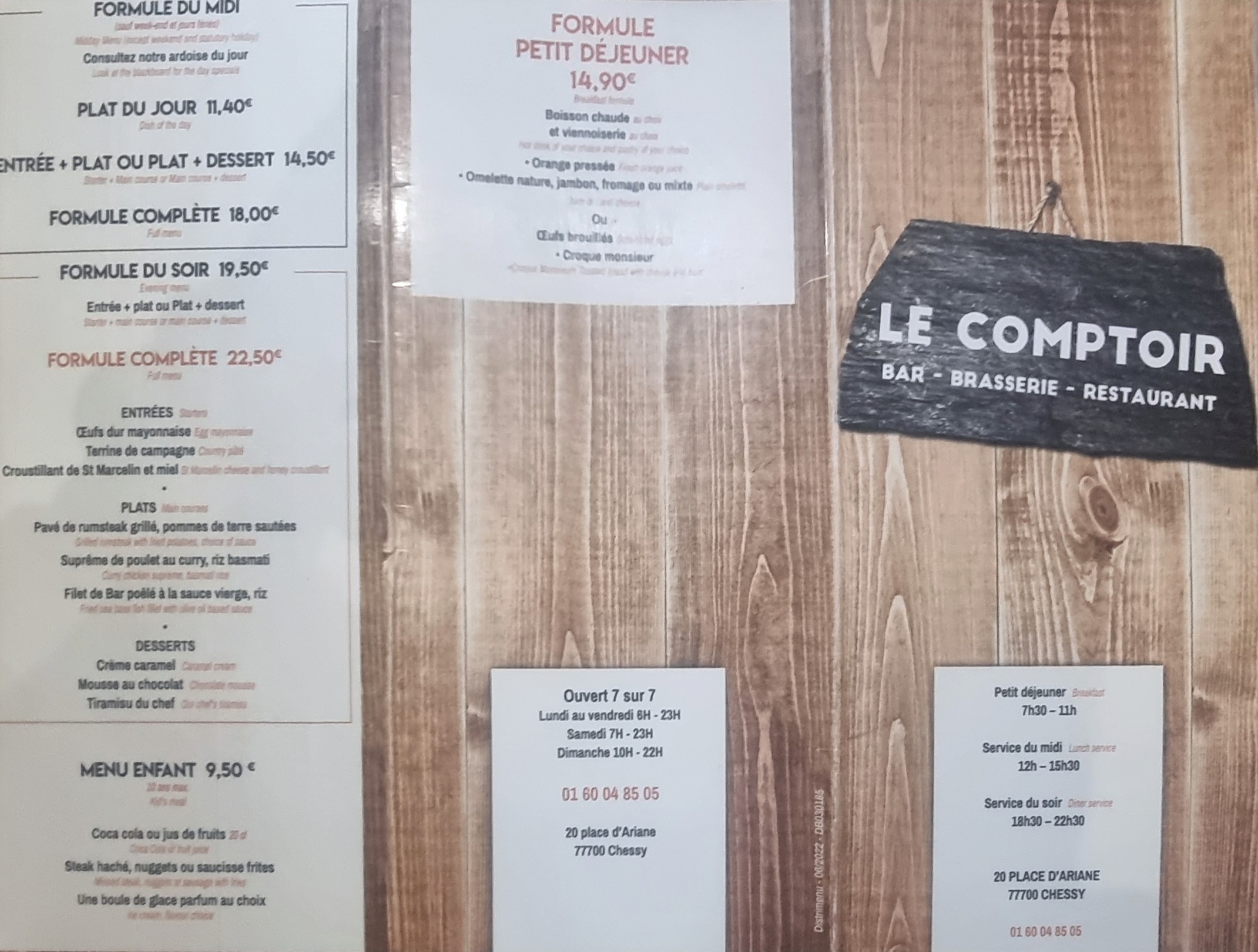 Voici toutes les informations sur le Restaurant LE COMPTOIR - BAR | BRASSERIE | TABAC qui ce trouve au Val d' Europe, 20 Pl. d'Ariane, 77700 Chessy (77). Sur cette fiche vous trouverez les photos, l'adresse, les horaires d'ouverture, le numero de téléphone et les avis clients.Vous pouvez églement rédiger un avis si vous le souhaitez en bas de page.