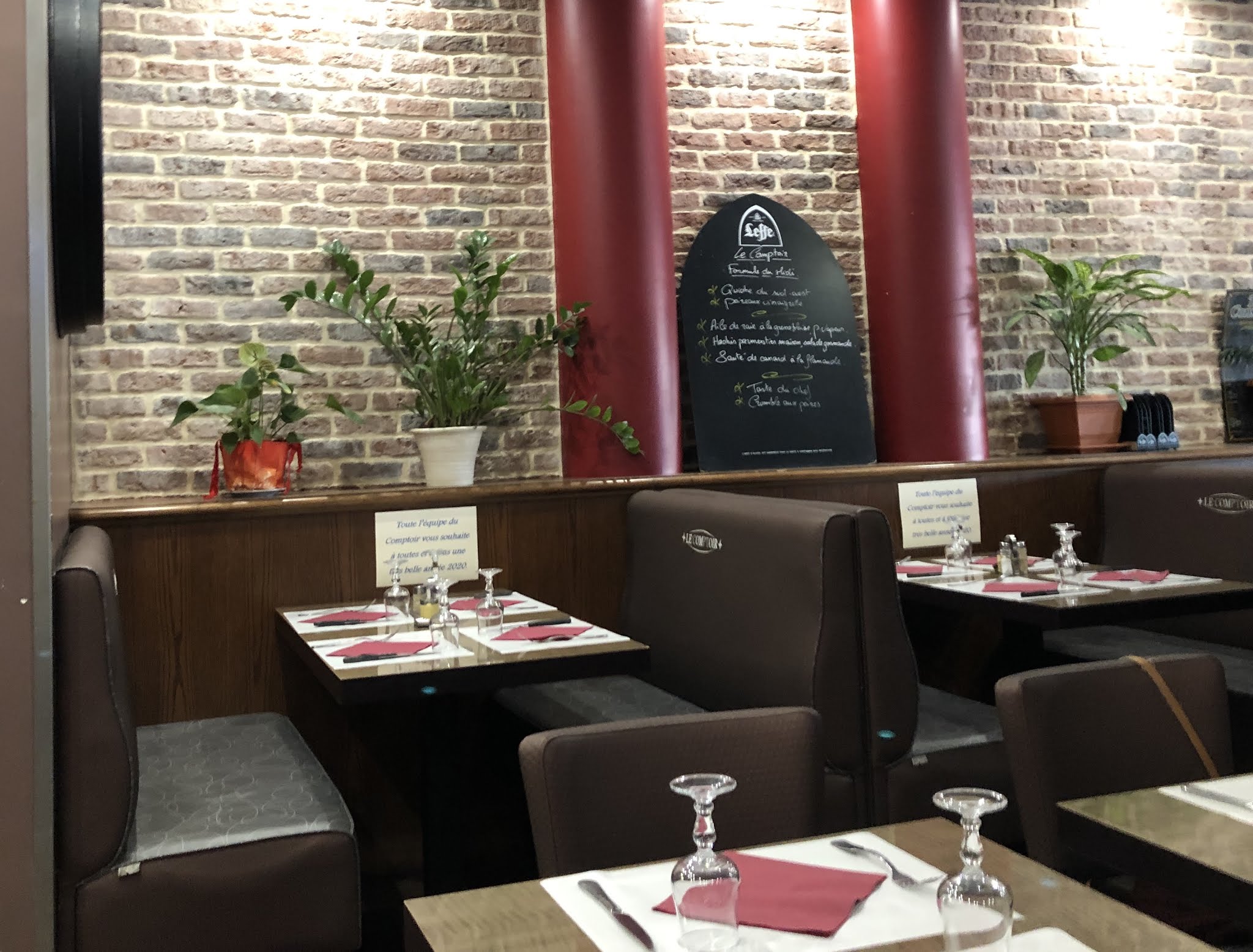 Bar/brasserie accueillant. Décor sympathique. Personnel aimable,souriant, disponible. Rapport qualité/prix correct. Nous étions 5 pour une addition de 85€40. A notre menu : Trois plats du jour ( hampe sauce forestière et frites) Un filet de hareng Un émincé de volaille Une salade à l italienne Une coupe de glace Une miusse au chocolat Un café Deux bières Une bouteille d'eau minérale Accessibilité aux personnes à mobilité réduites. Bien placé en ville.