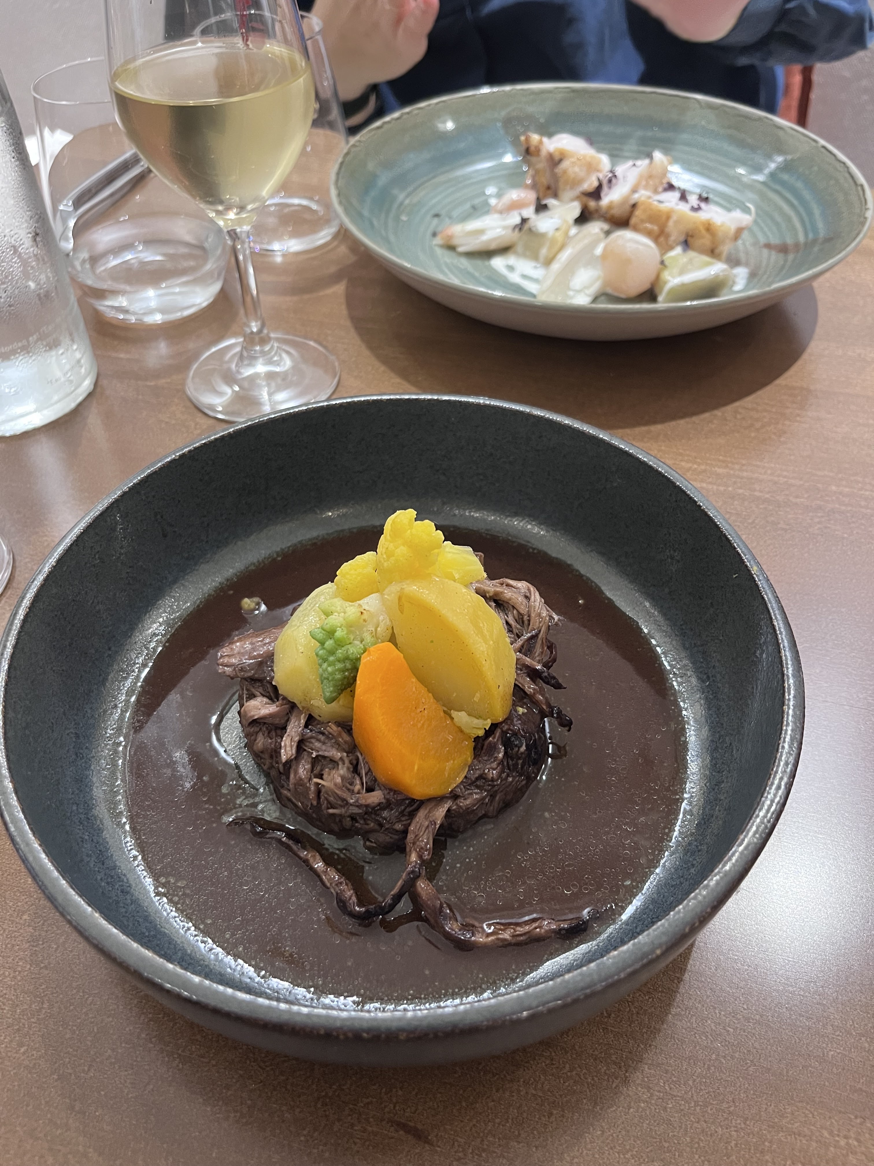 Au vu des autres notes nous avons du tomber sur un mauvais soir, en tout c’est un très bel endroit avec un serveur très agréable et sympathique, l’idée de choisir le vin en cave est top mais ça mériterait d’aller plus loin dans l’expérience, car nous sommes rester un peu seul dans la cave sans conseil, dommage. Pour la cuisine tout est bon mais sans surprise, c’est plutôt simple mais très bien cuisiné, par contre les quantités sont misérable, un tartare de tomates très petit avec quelques sardines ensuite une pièce de bœuf qui ne devait pas faire bien plus de 70gr, accompagné d’une demi carotte, dessert très bon ! Mais a 135€ pour 2, pour si peu c’est vraiment cher.