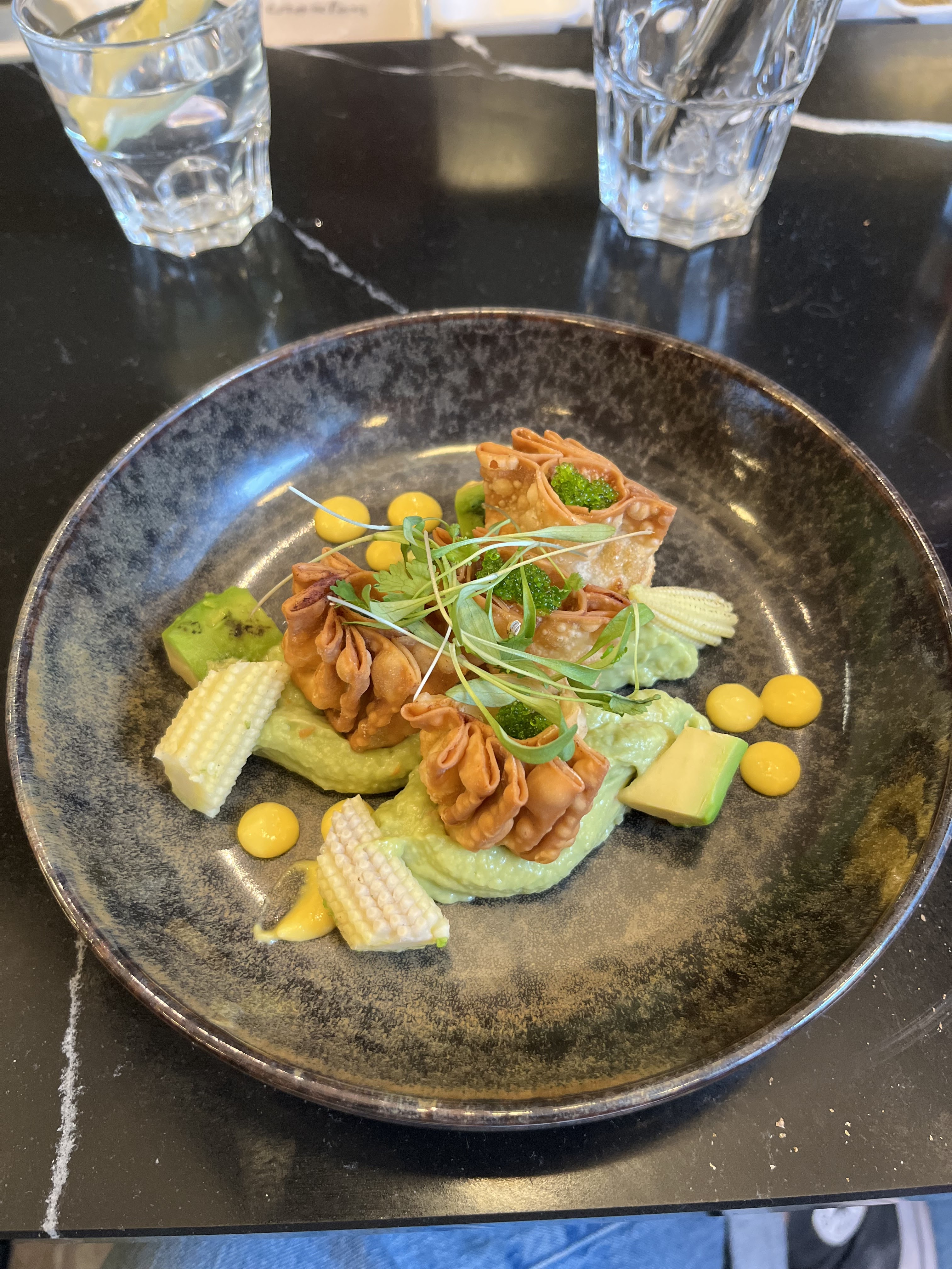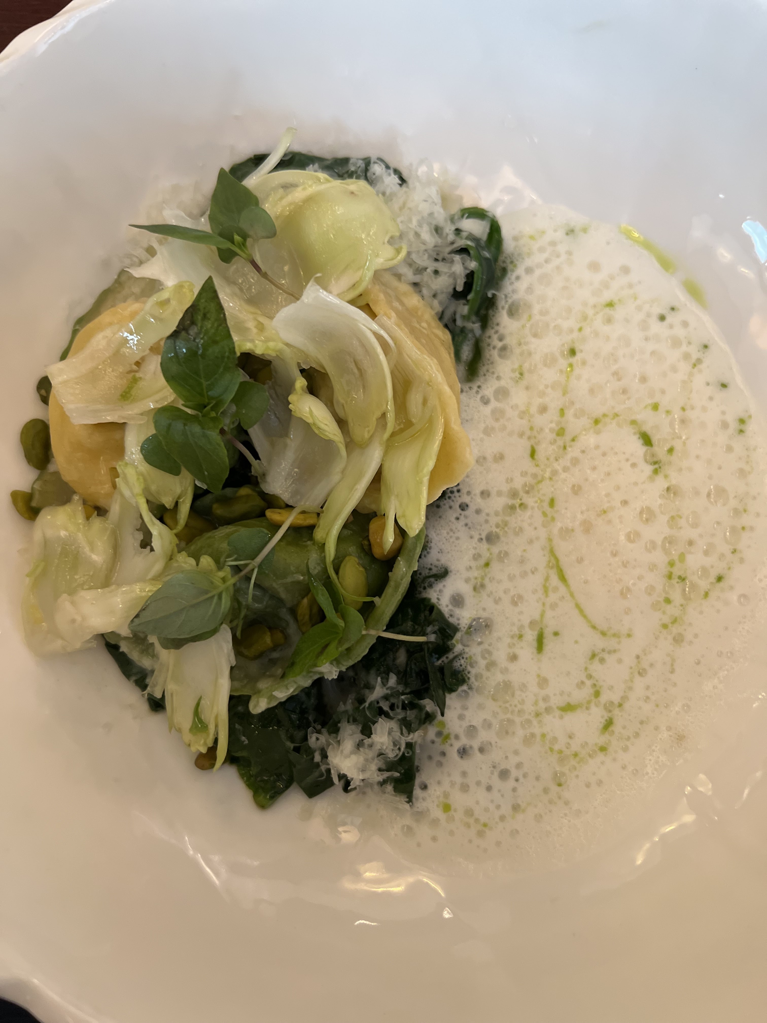 En conflit à propos de cet endroit. Nous avons commandé chaque plat du menu (groupe de 6 personnes) et, même si la présentation était excellente, aucun des plats n'était mémorable et les saveurs étaient pour la plupart carrément fades. NE prenez PAS le plat végétalien - les emballages de courgettes. C'était joliment présenté mais pas délicieux du tout. Zéro complexité dans les saveurs. L'artichaut était aussi super super ennuyeux (même s'il était visuellement intéressant). La mousse ne rend pas instantanément un plat digne ! C'est incroyable de voir comment on peut obtenir une reconnaissance du Guide Michellin simplement en ayant un bon plat parce que les saveurs étaient ennuyeuses et tristes. Le personnel est charmant ! Merci de nous recevoir 🙂
