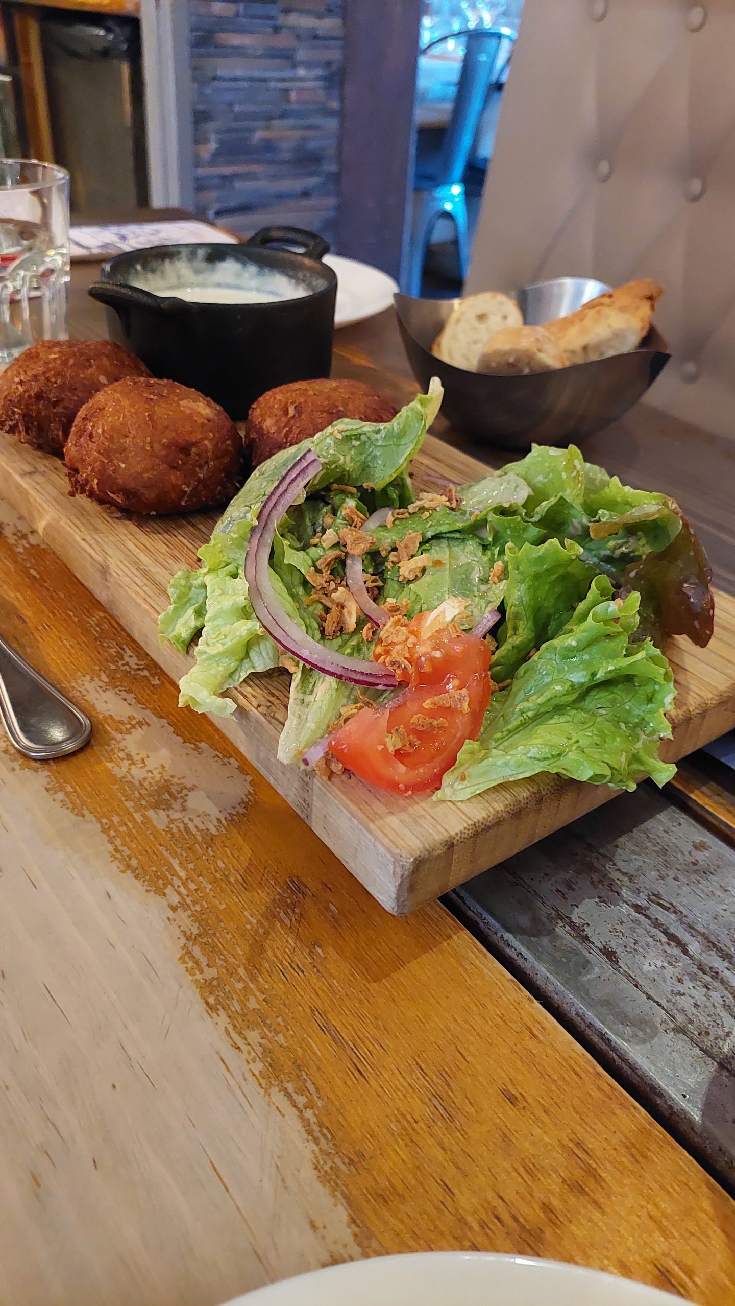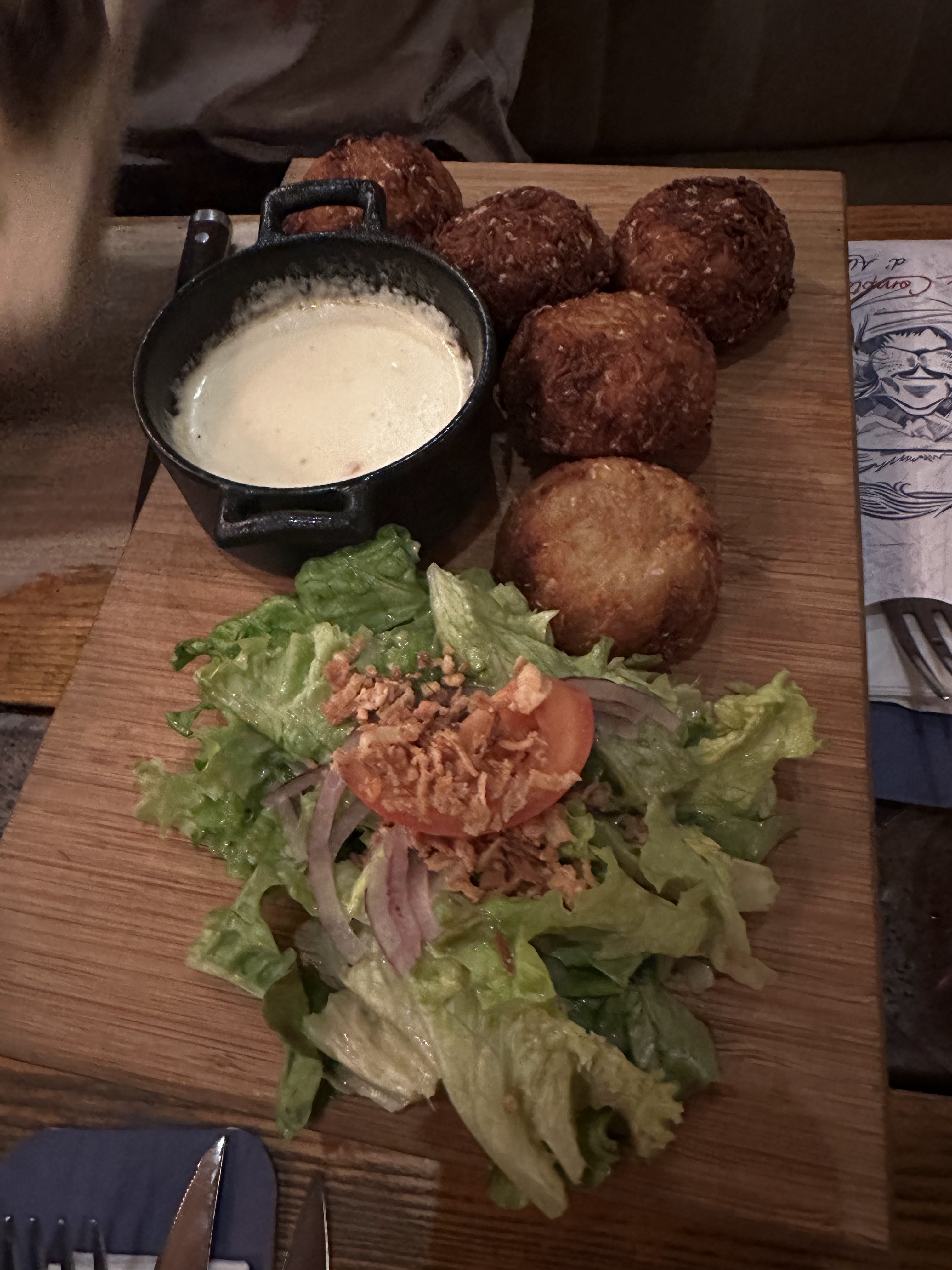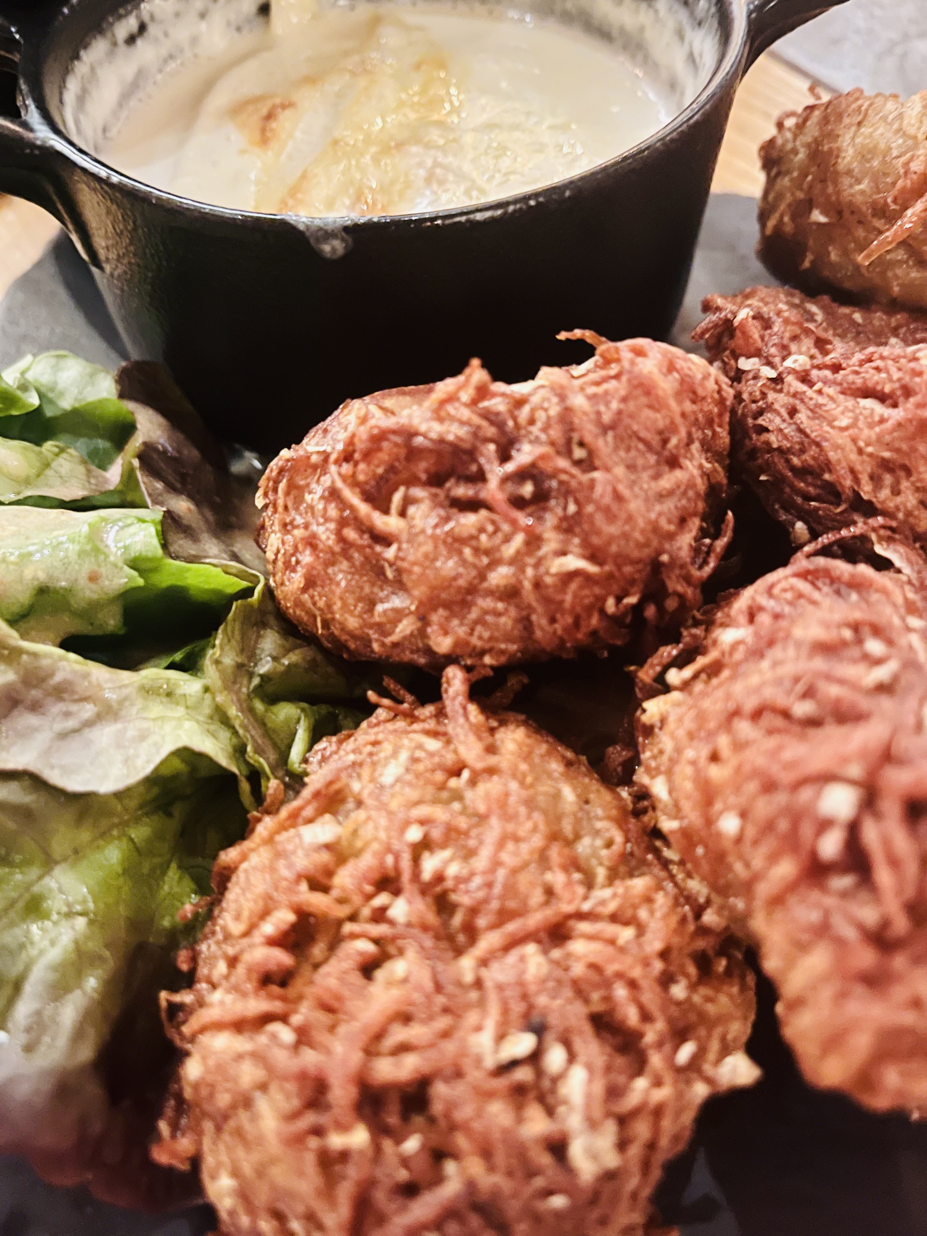 C’est la deuxième visite. Très sympa comme la première fois ! Les personnels sont agréables. Nous avons commandé des beignets de pomme de Terre en plat. Ça avait l’air assez lourde comme plat avec des charcuteries et la sauce reblochon… Mais pas autant que ça, c’était très bon ! On reviendra :)
