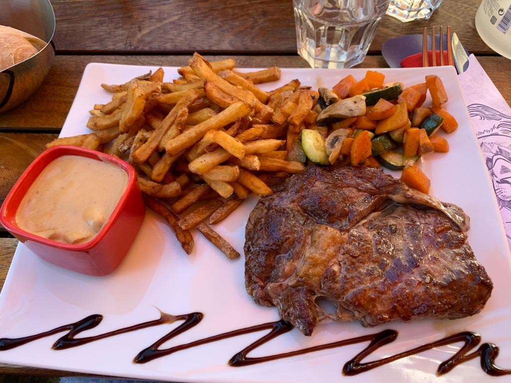Nous sommes rentrés par hasard dans ce resto en cherchant juste un endroit pour se poser et manger un morceau, le plat du jour étant abordable, sans grande illusion dans une station aussi touristique. Et ça a été une très bonne surprise ! Non seulement c'était abordable, mais surtout le poulet rôti du jour était cuit à la perfection (assez rare pour le souligner) et délicieux. Idem pour l'accompagnement, et suffisamment copieux pour un bon vivant comme moi. + une vraie sauce forestière maison, même dans des endroits bien plus sélect souvent on a droit à de l'industrielle... Dessert à l'avenant: simple mais très bon Cerise sur le gâteau un VRAI expresso avec du goût ! D'ordinaire je n'en prends plus au resto car trop décevants, mais vu le reste j'ai testé et j'ai bien fait. Tout ça saupoudré d'une ambiance comme je les aime: ça bosse sérieux mais dans la bonne humeur avec les clients, à l'écoute, en s'adaptant aux différentes tables: nous étions juste venus manger un morceau rapido et, finalement, nous avons pris le temps de profiter de ce restaurant qui, par sa cuisine et son atmosphère, nous a fait passer un très agréable moment. Ps: détail qui montre la cohérence de l'établissement, toilettes sympa et nickel
