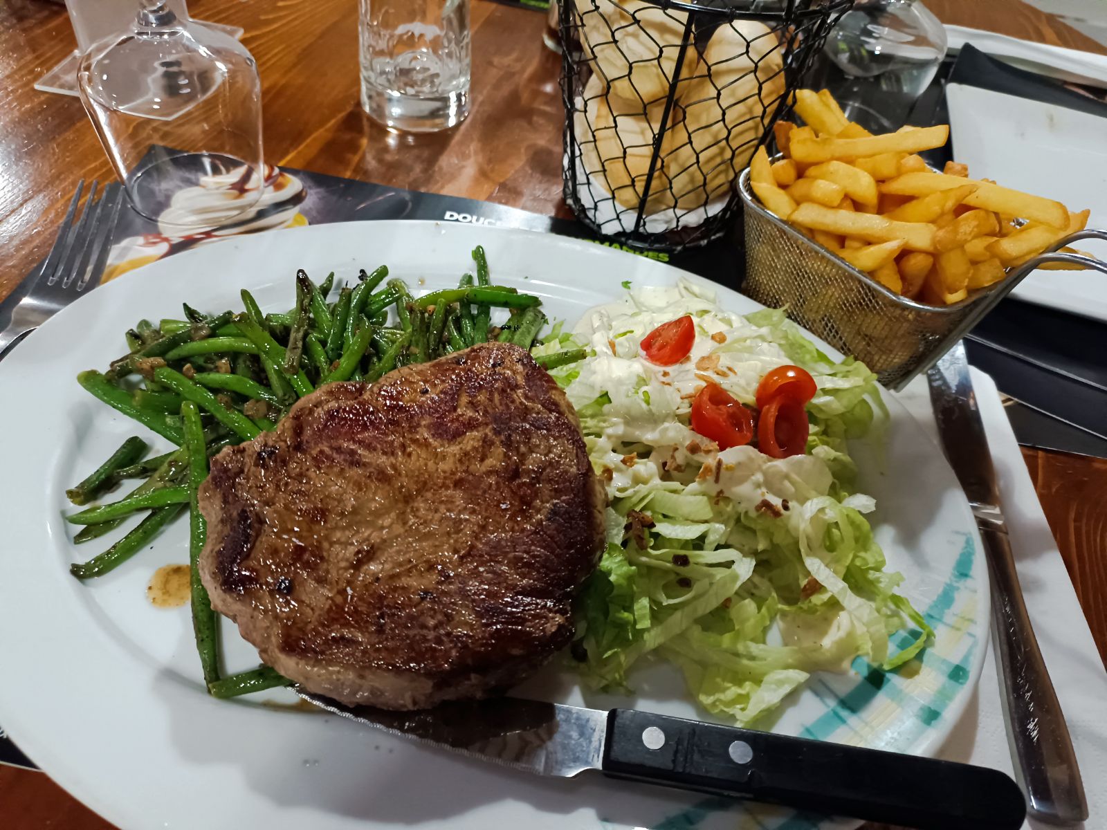 Très bien servi, j’ai choisi une entrecôte avec de la purée maison. La cuisson était parfaite. Le personnel est serviable. Grand parking pour ce garer. Et pas cher par rapport à tous les restaurants en ce moment..