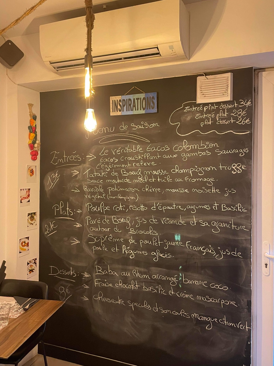 On y est aller un dimanche soir, le cadre est agréable, intime de par la taille de la salle, au mur on y voit des écritures a la craie nous suggerant des plats ou autre ce qui est sympathique. Le serveur etait tres agreable il nous a accueilli avec le sourire et il etait a l'écoute et pu nous conseiller. On pris un repas en trois service (entrée/ plat/ dessert) on a pas eu d'attente entre les plats et on etait servis en meme temps donc super! Au niveau des plats on s'est régalé les produits etaient bon et avaient l'air frais de l'entrée au dessert! On nous offrit meme un digestif en fin de repas ce qui fut tres agreable ! Le prix est correct raisonnable meme, vous pouvez bien manger sans vous ruiner. N'hesitez pas a tester d'après moi!