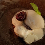 Menu du jour : truite fumée sur blinis aux algues et sa glace à la moutarde ancienne, pressé de cochon de lait et déclinaison de carottes, agrumes sur biscuit citron et sa glace a l'orange. Parfait tout simplement !!!