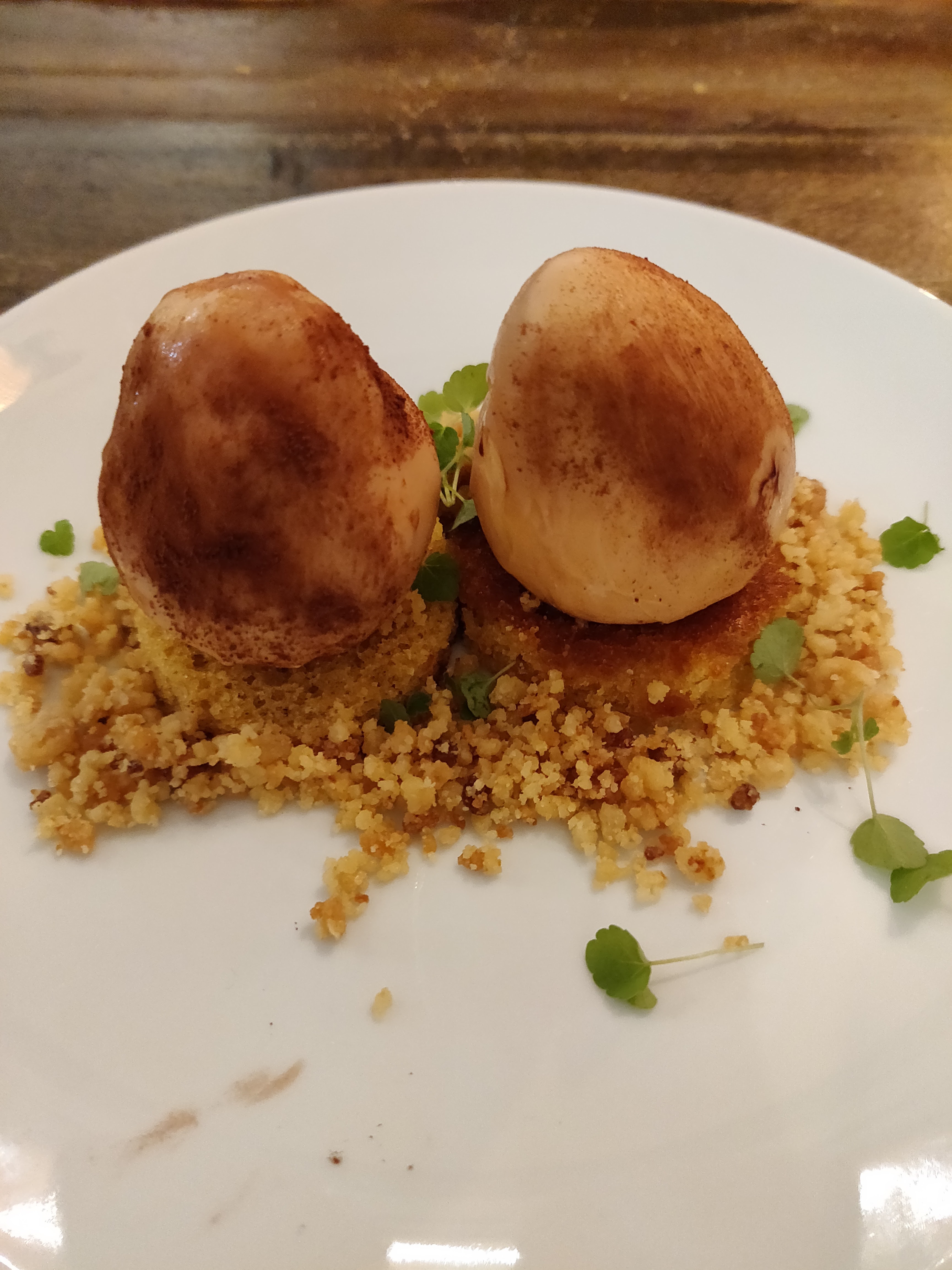 Beaucoup de recherche pour faire des plats raffinés. Un bémol : pas assez chaud même tiède. dommage pour l'œuf mollet. On a du manger vite ! quelques détails à régler et ce sera top. On en a parlé au chef, je ne sais pas s'il a compris notre remarque,il parle peu. Ce netait pas négatif, juste constructif..Notre serveuse était très sympa.
