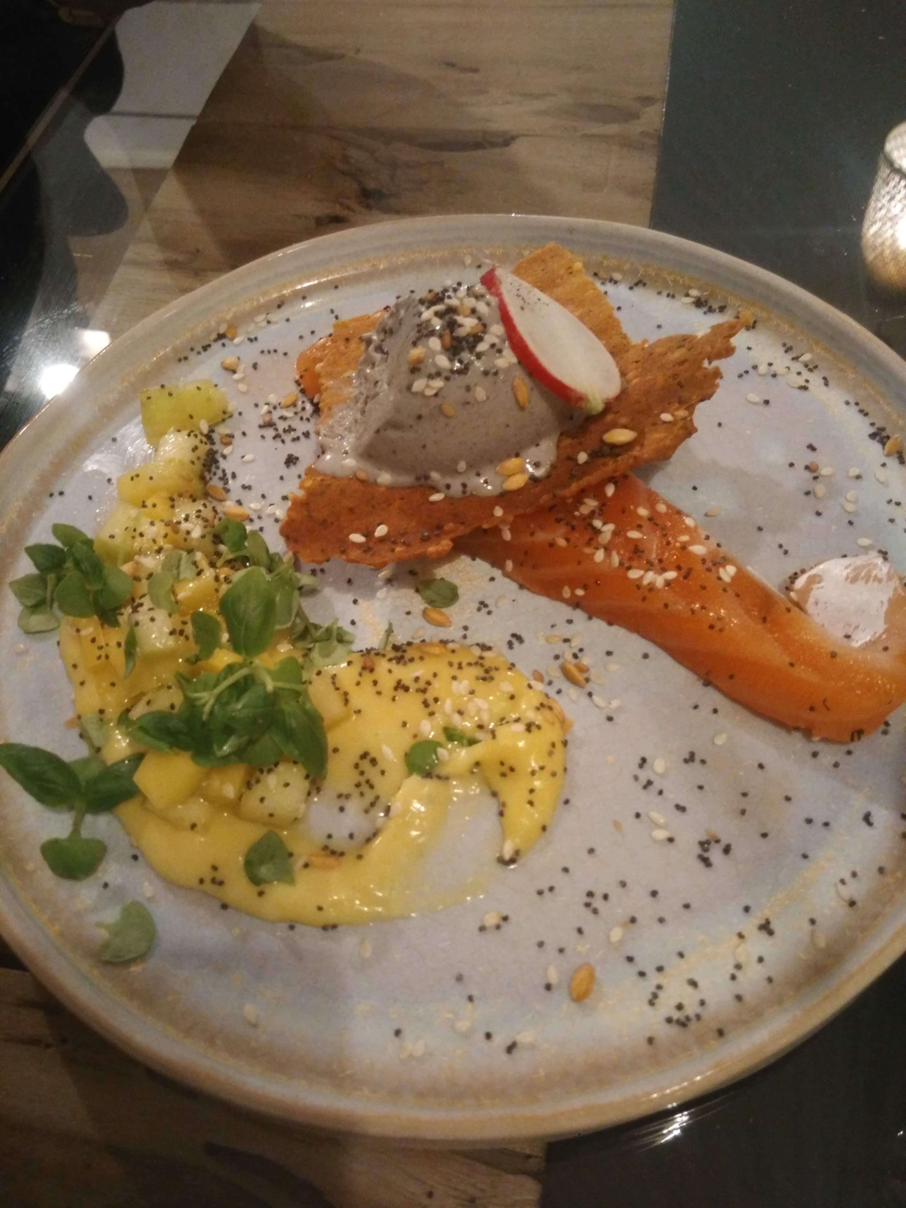Un régal pour les papilles par le mélange des saveurs. Nous avons pris en entrée du saumon fumé accompagné d'un croustillant de parmesan, d'une glace au sésame noir et d'une compote de fruits au basilic : extraordinaire ! Suivi d'un lieu noir savoureux. Dessert détonnant. Rapport qualité prix vraiment au top !