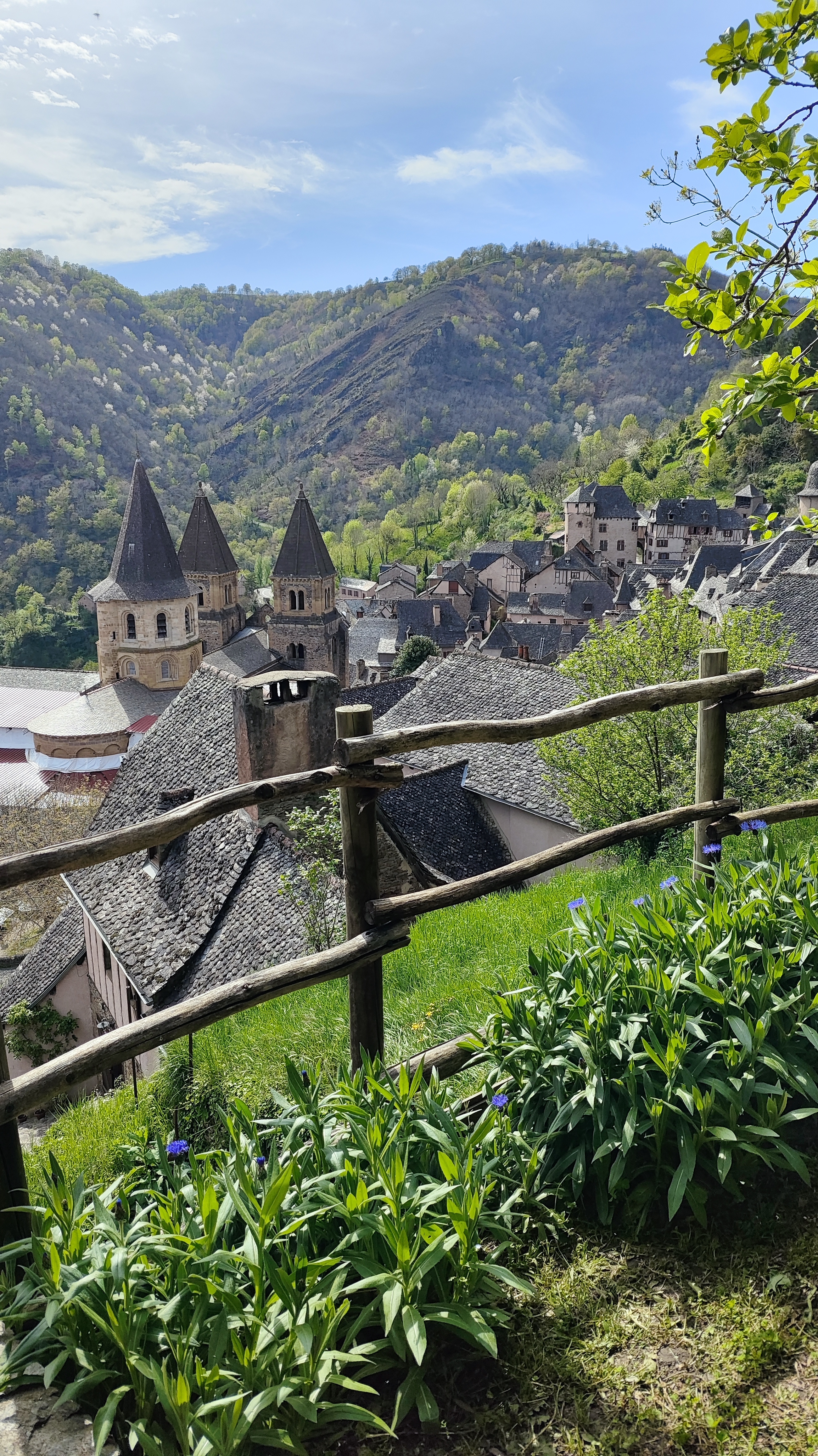 Le petit déjeuner est superbe (mention spéciale au pain du boulanger local et de la confiture à la citrouille des parents). La vue est idyllique : en terrasse, nous avons la vue sur l'abbaye de Conques (cf. photo).