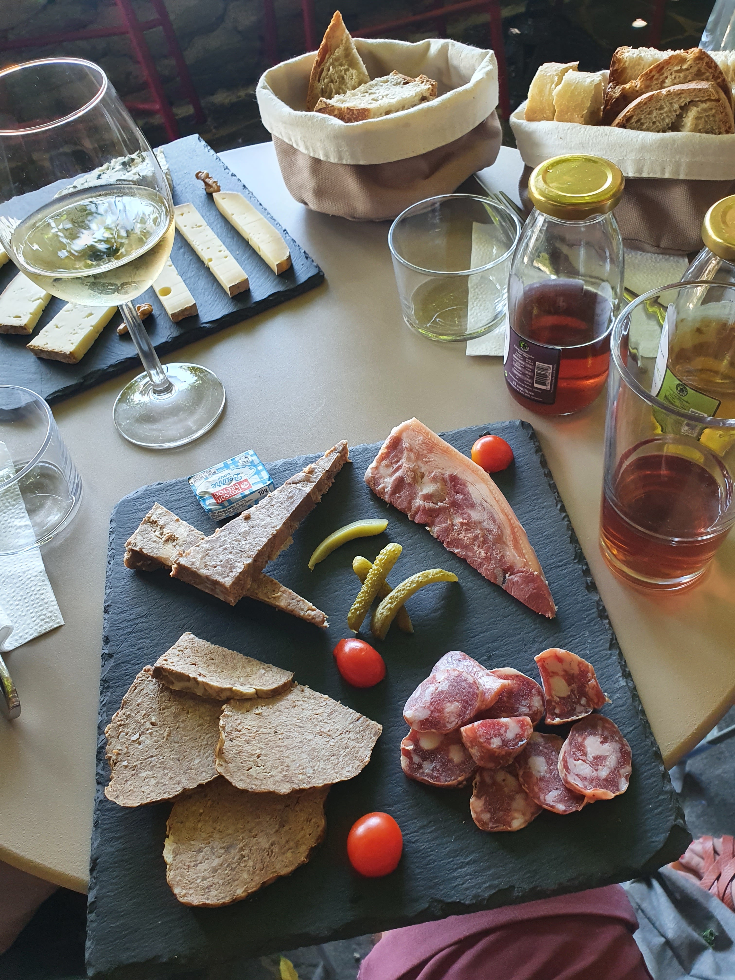 Formidable découverte lors de notre passage à Conques. Nous avons dégusté des produits exclusivement locaux (charcuterie, fromage, dessert, vin et café), à l'ombre de la glycine. Merci à Germain pour son accueil chaleureux et attentionné. Nous ne manquerons pas de revenir ! Les Pyrénéens :)