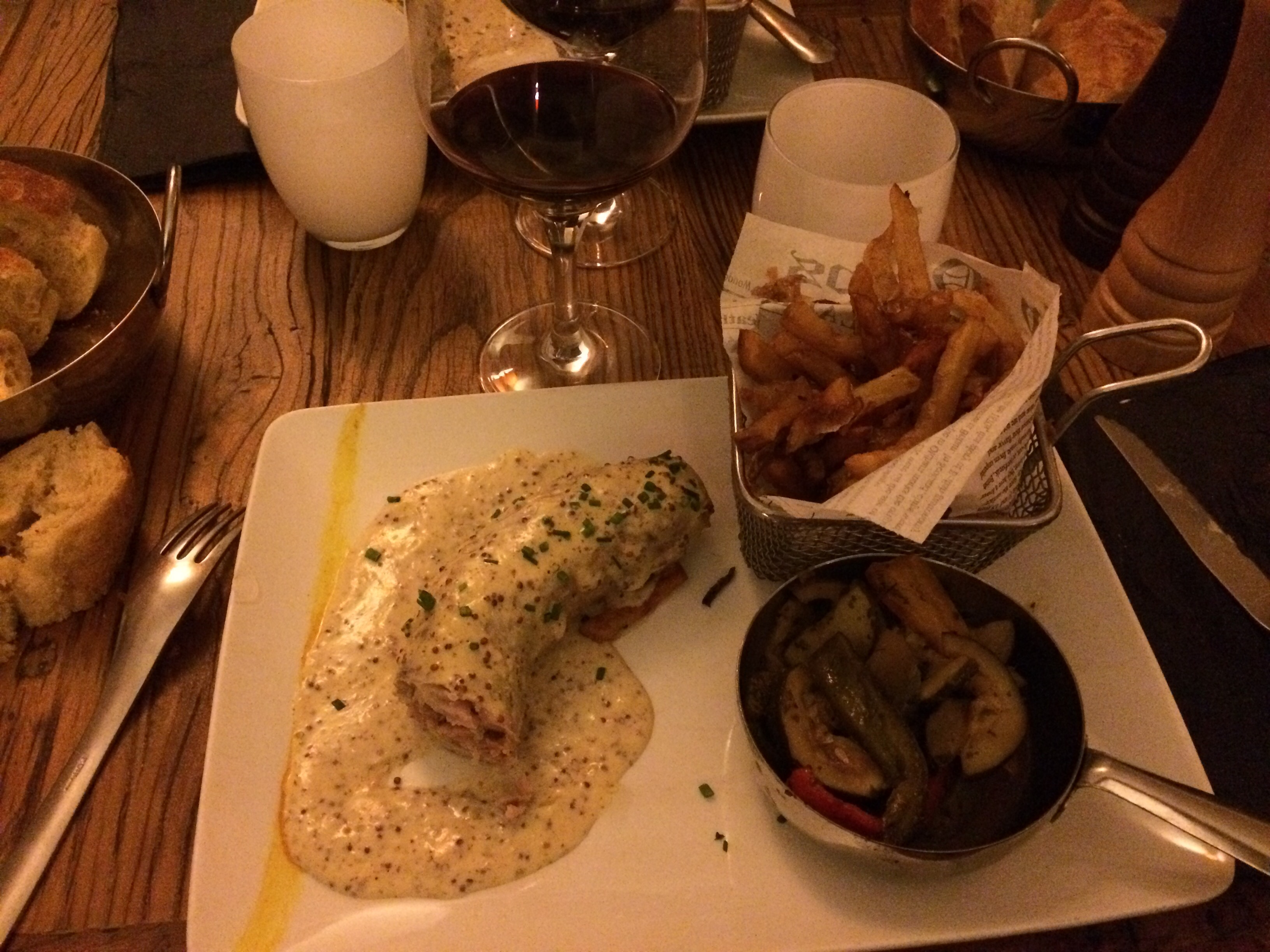 Malgré des plats estampillés « fait maison » sur la carte, je n’ai trouvé aucune saveur dans l’assiette. Quand on a la prétention de présenter des frites faites maison, il faut au moins s’assurer que celles-ci soit présentables, au pire mangeables, ce qui n’etait hélas pas le cas. J’ai la forte impression que l’huile n’a pas été changée depuis fort longtemps vu la couleur et le goût des frites... L’andouillette qui l’accompagnait manquait légèrement de cuisson tandis que la sauce à la moutarde à l’ancienne était juste industrielle (à mon humble avis). Bref, même si la déco me paraissait sympa, je me suis bien fait attrapé. Je ne suis pourtant pas touriste!